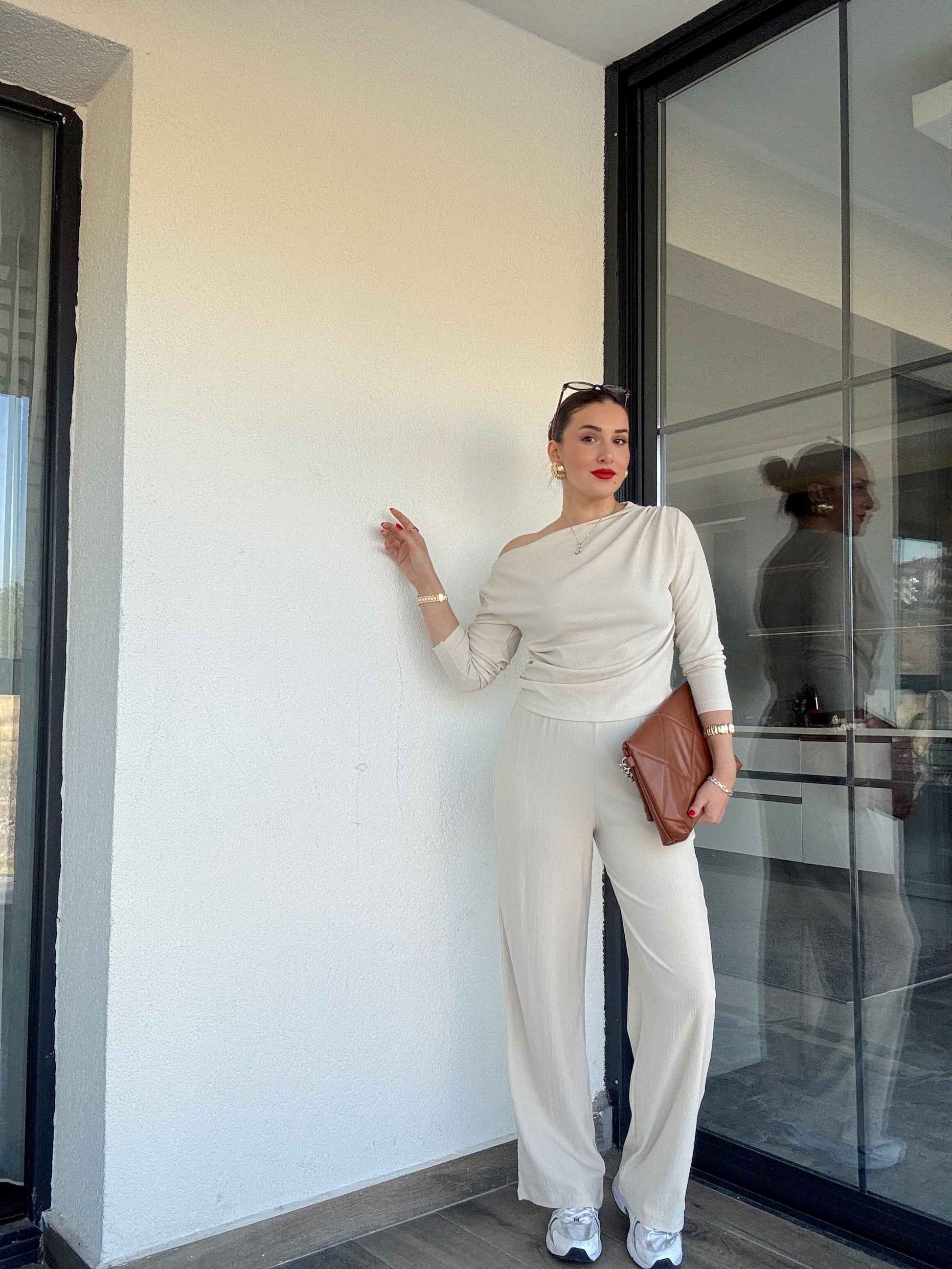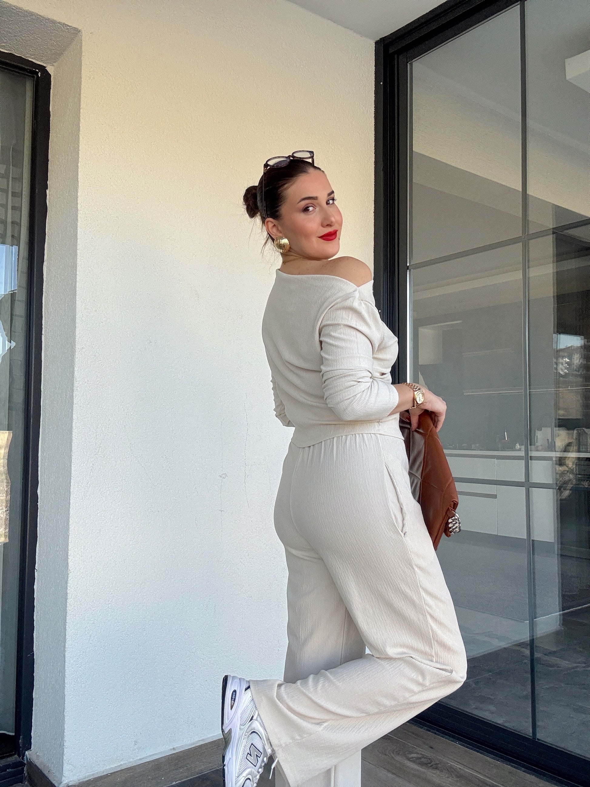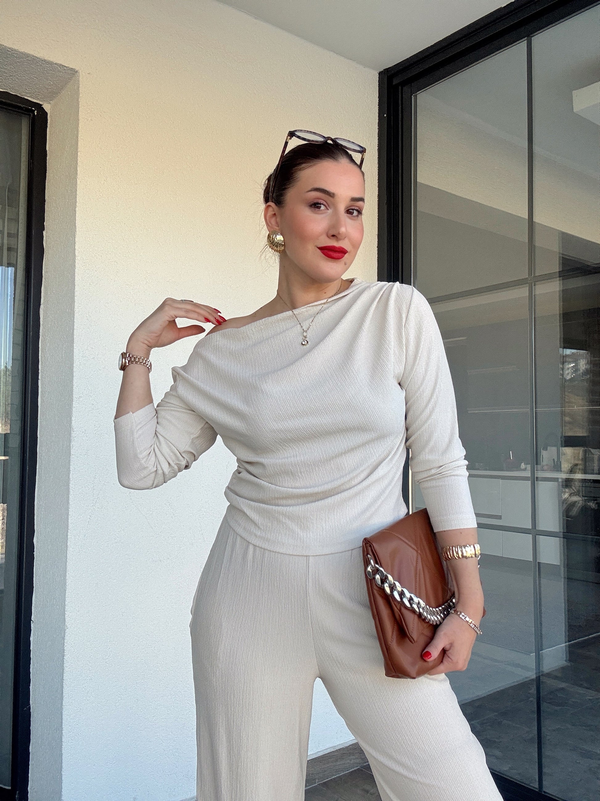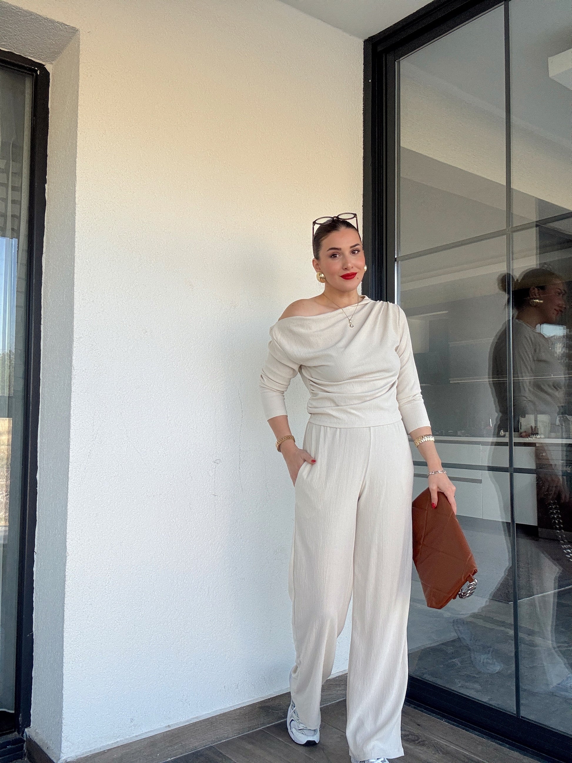 Ağaç kabuğu desenli 2 parça takım BEJ
