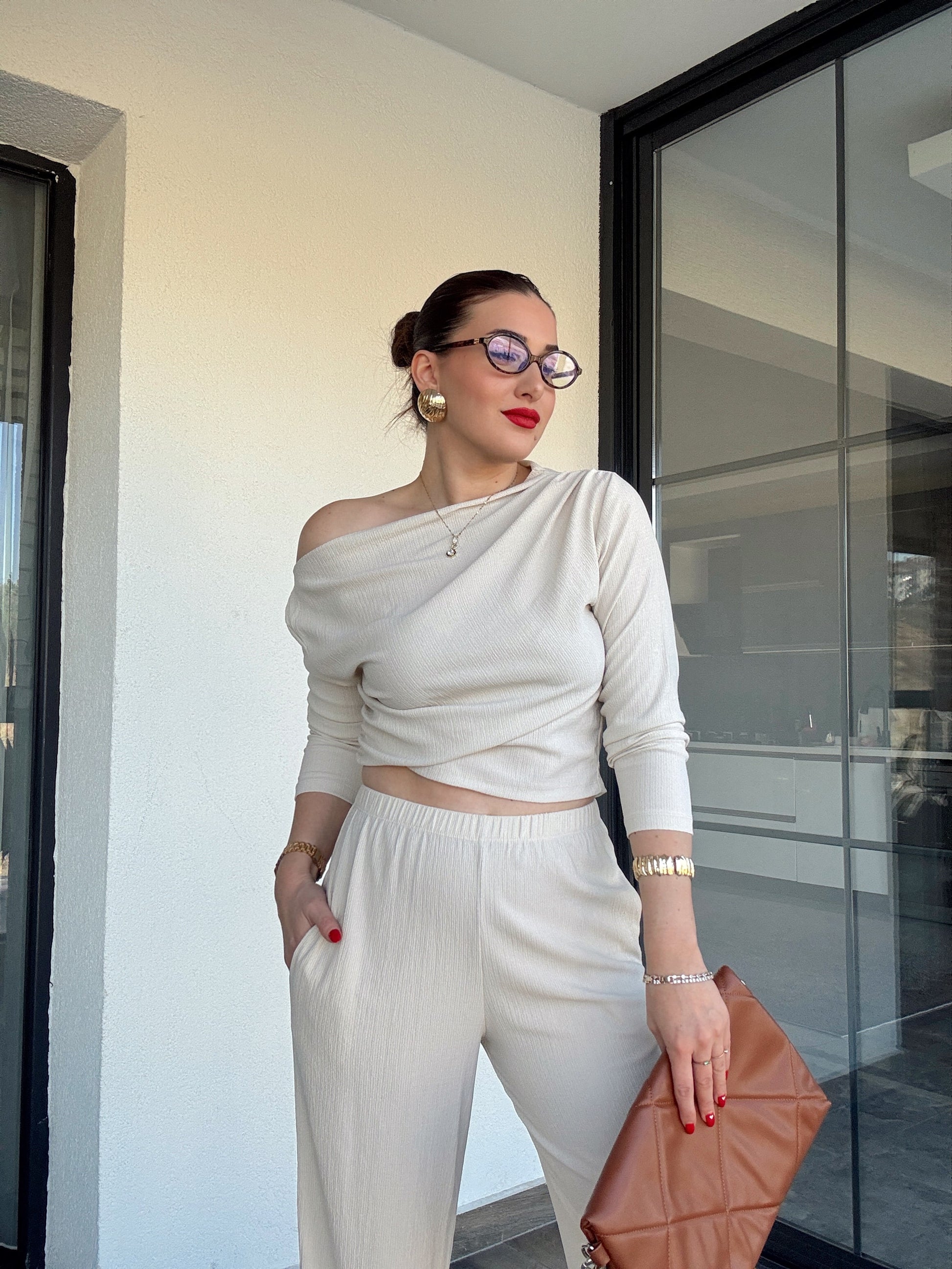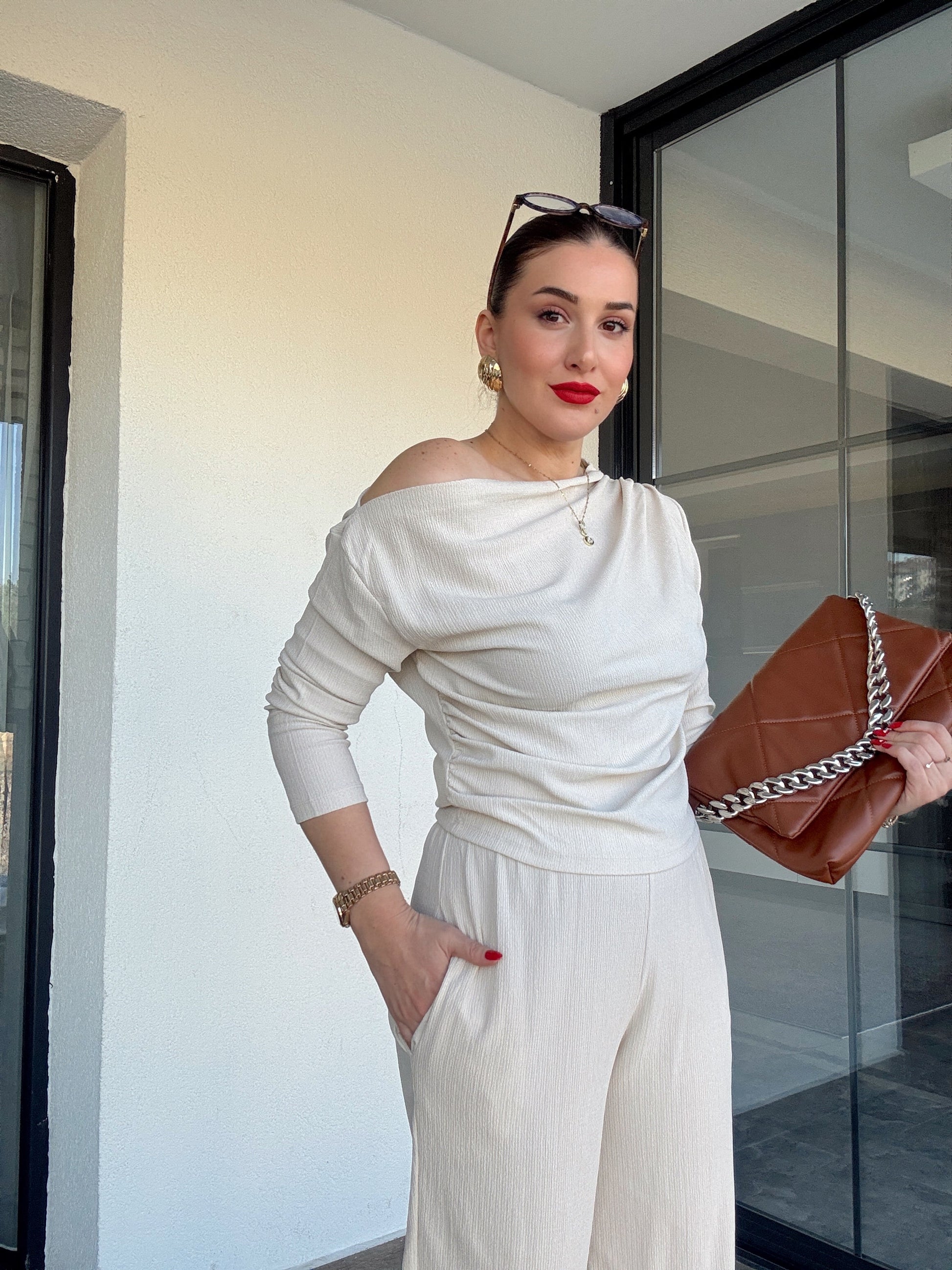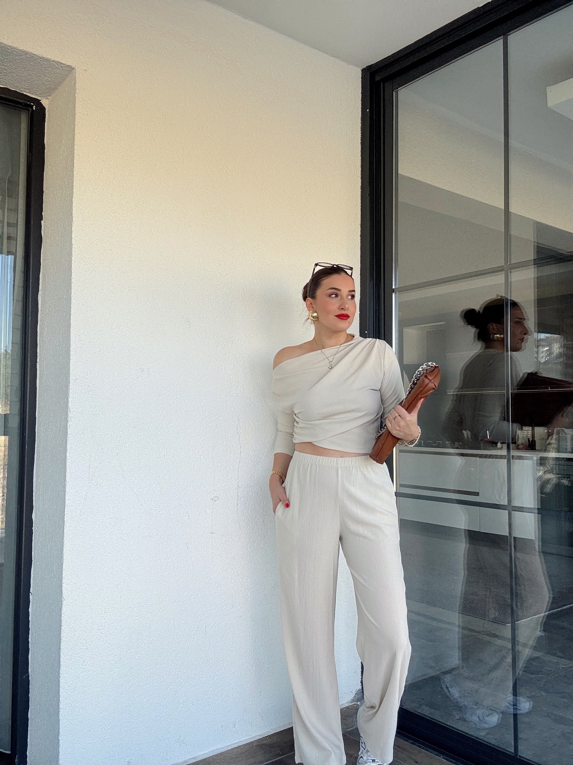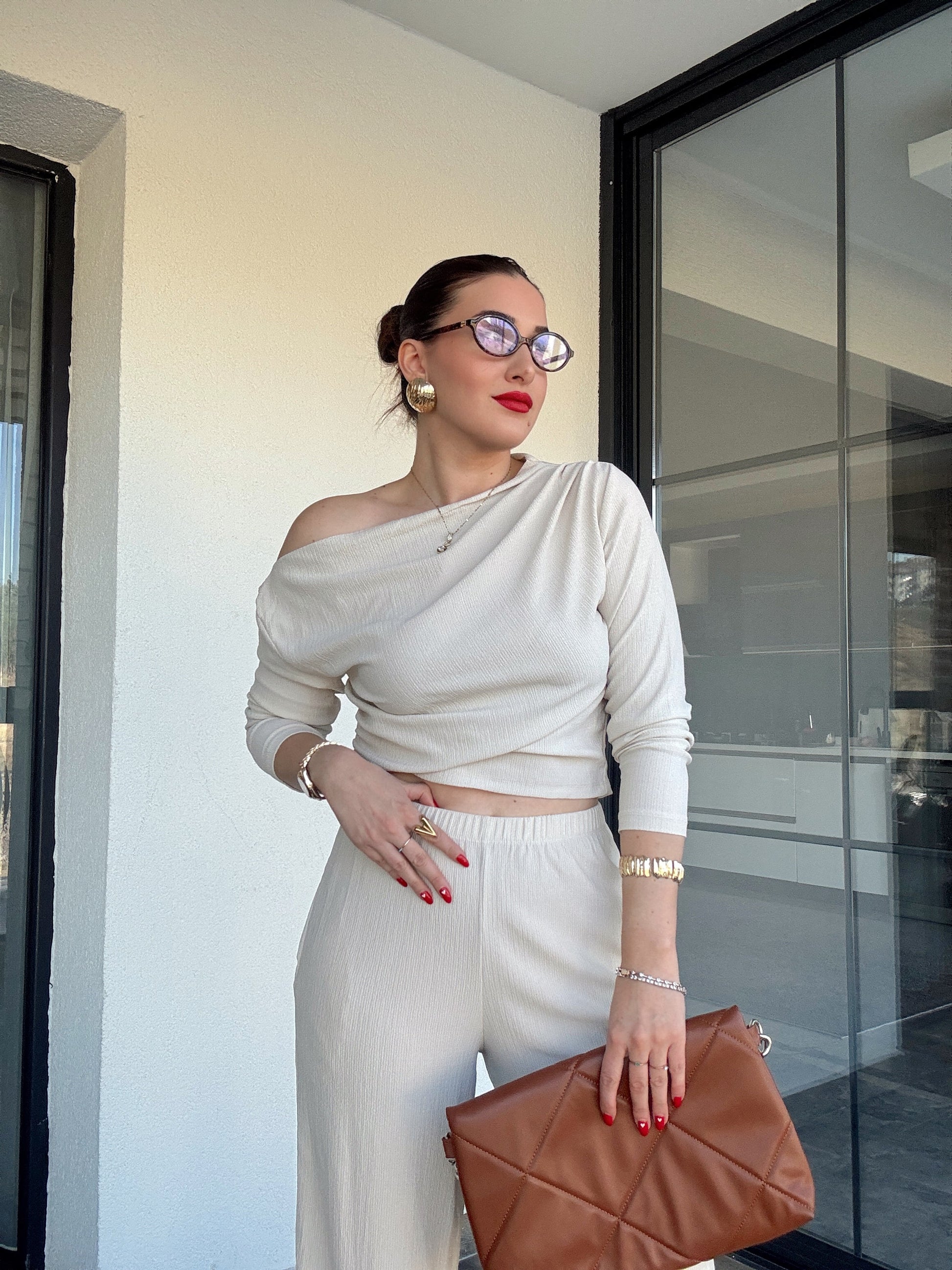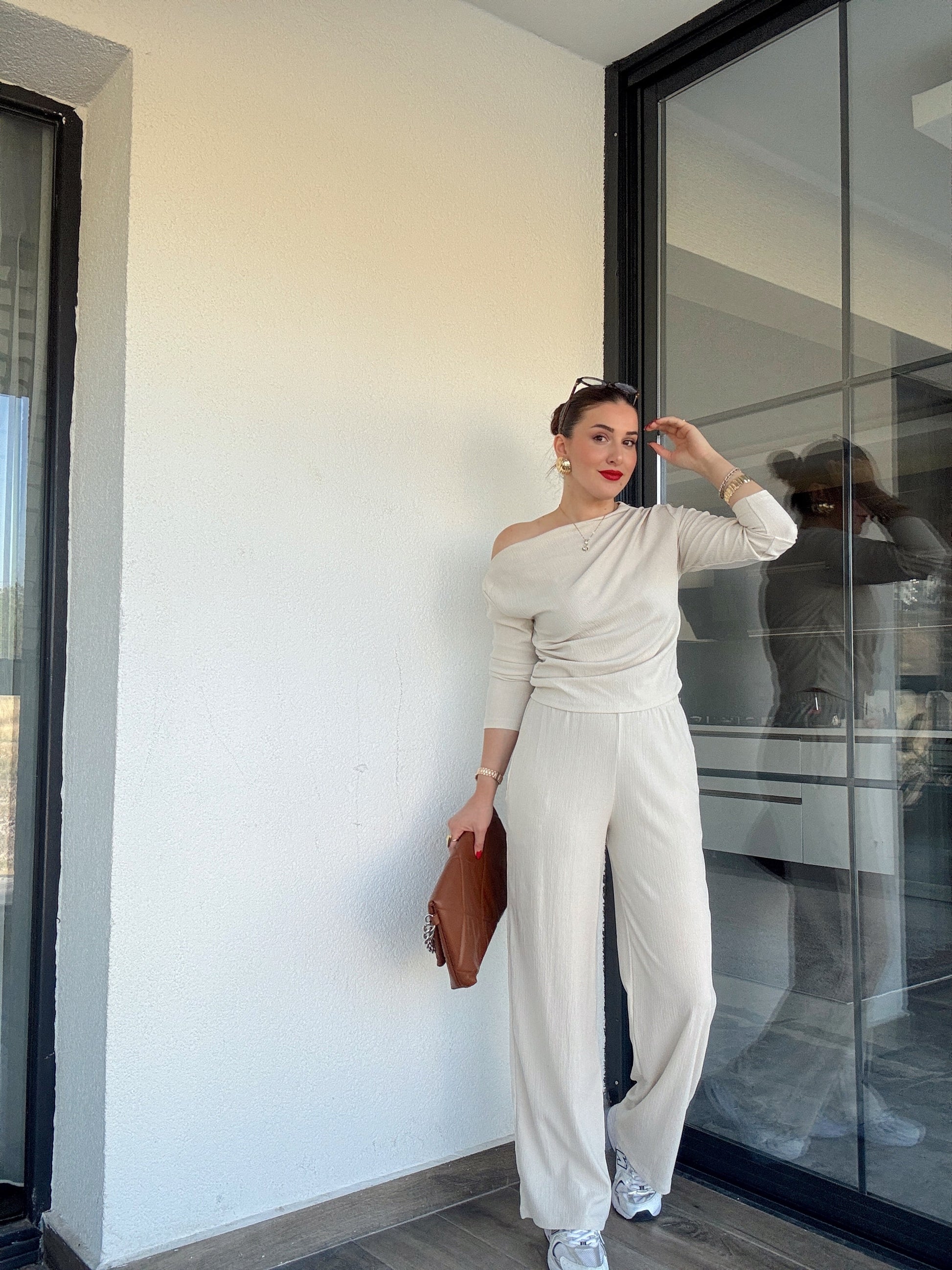 Ağaç kabuğu desenli 2 parça takım BEJ
