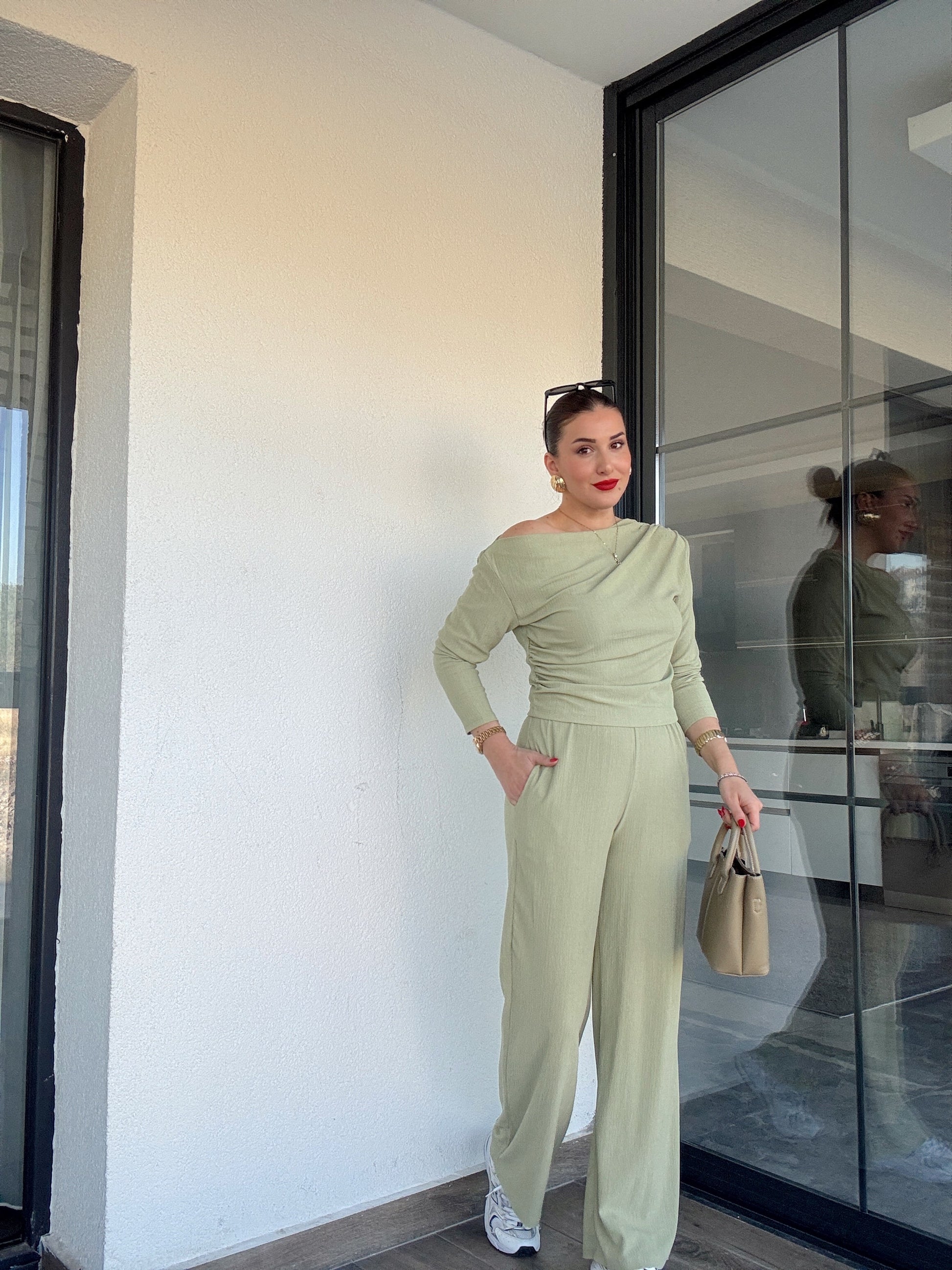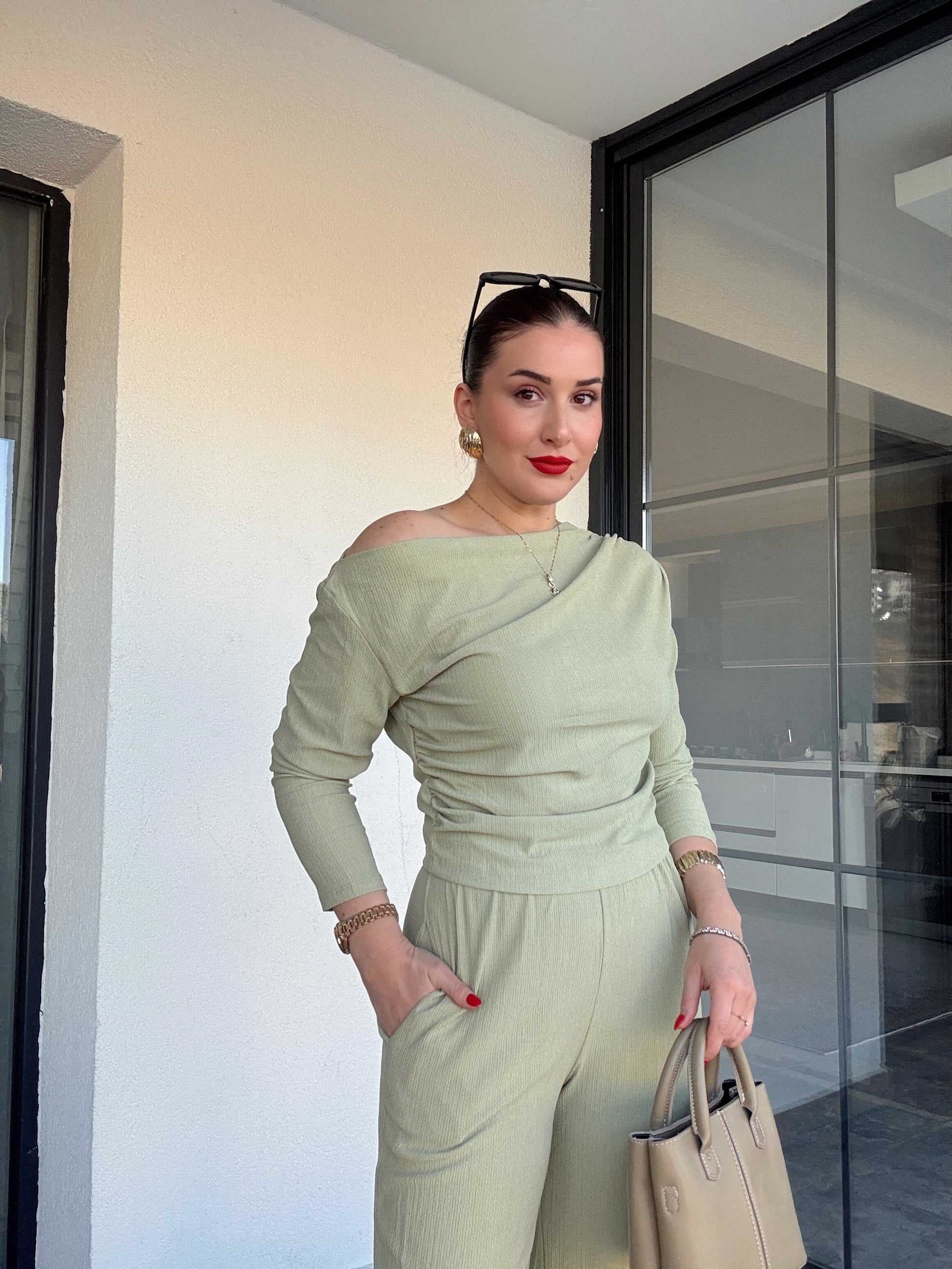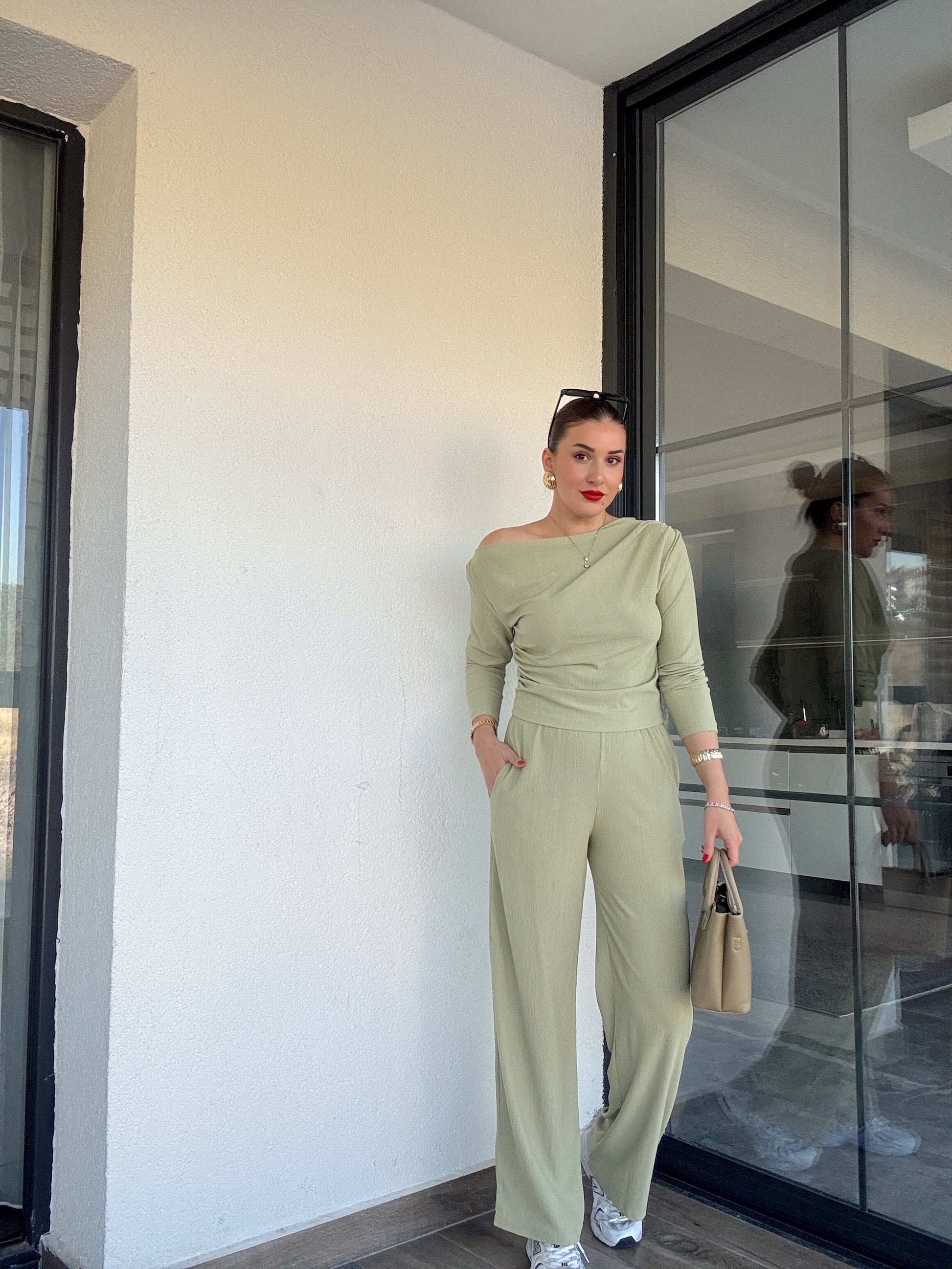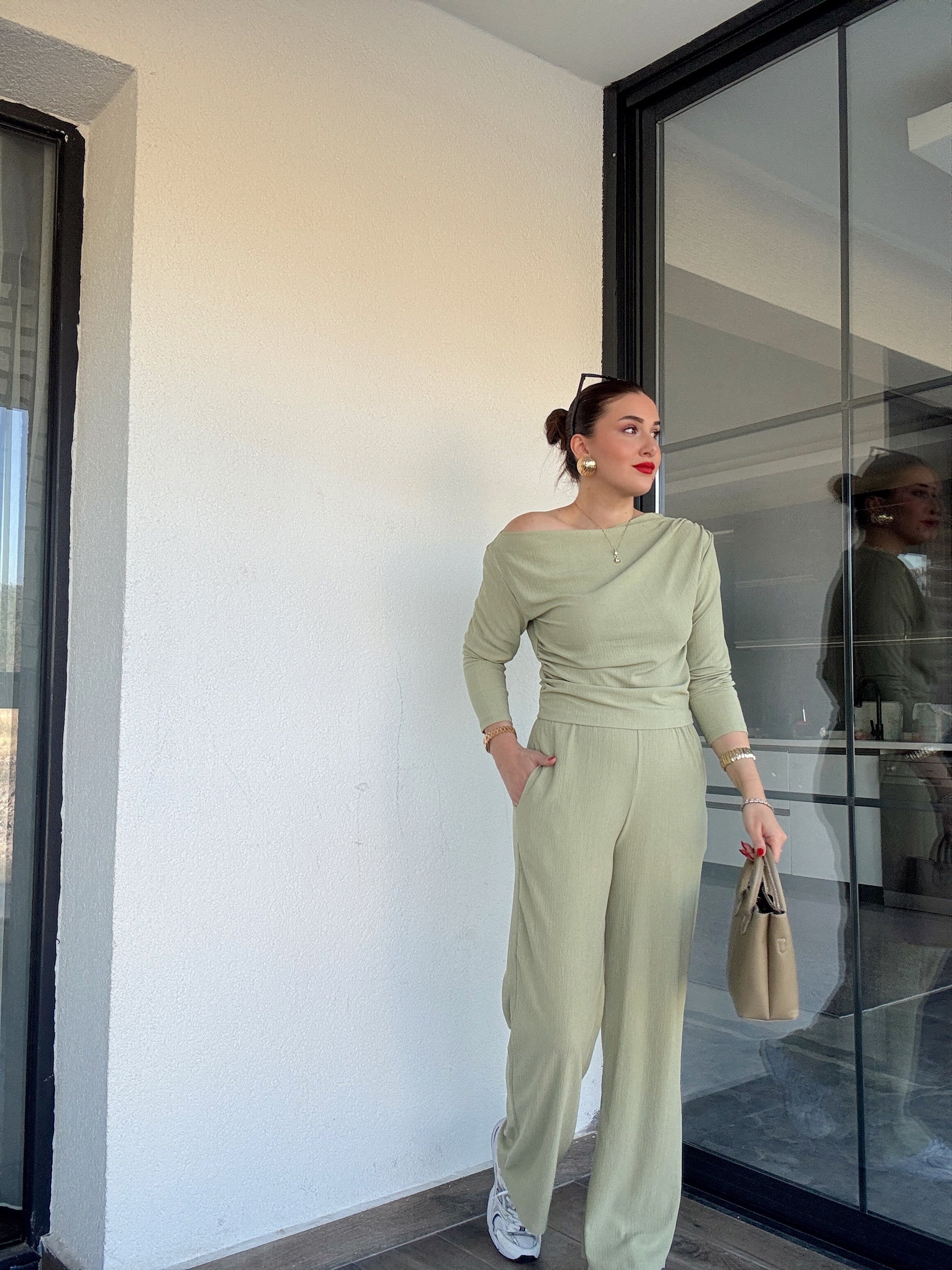 Ağaç kabuğu desenli 2 parça takım MİNT YEŞİLİ