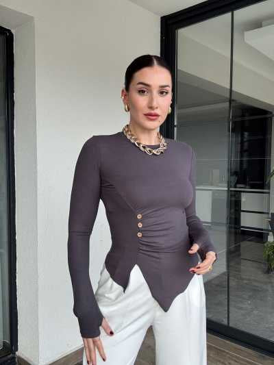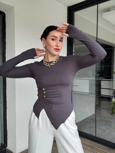 Asimetrik kesim düğmeli badi-FÜME