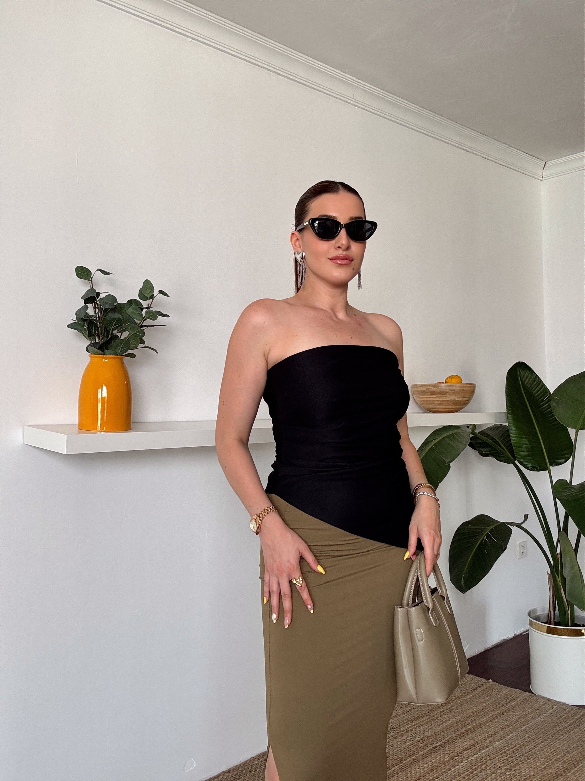 Asimetrik kesim straplez bluz SİYAH