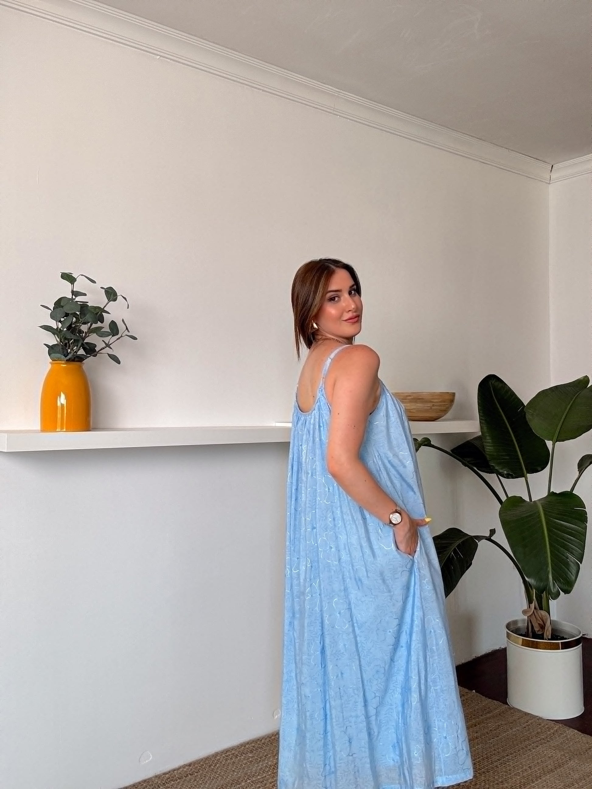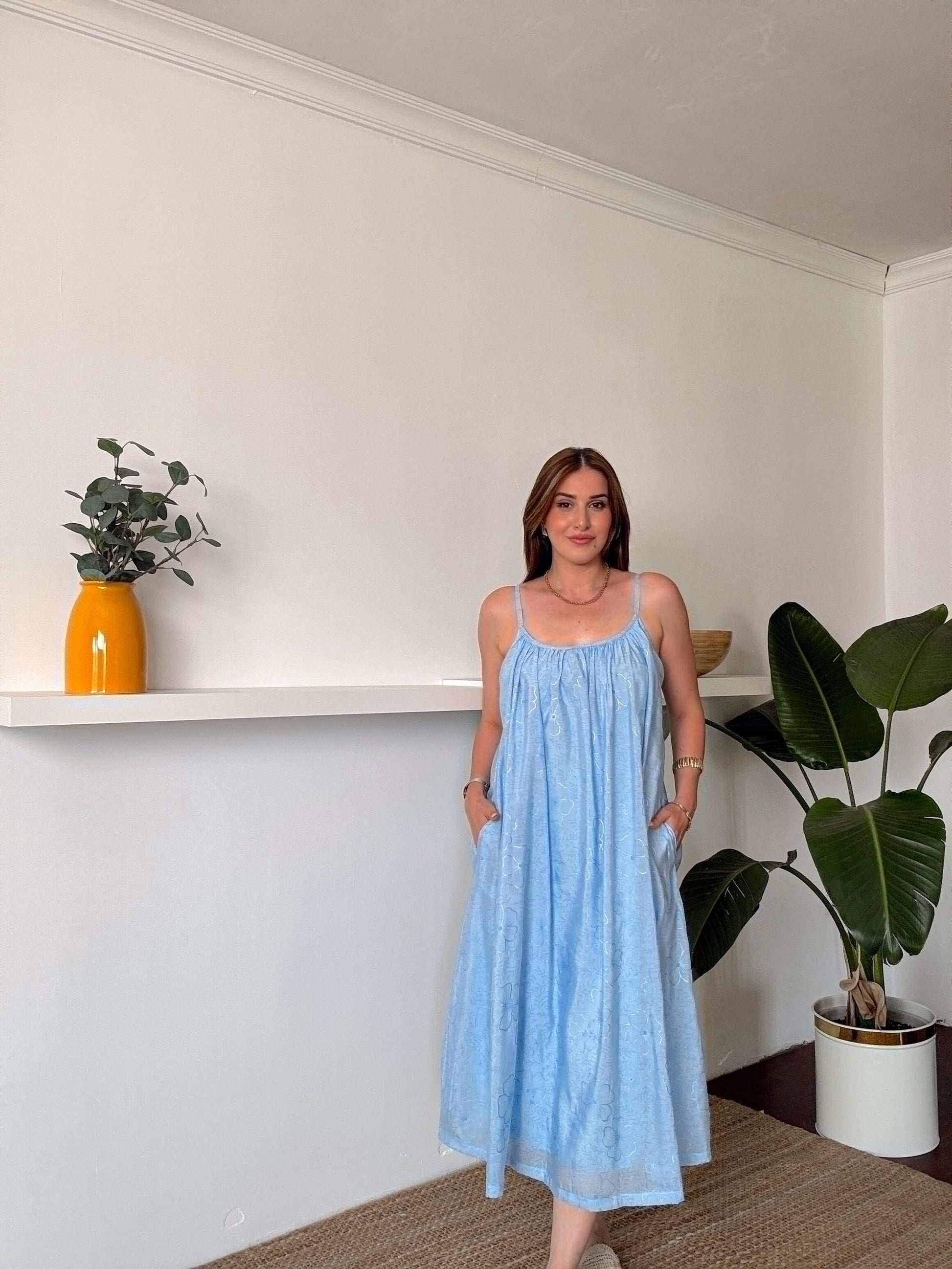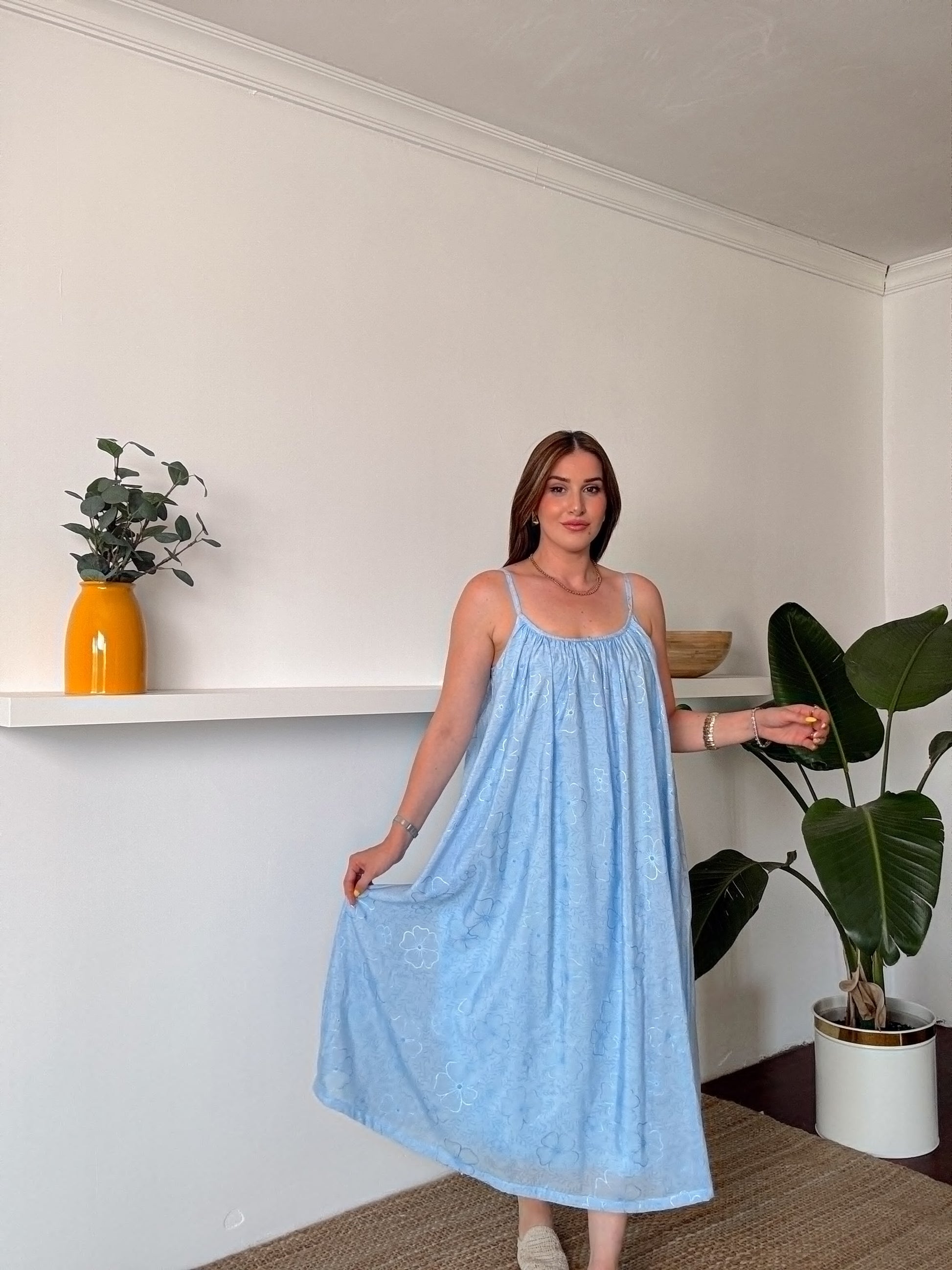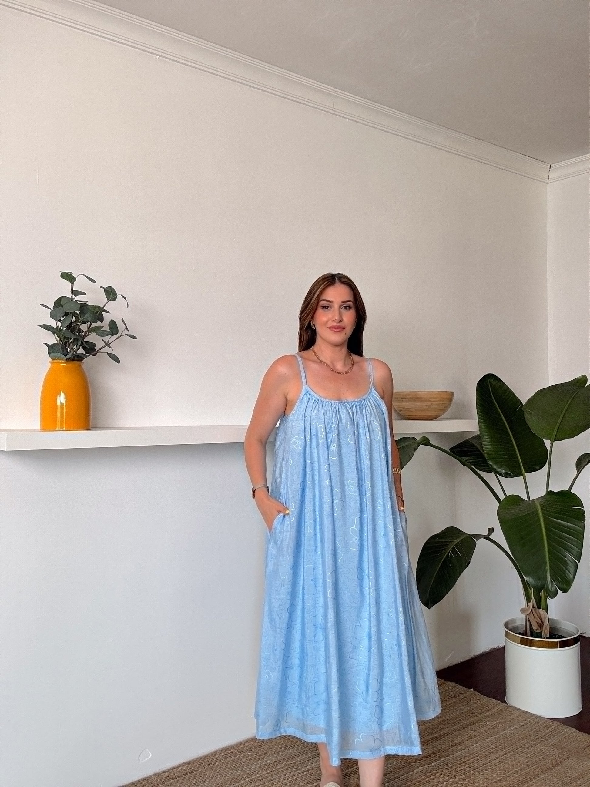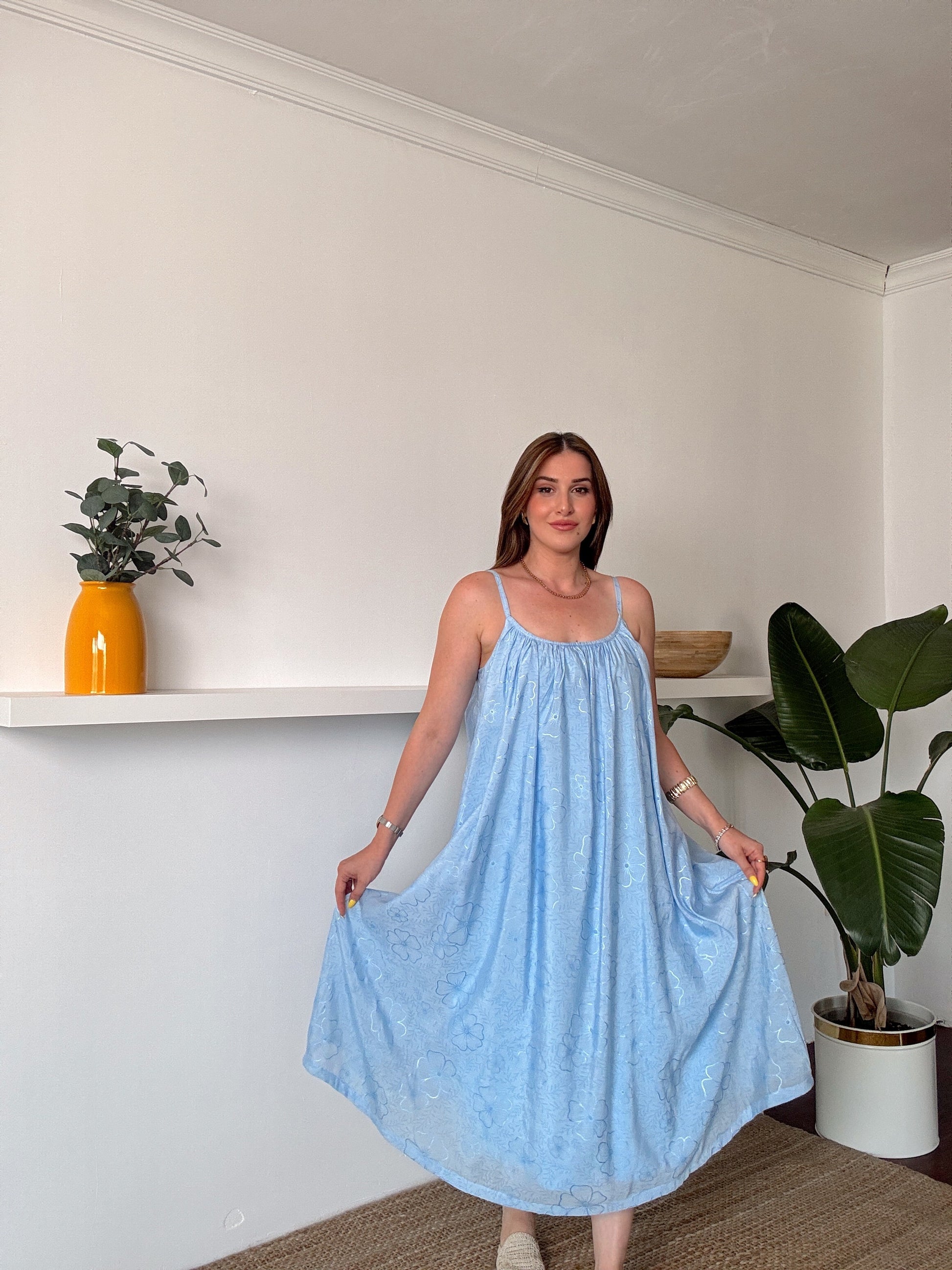 Askılı Astarlı Premium kumaş salaş elbise Mavi