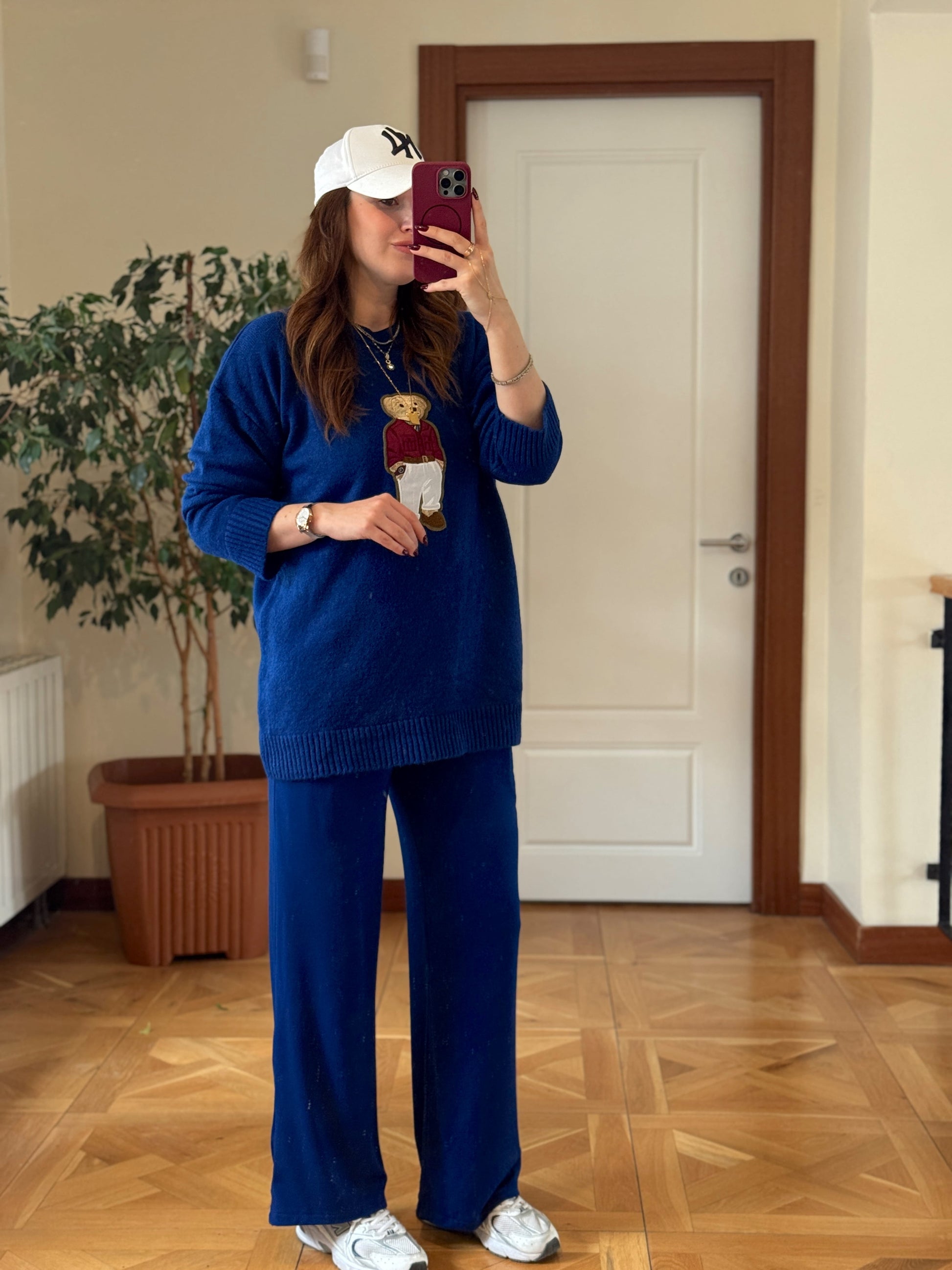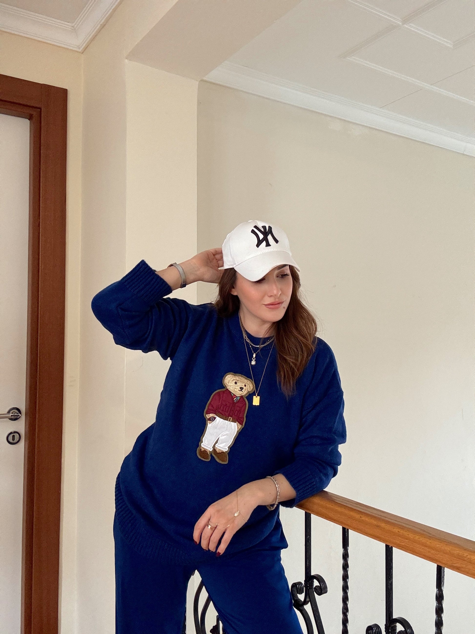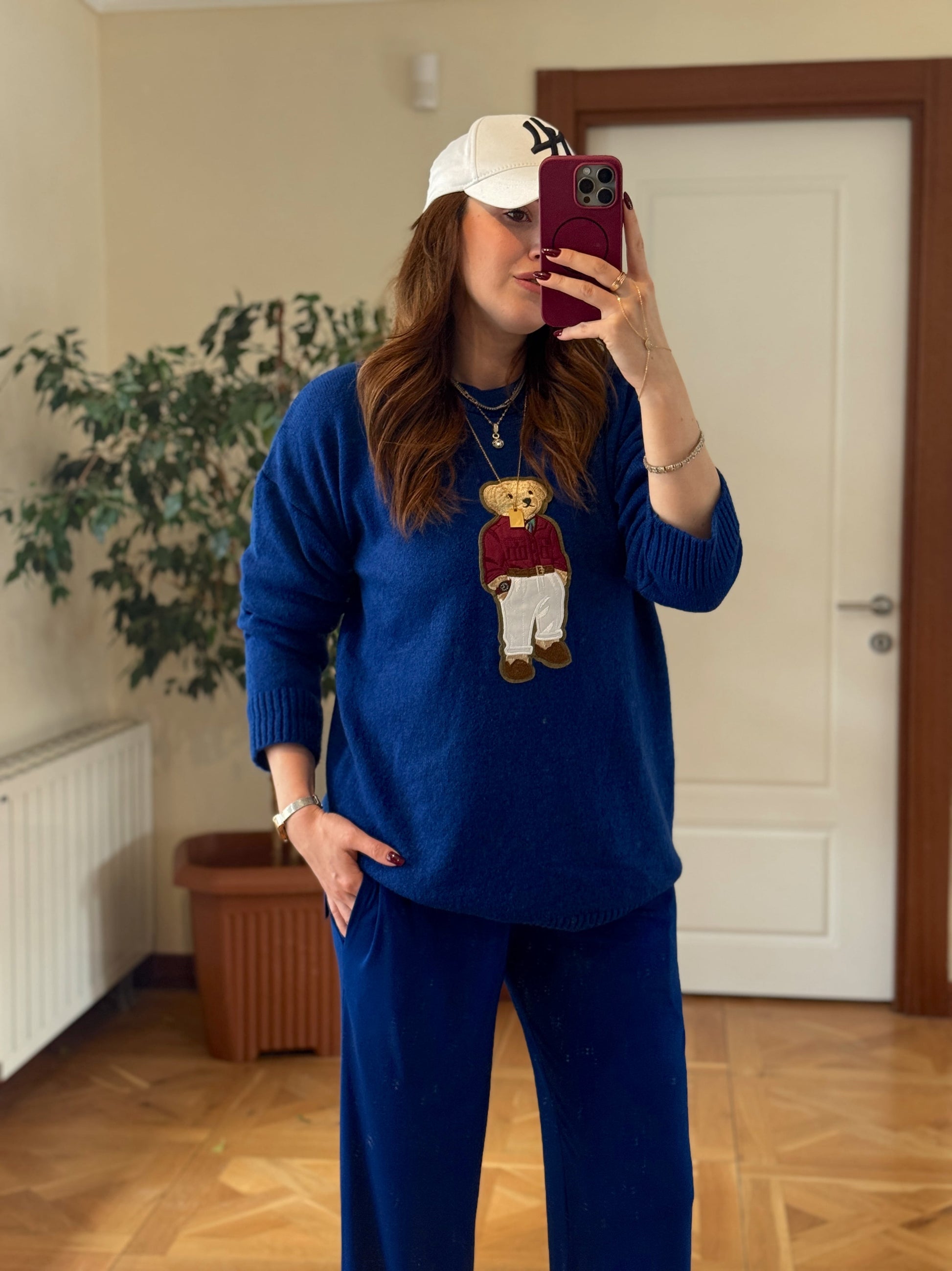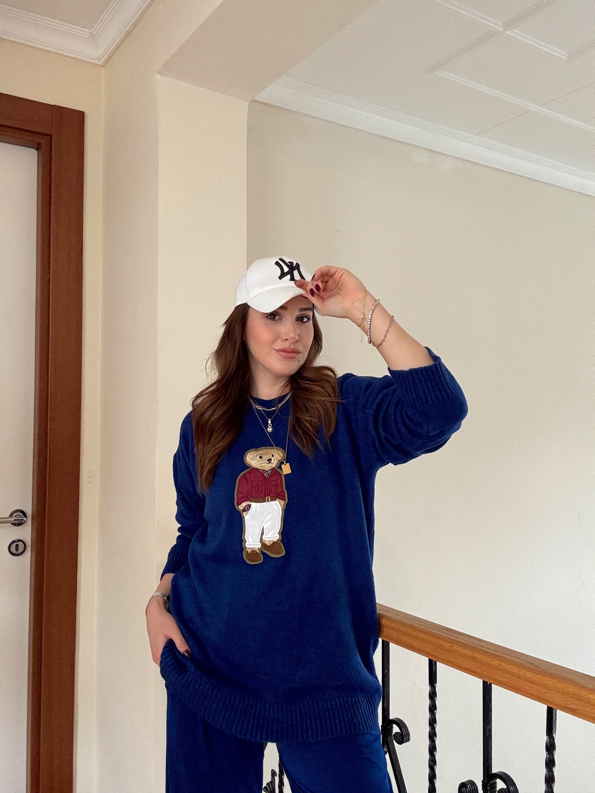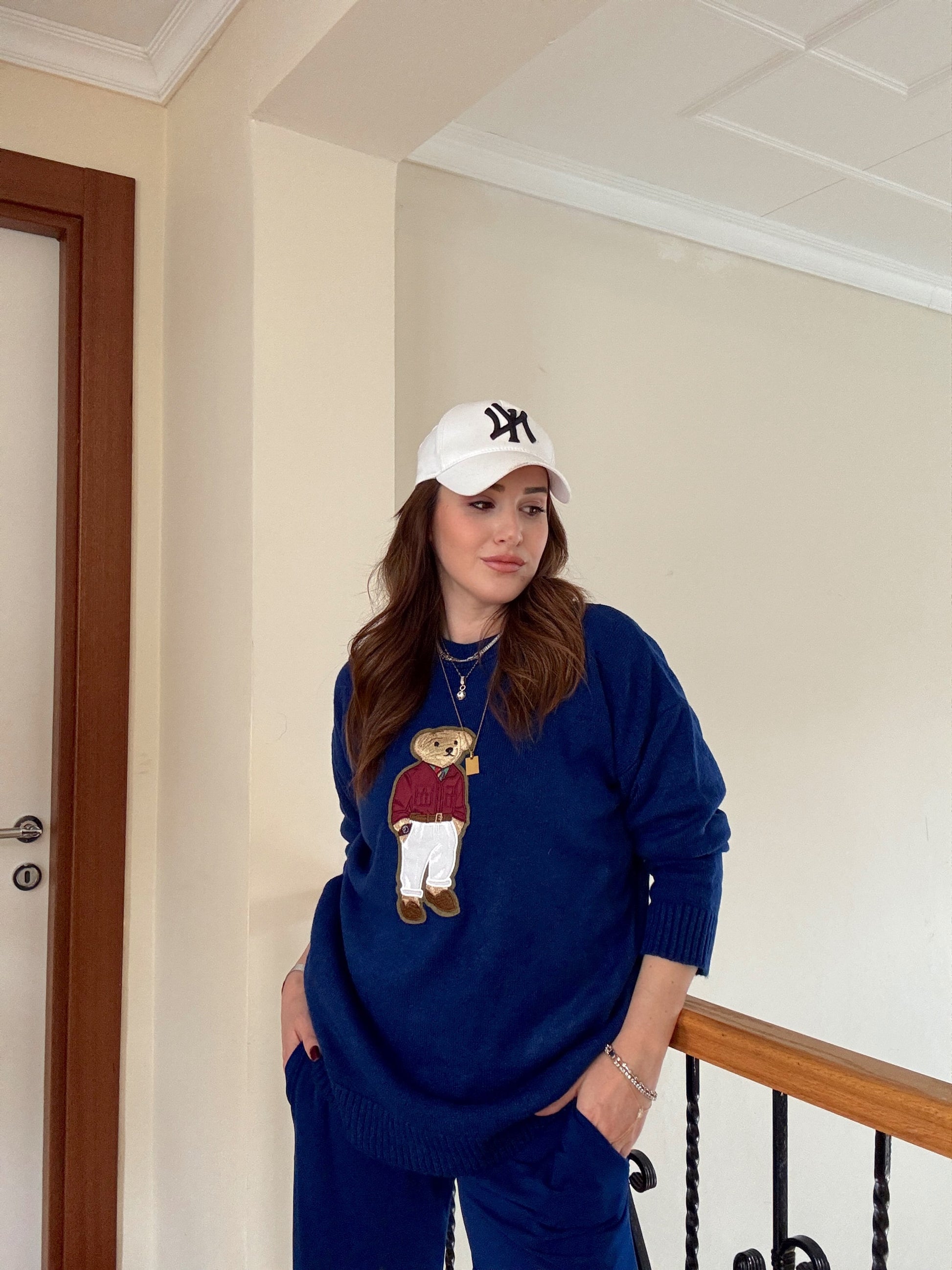 Ayıcık İşleme Yumoş Triko Kazak - SAKS MAVİ