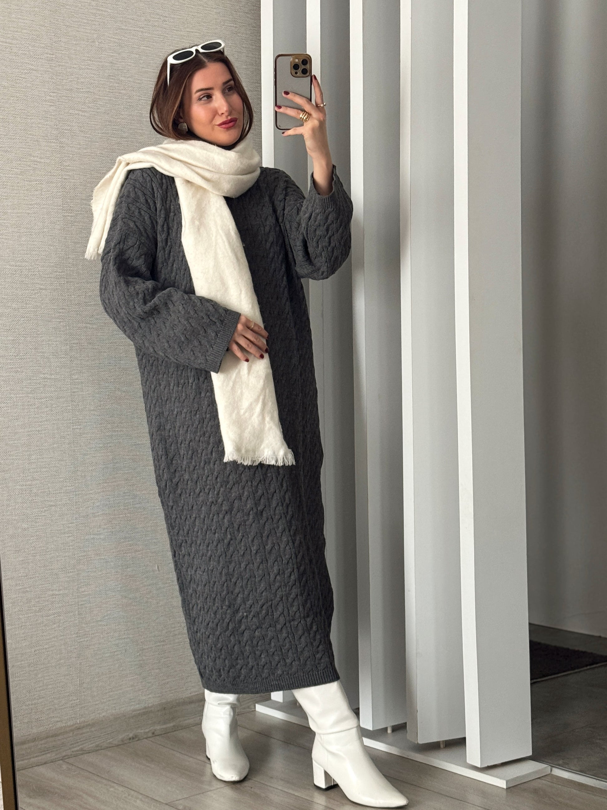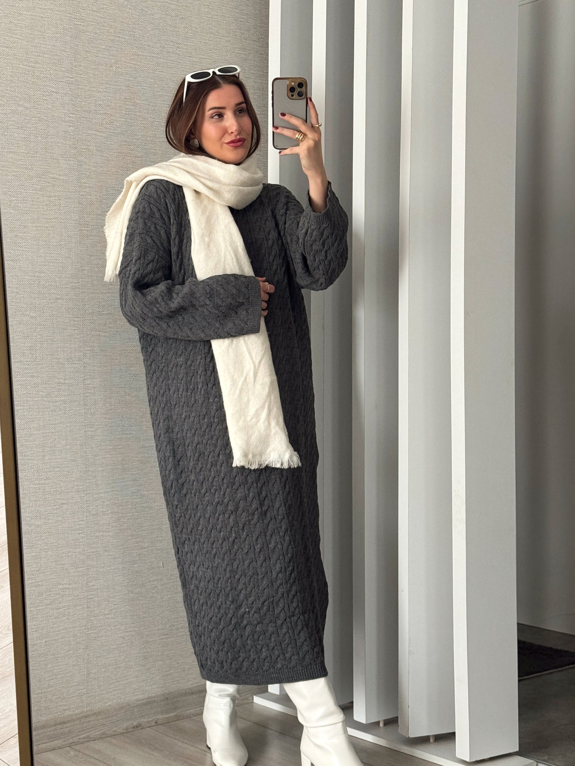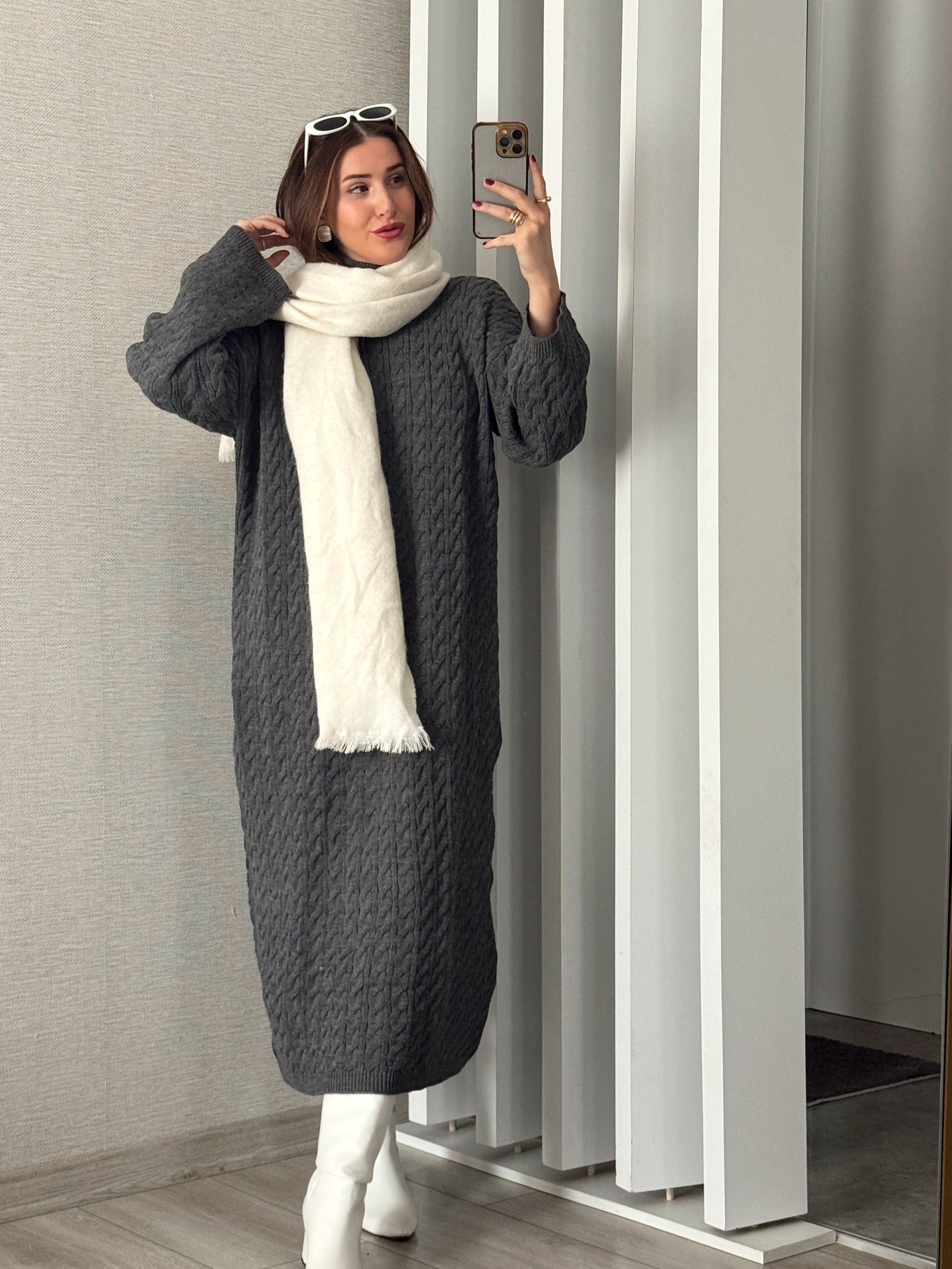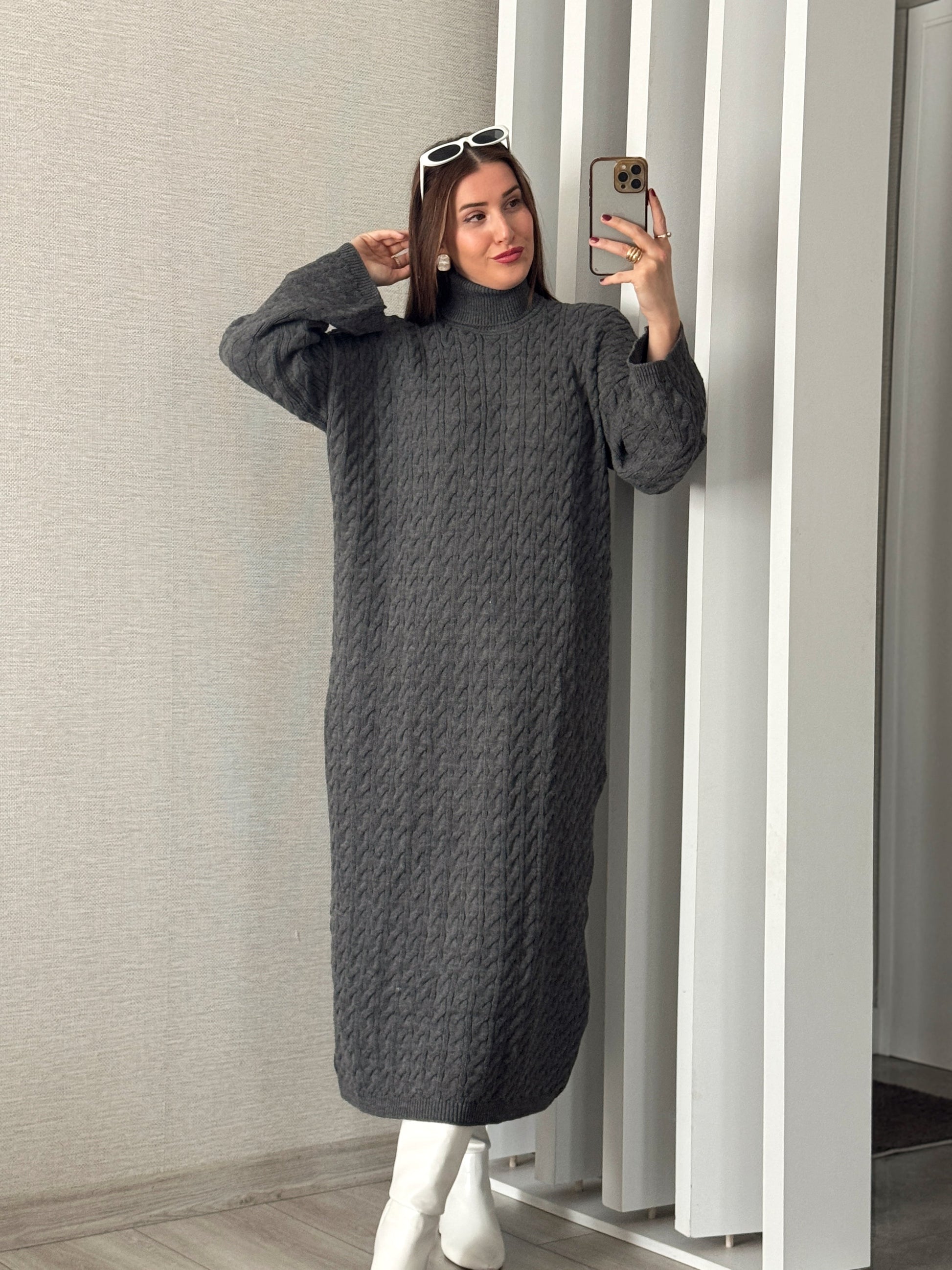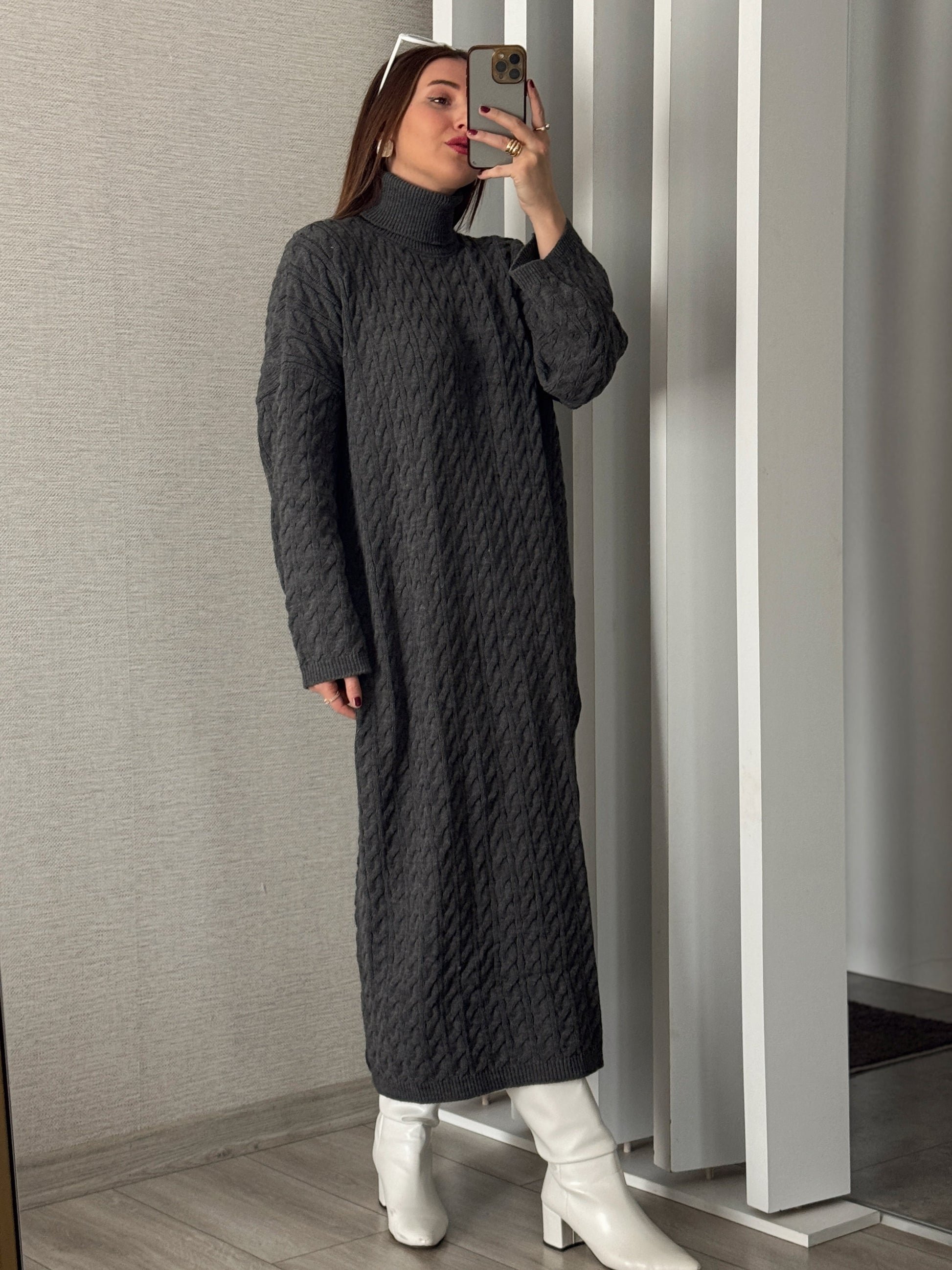 Balıkçı Saç Örgü Elbise - FÜME