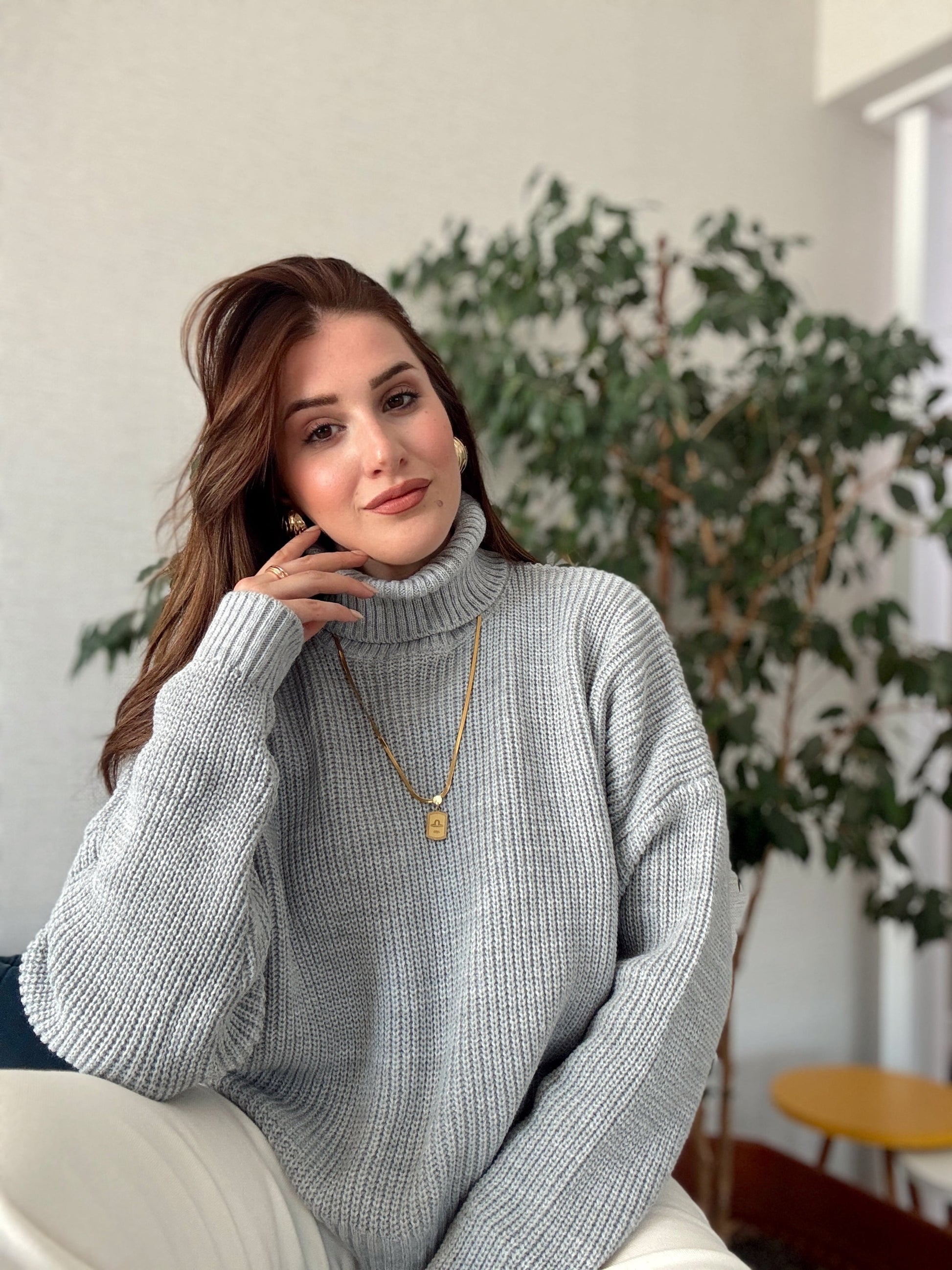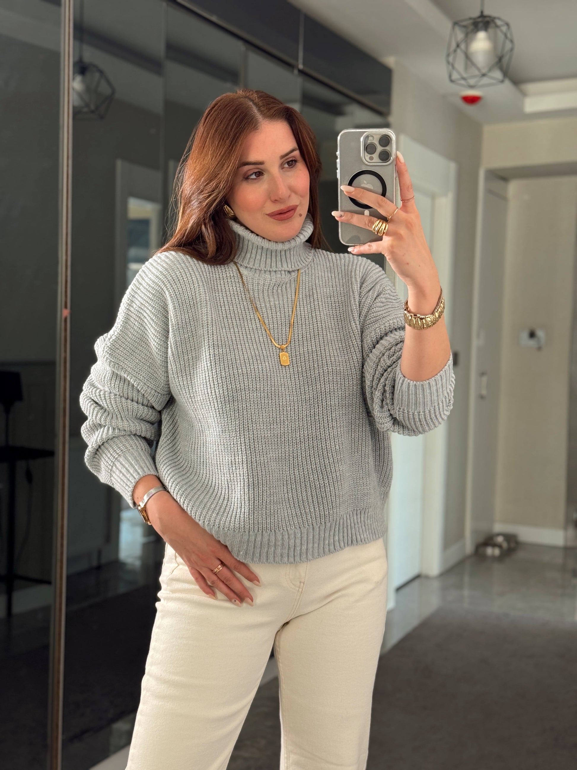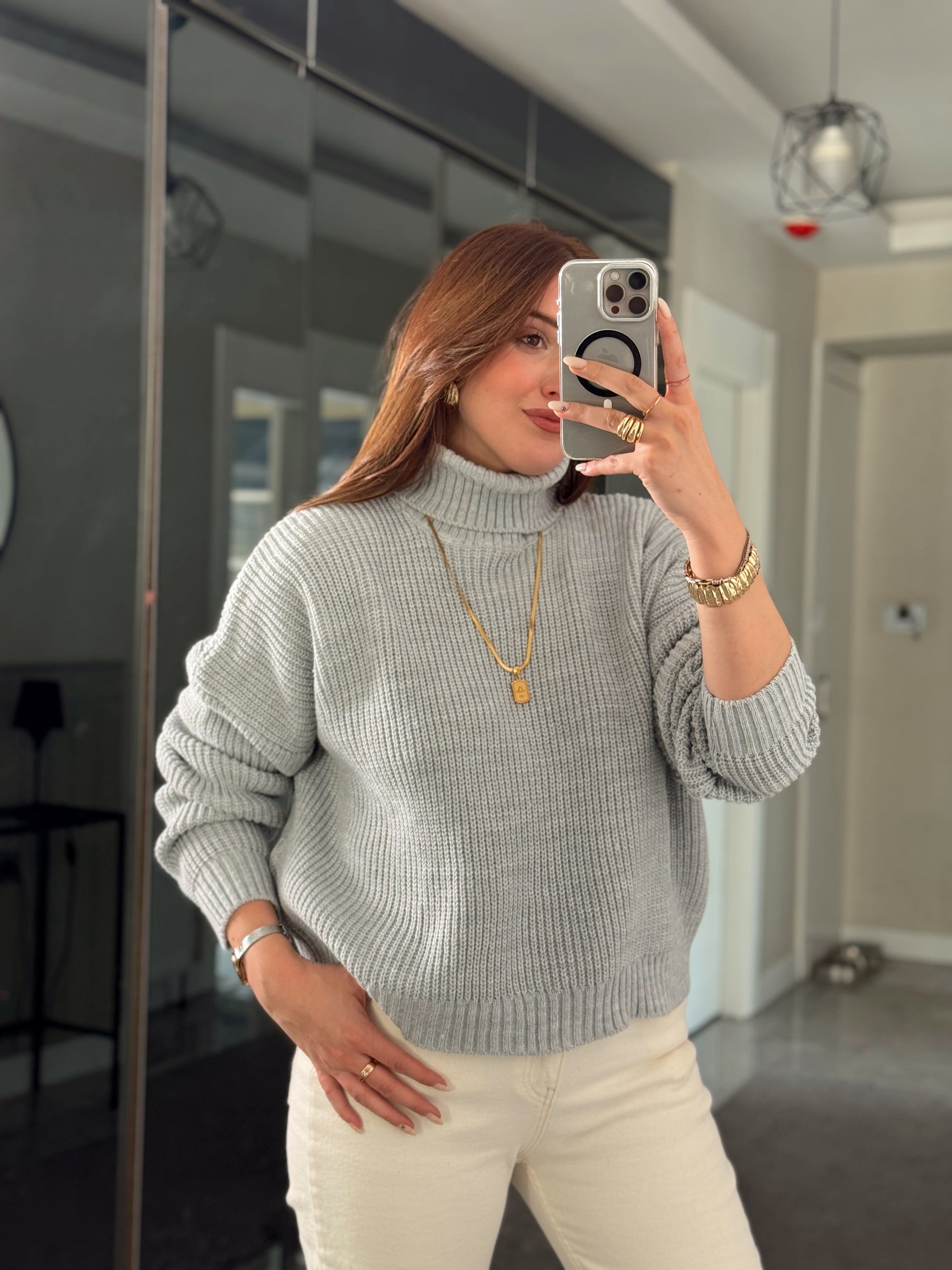 Balıkçı Yaka Selanik Örgü Kazak GRİ