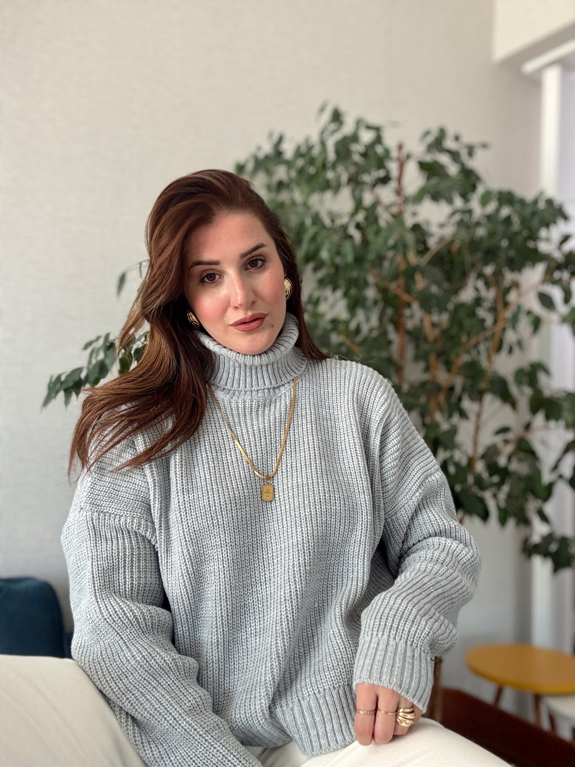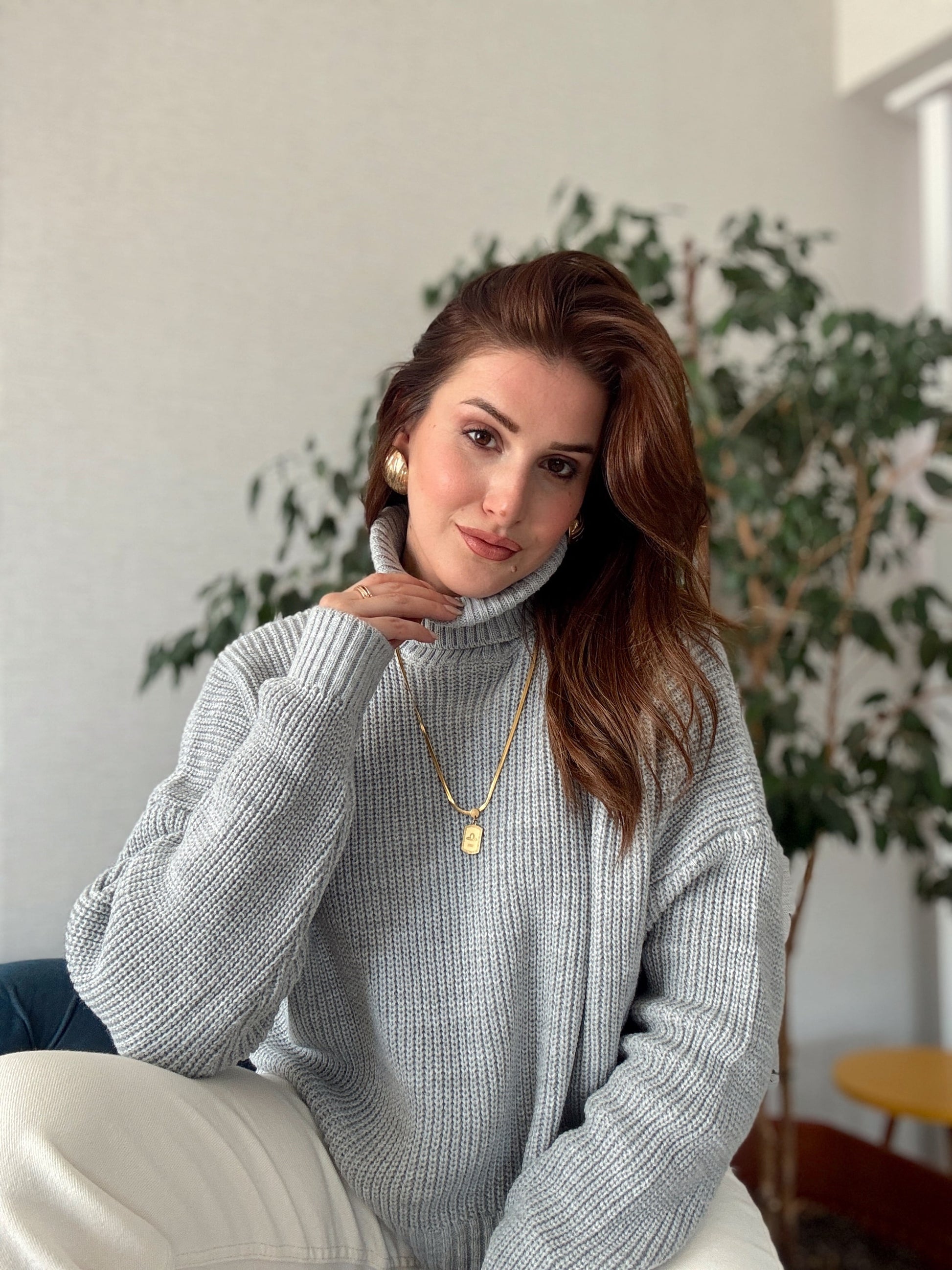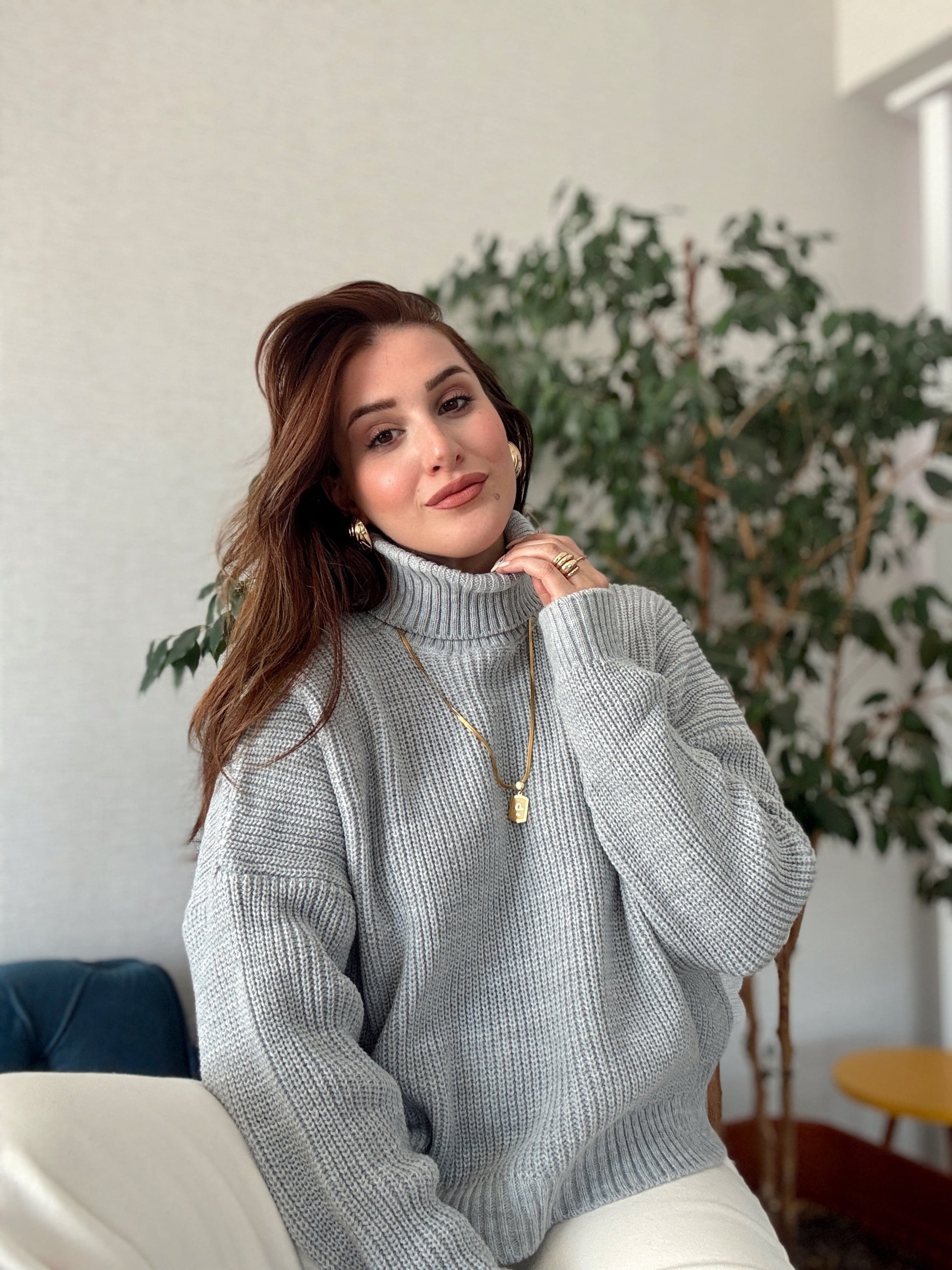 Balıkçı Yaka Selanik Örgü Kazak GRİ