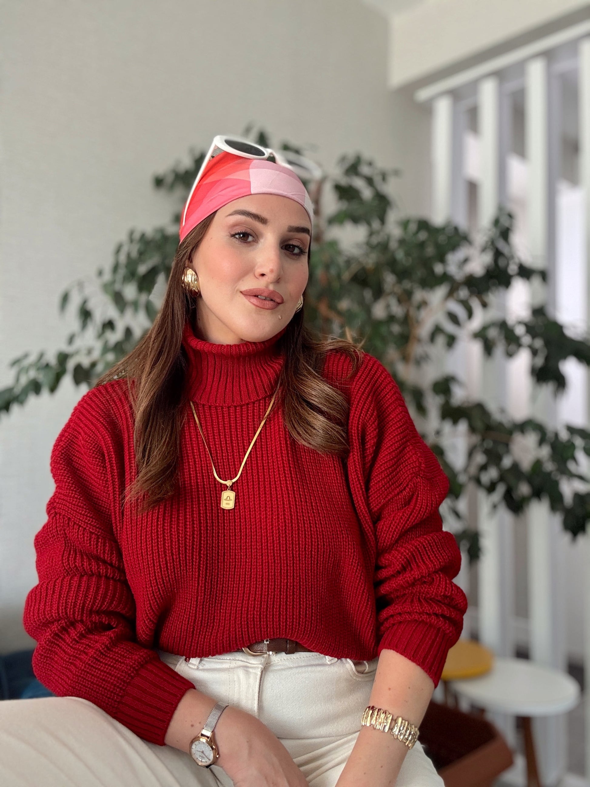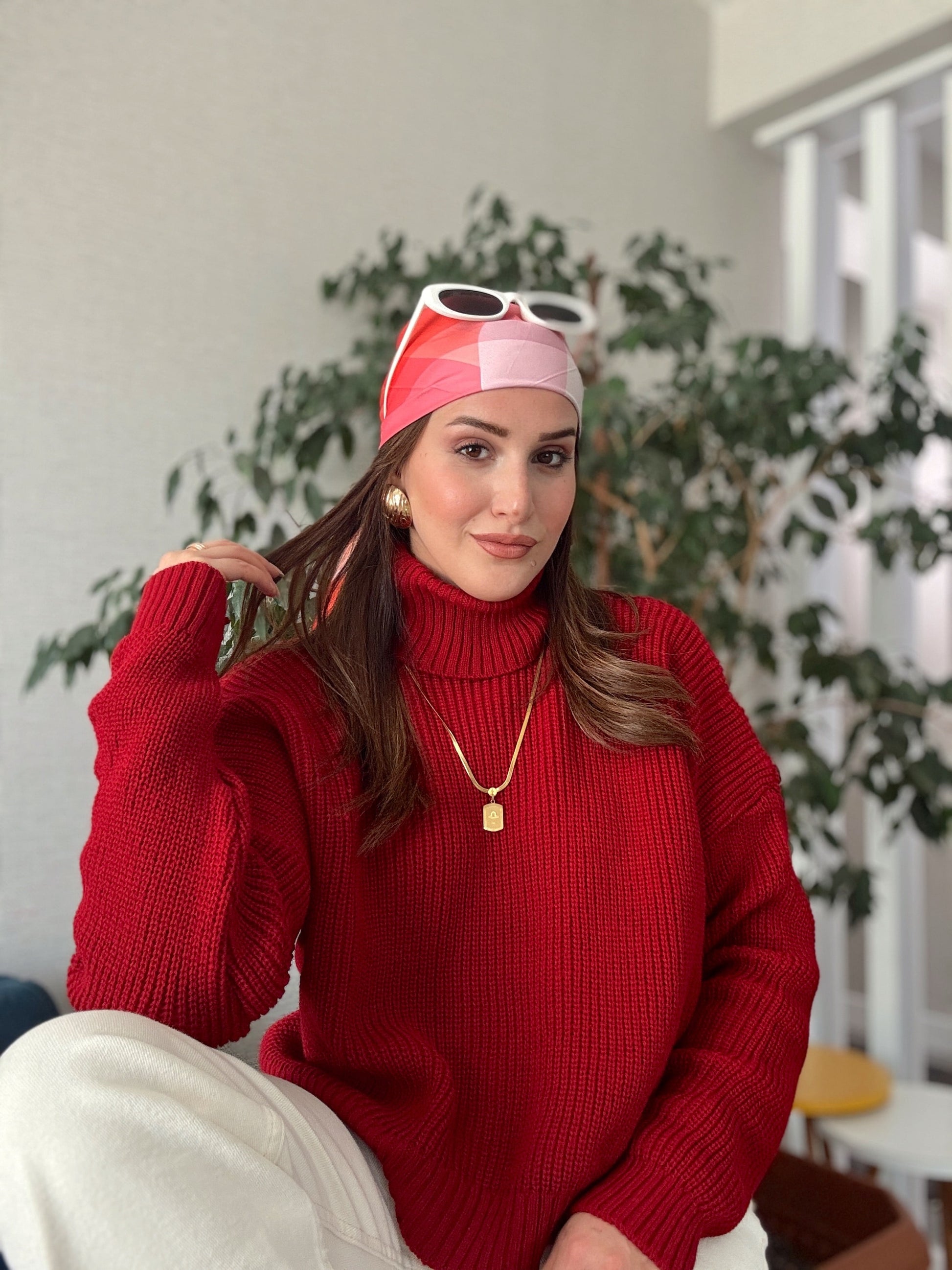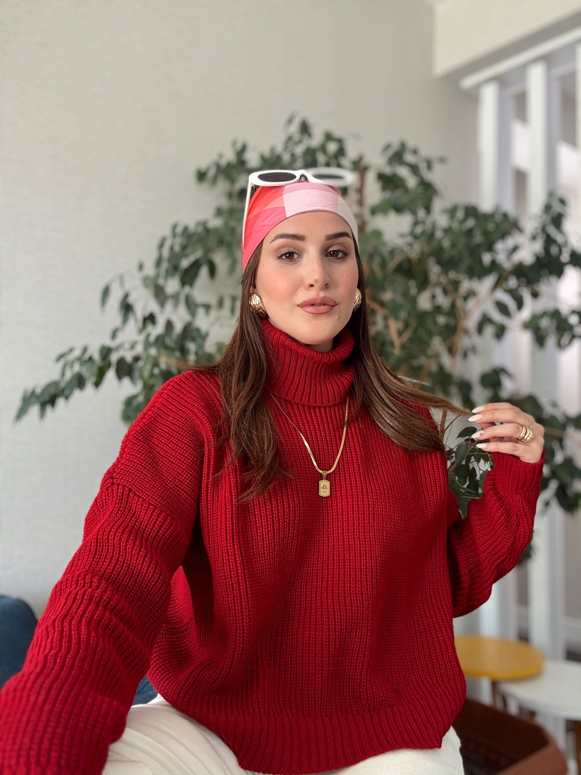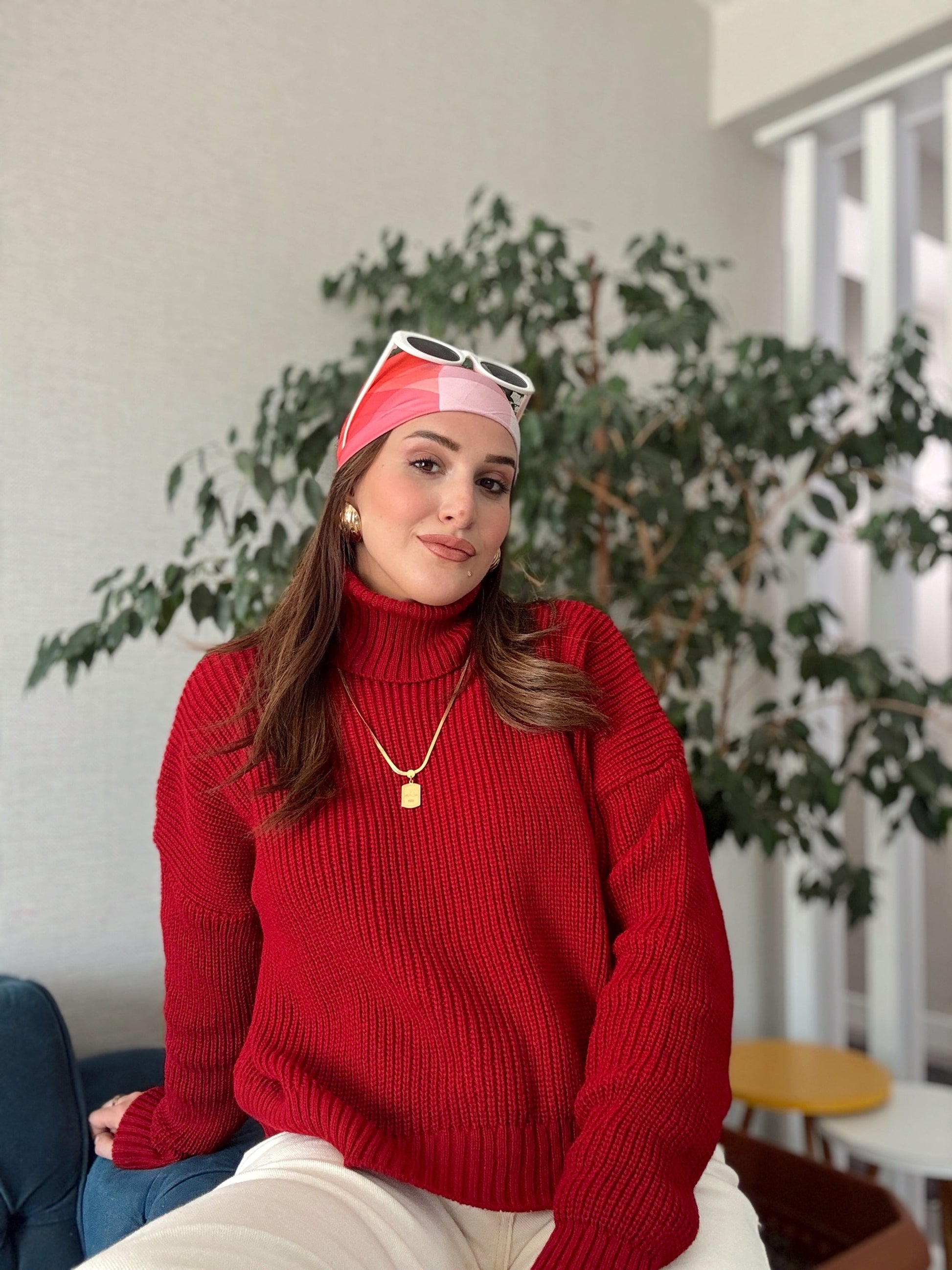Balıkçı Yaka Selanik Örgü Kazak KIRMIZI