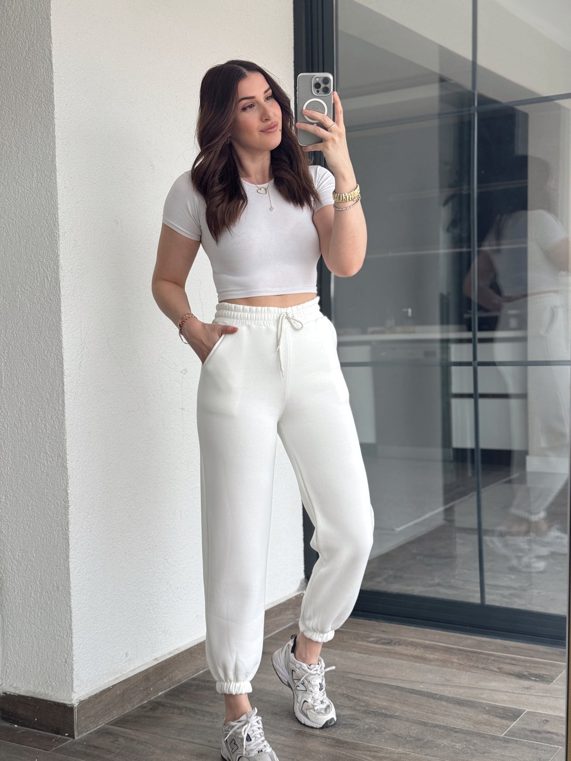 Basic 3 İplik Şardonlu Eşofman Alt - EKRU