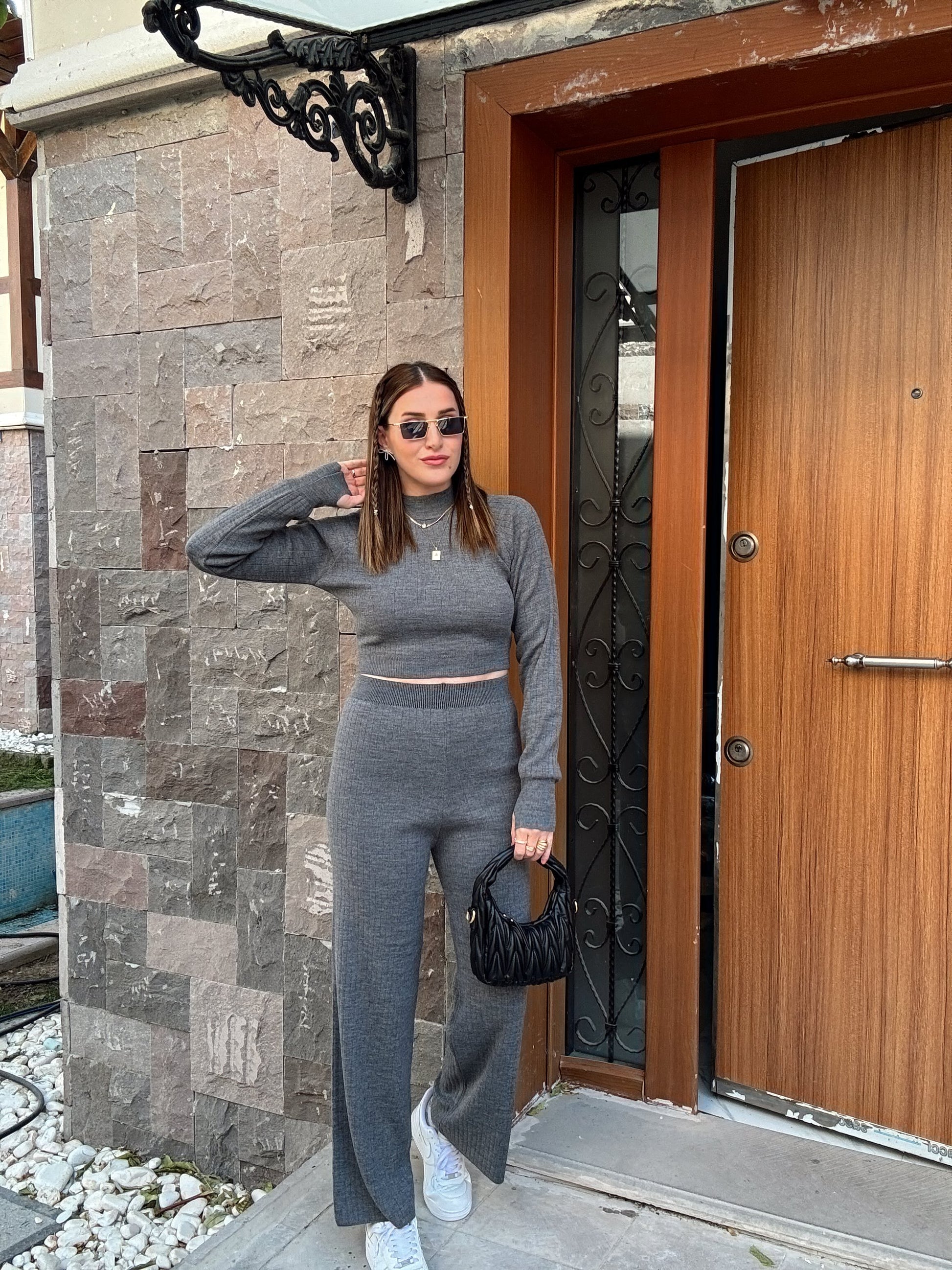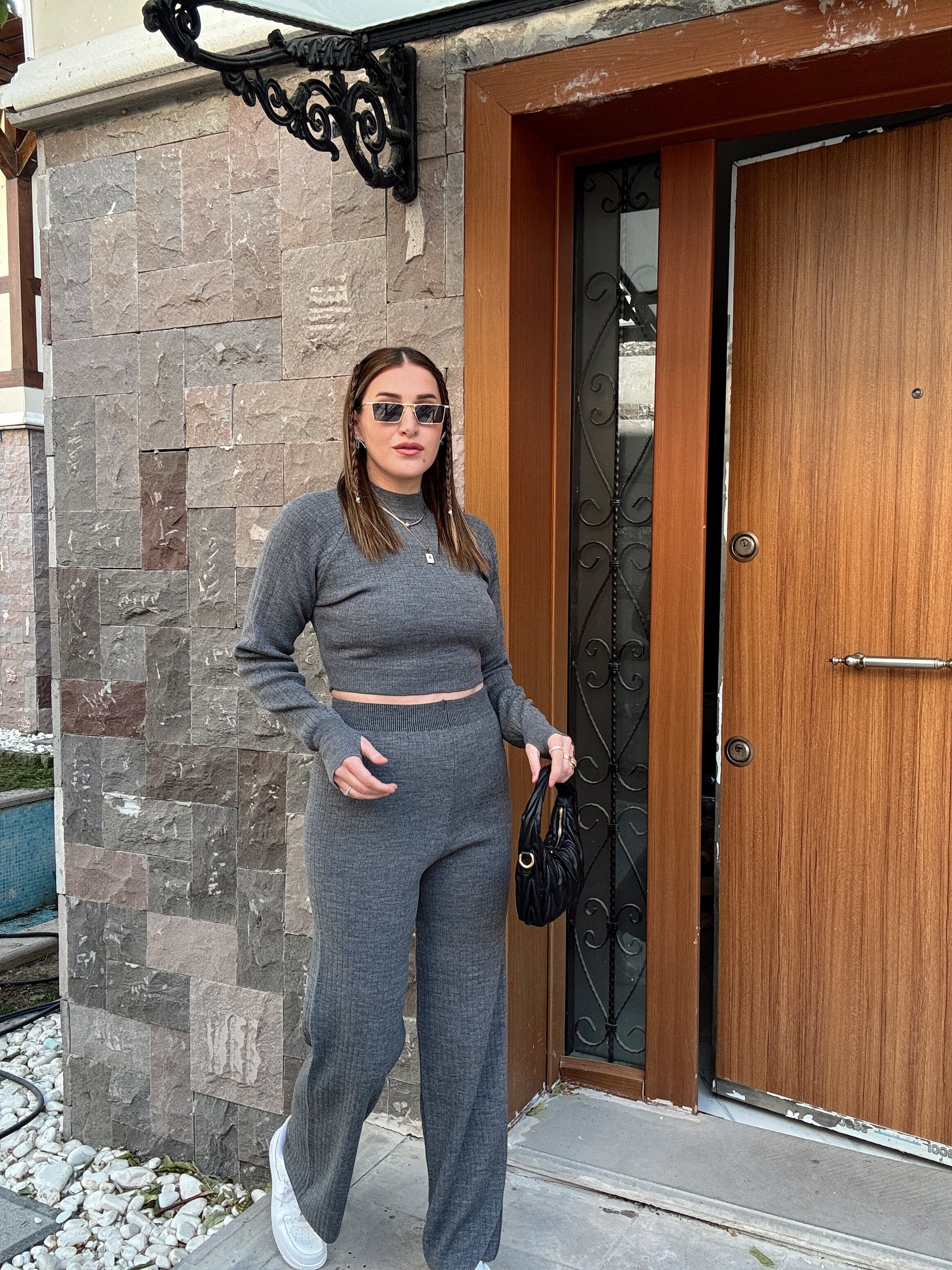 Basic Fitilli Triko Takım FÜME