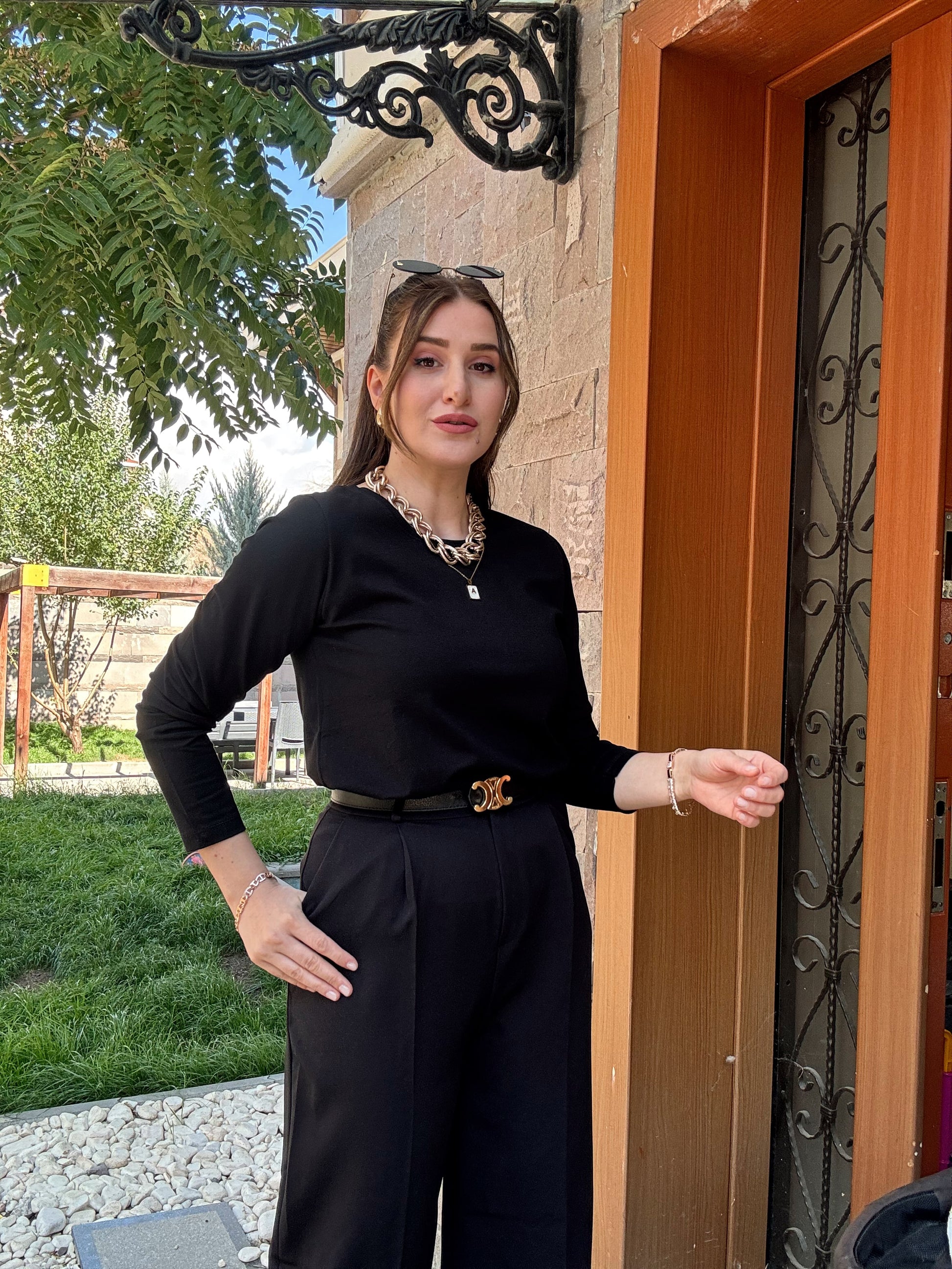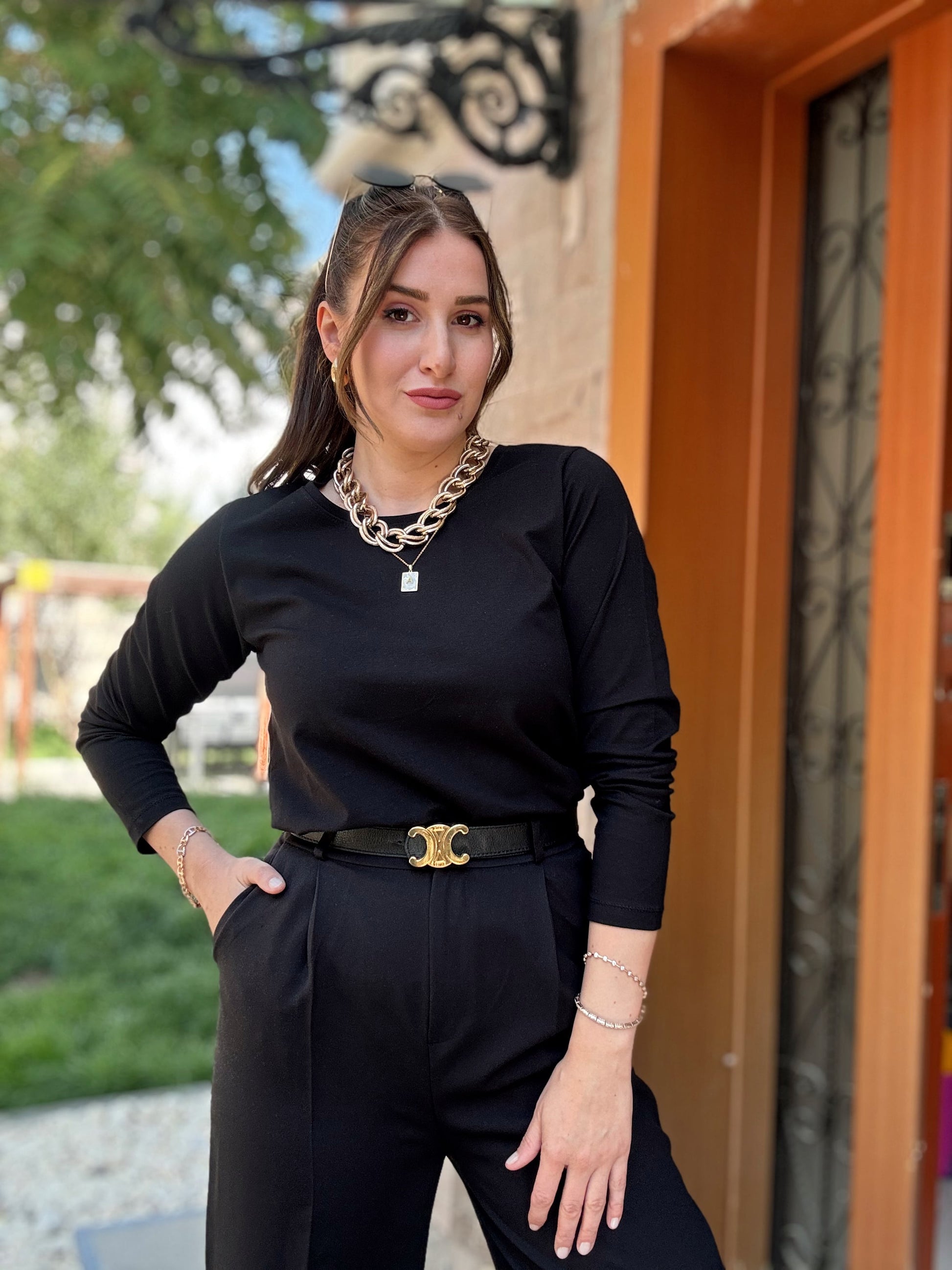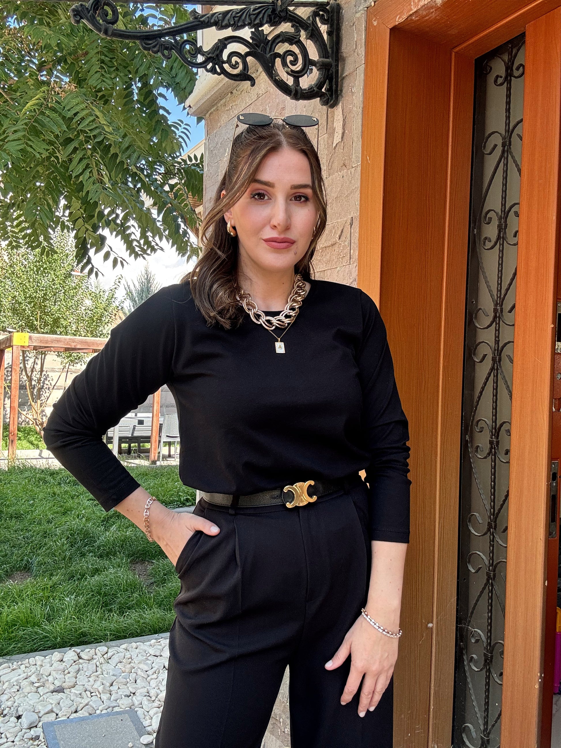 Basic Sıfır Yaka Uzun Kol Badi - SİYAH