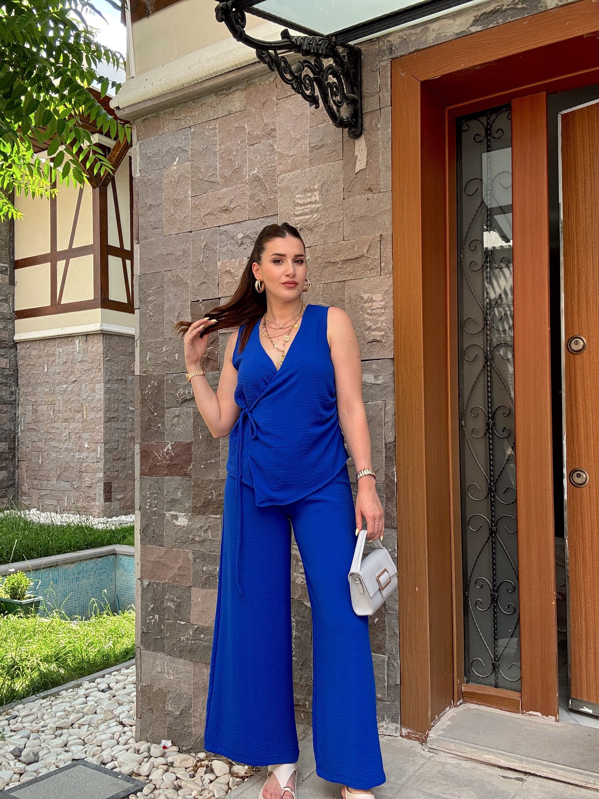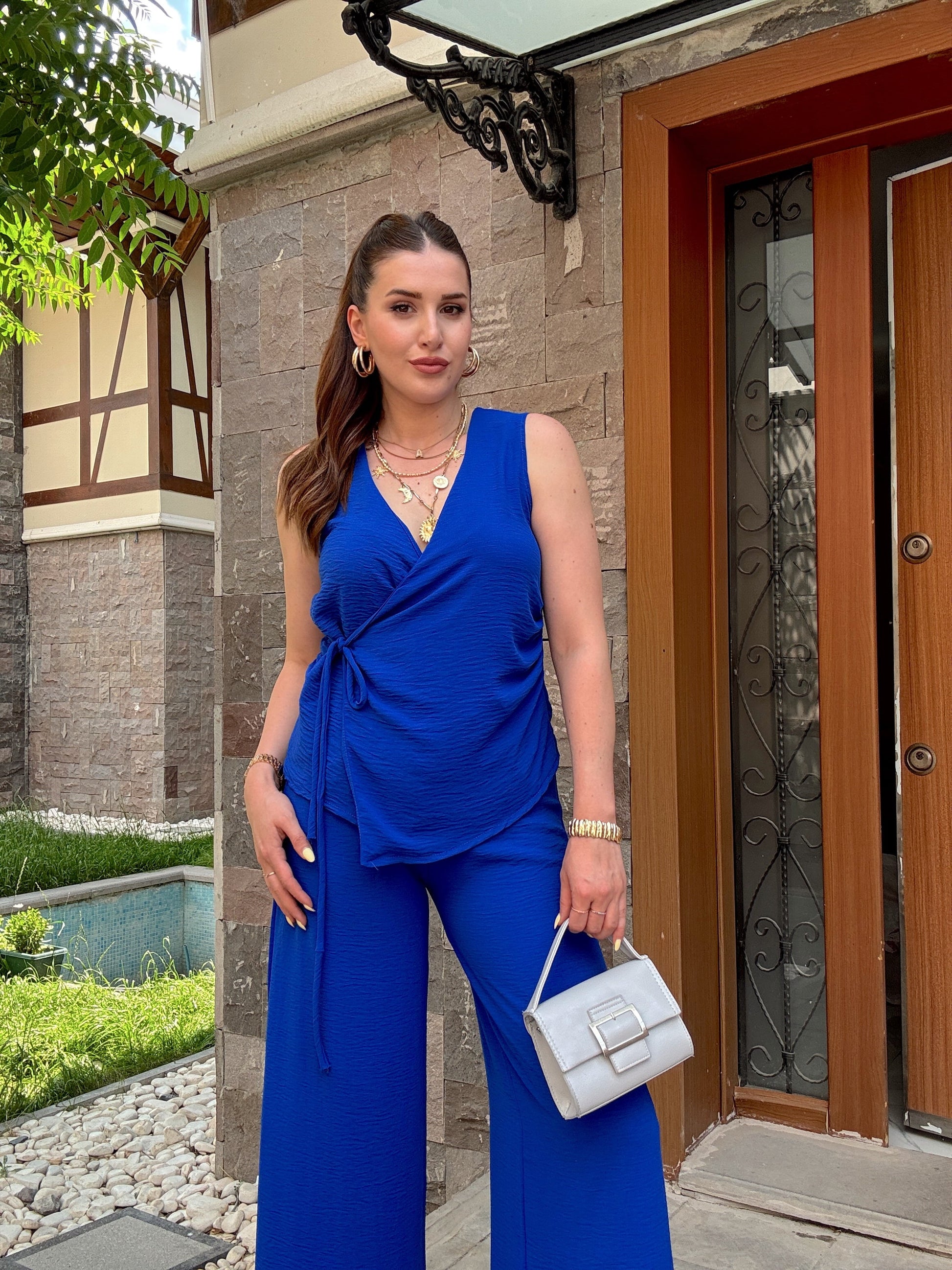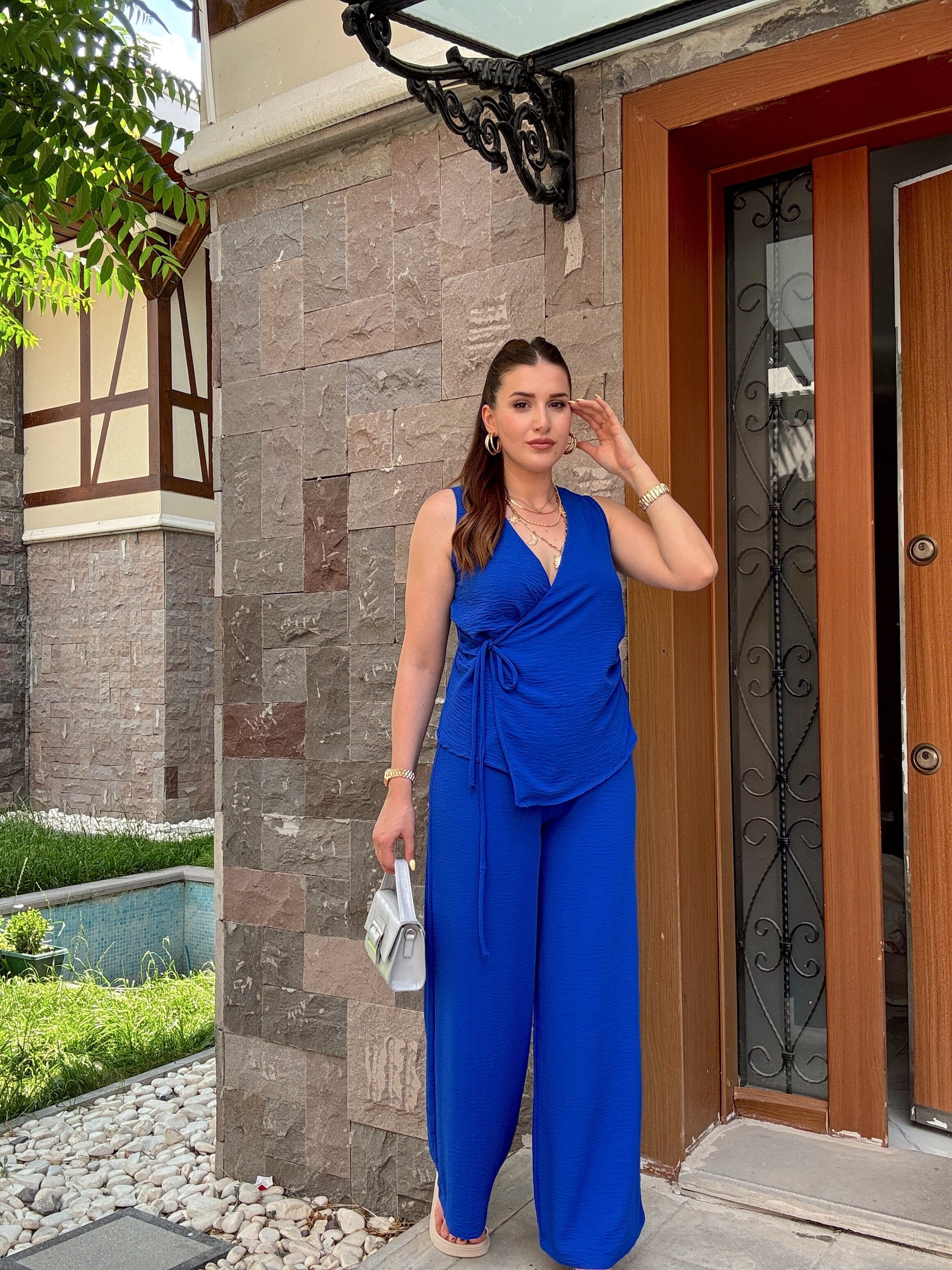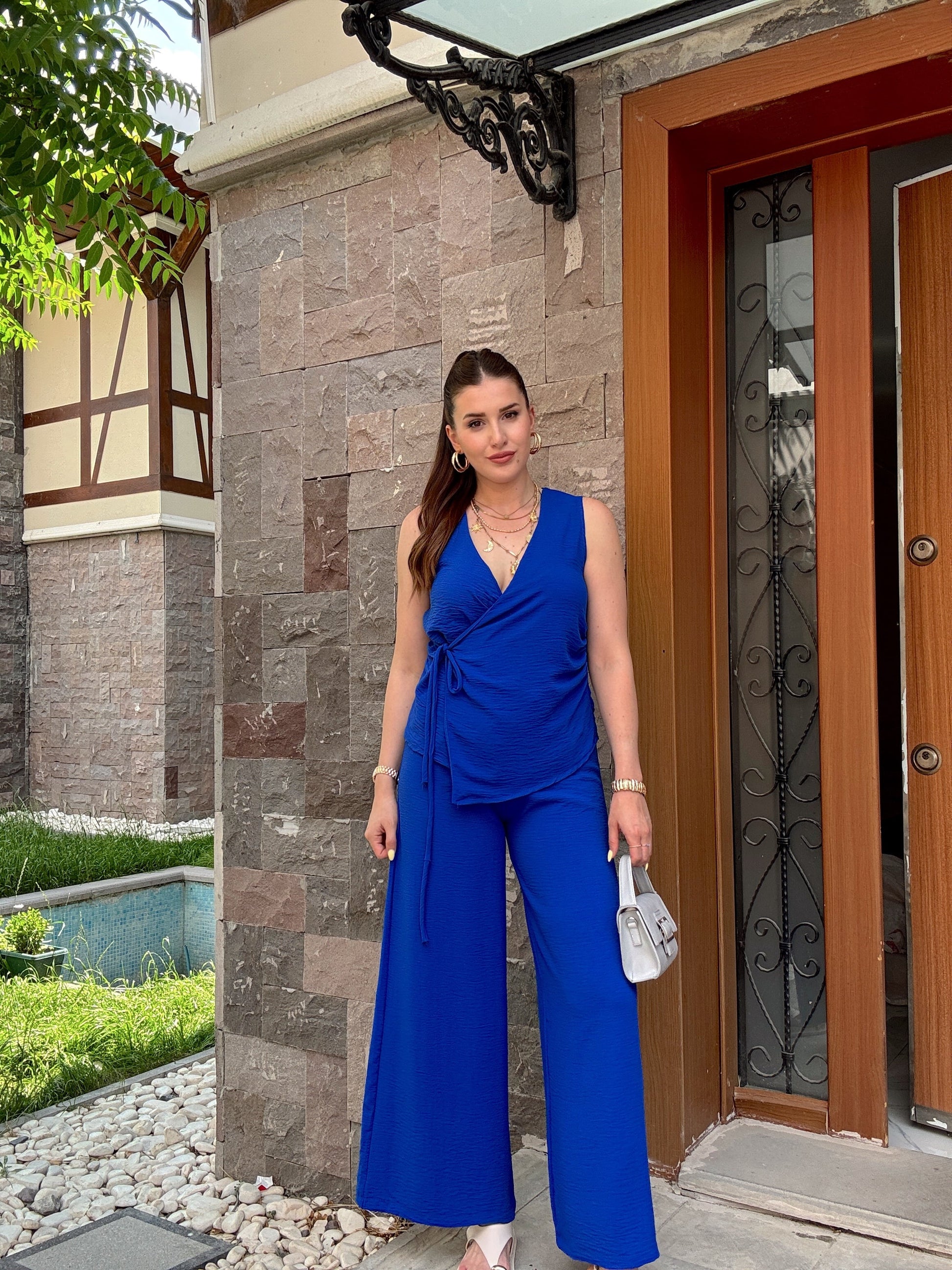 Bel Bağlama Kruvaze Aerobin Takım Saks Mavi