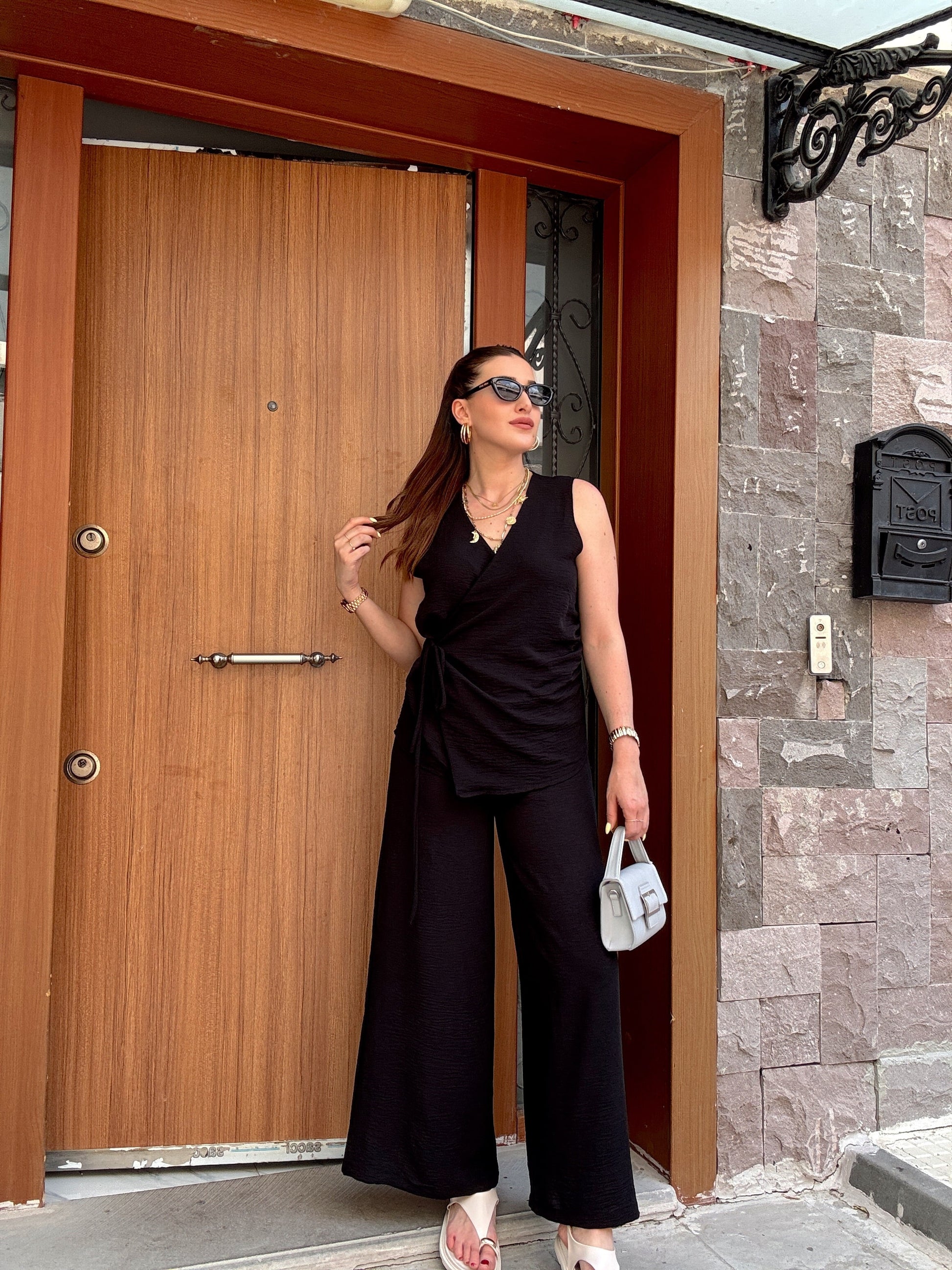 Bel Bağlama Kruvaze Aerobin Takım Siyah