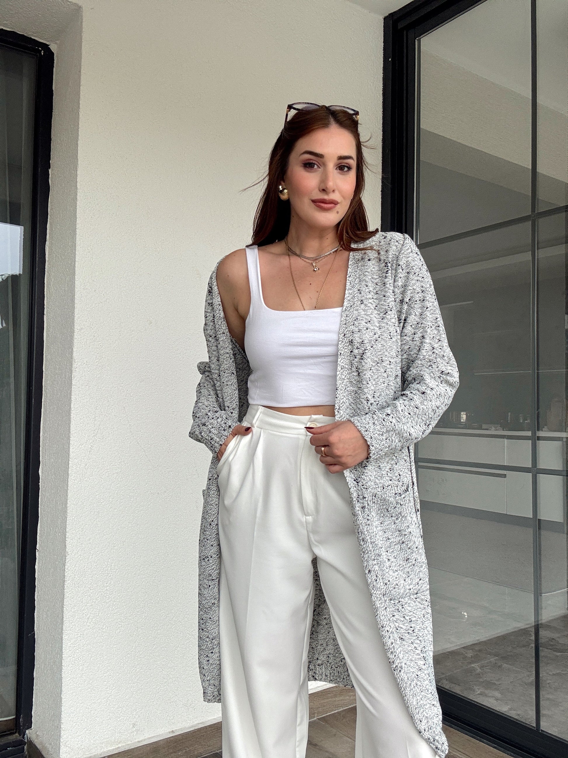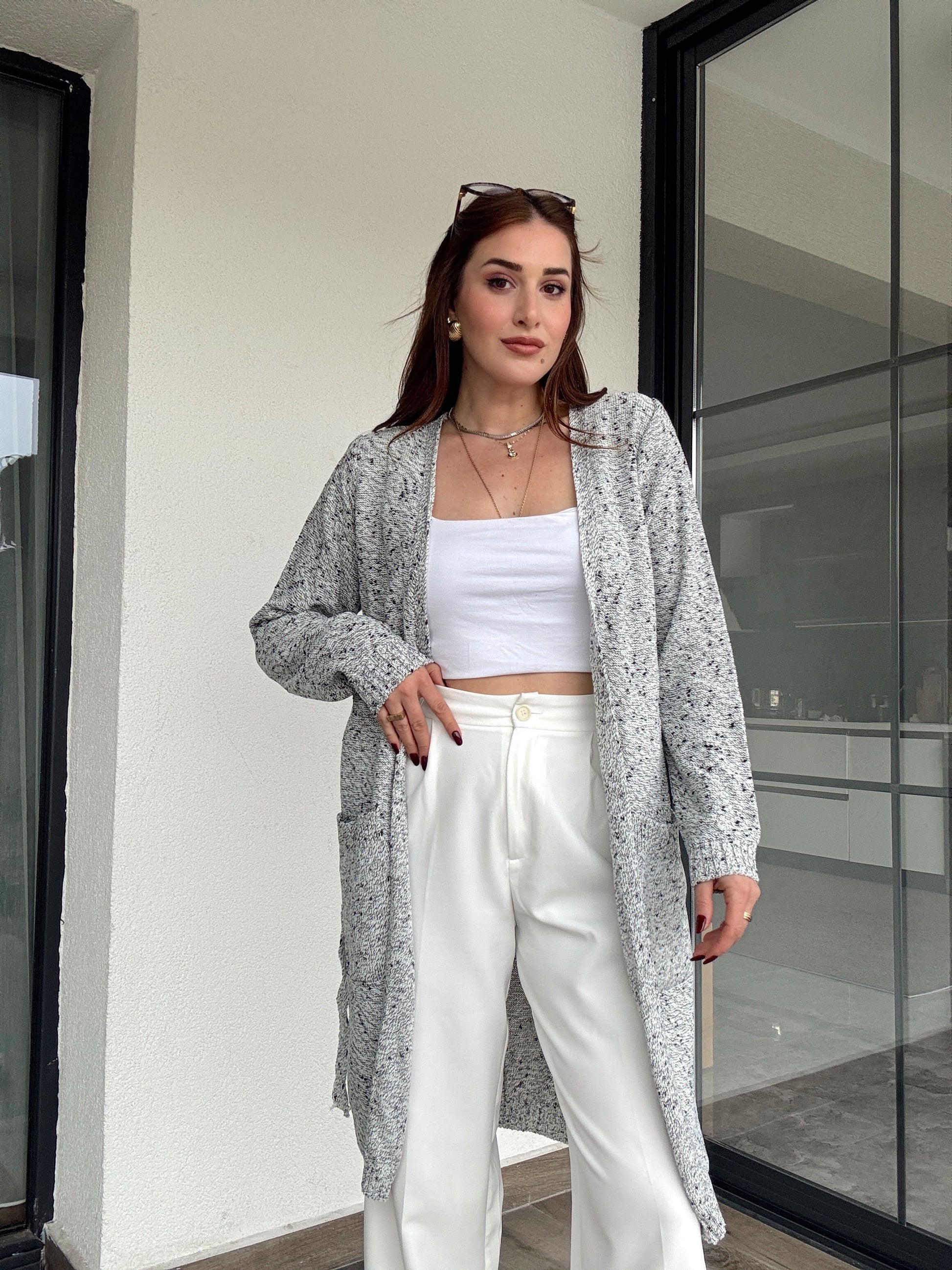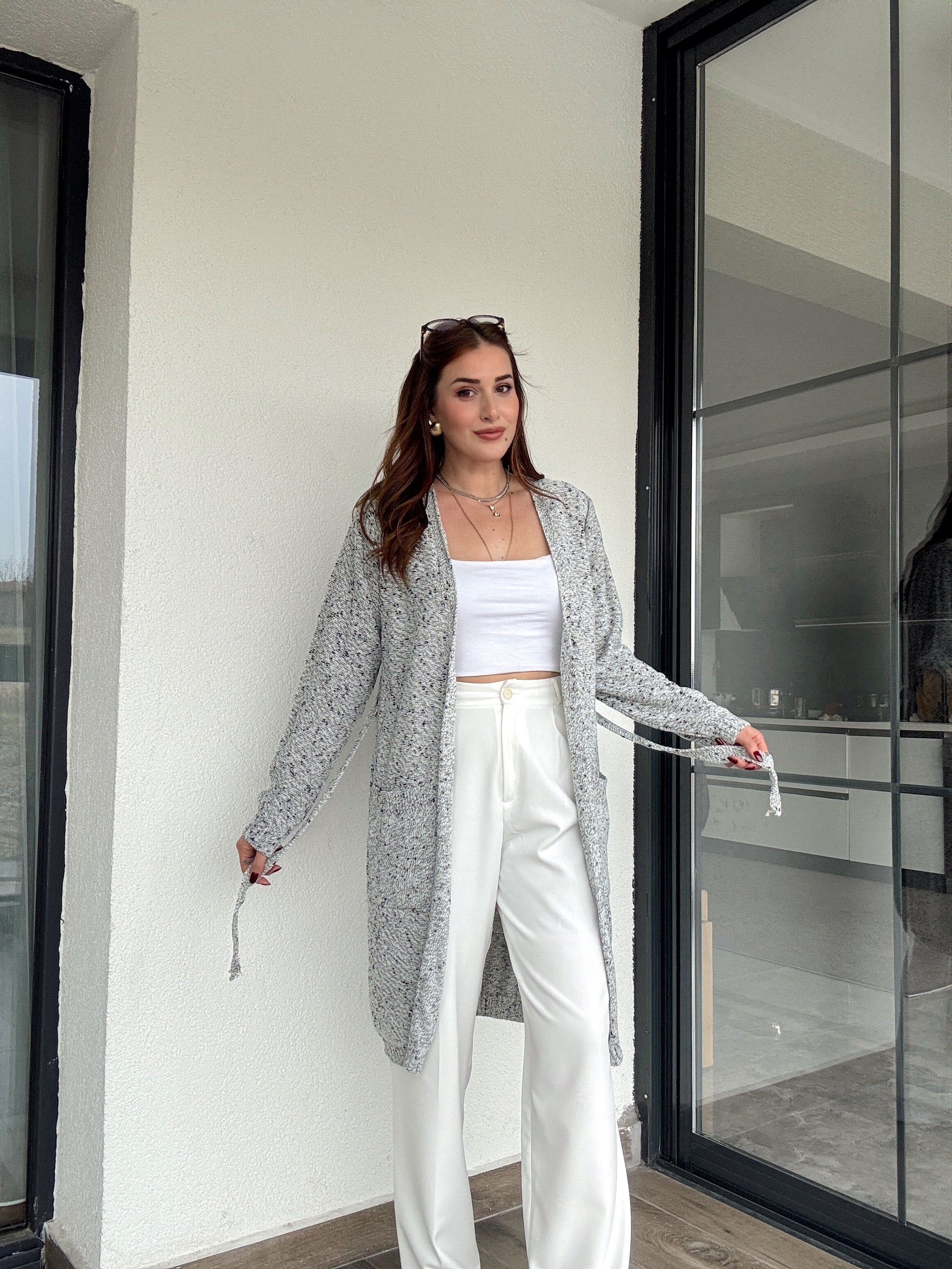 Bel kemer detaylı karışımlı ceket-GRİ