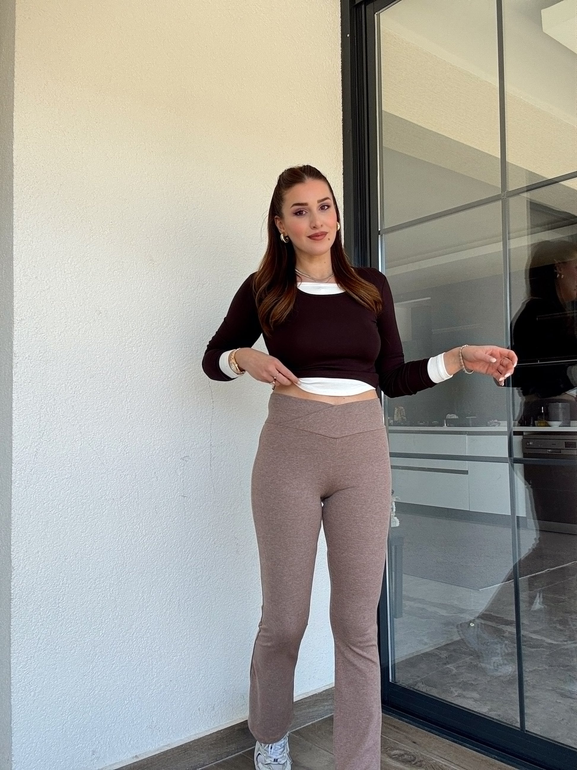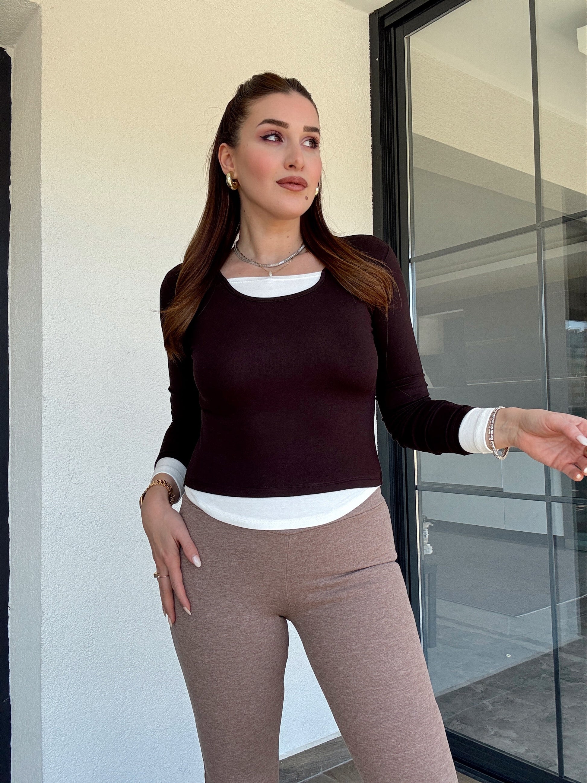 Buzi havuz yaka garnili bluz KAHVERENGİ