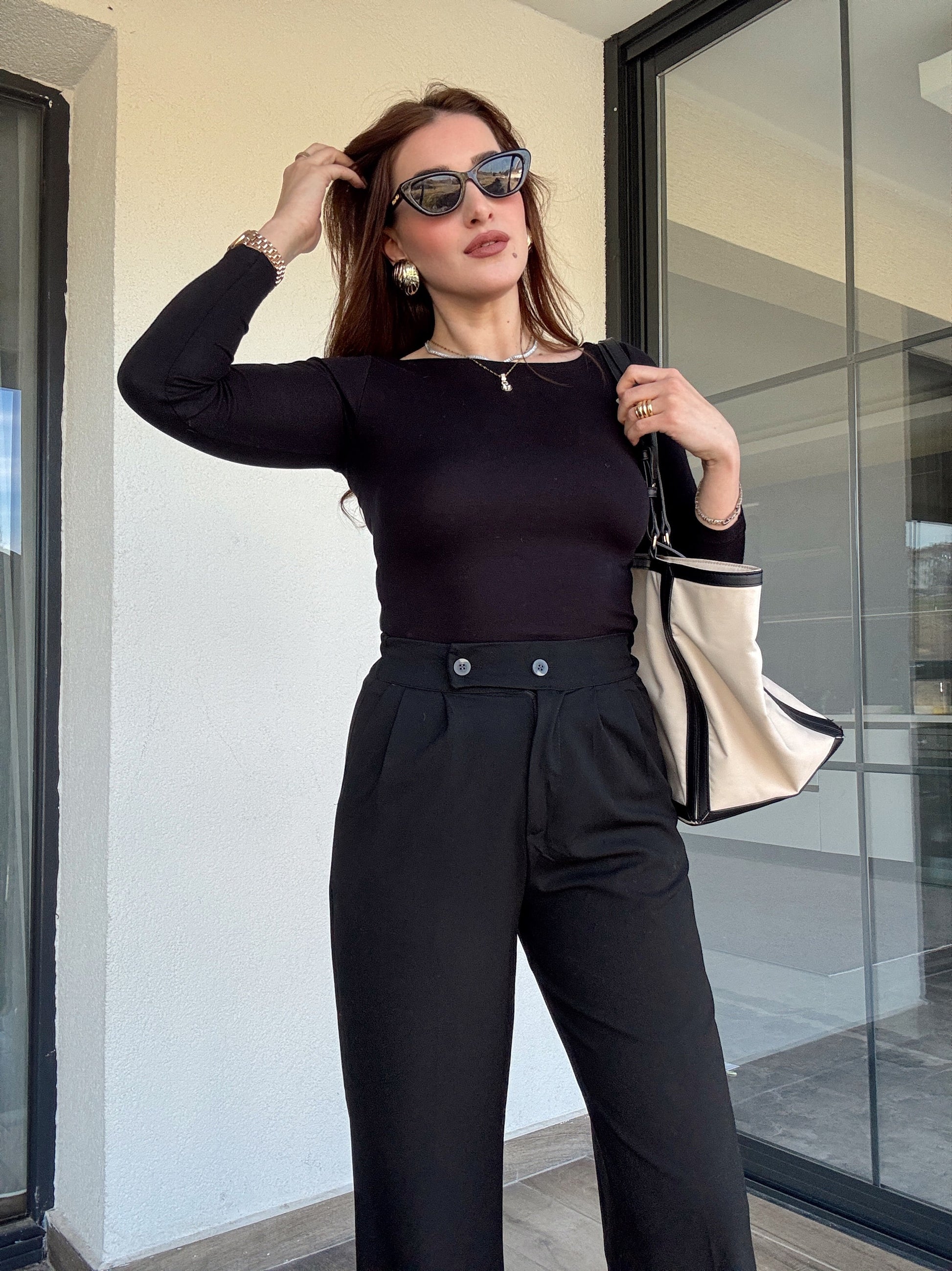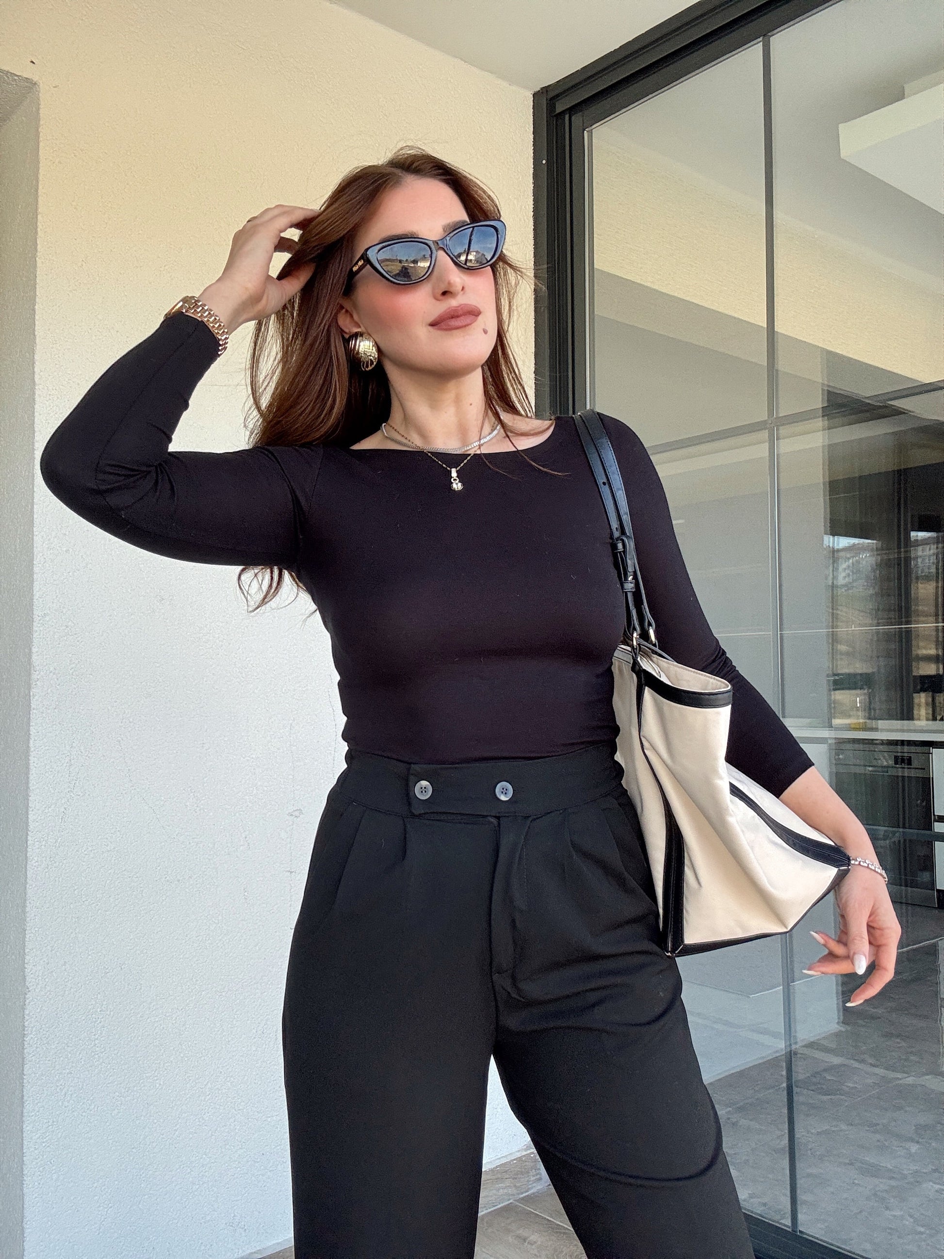 Buzi kayık yaka bluz SİYAH