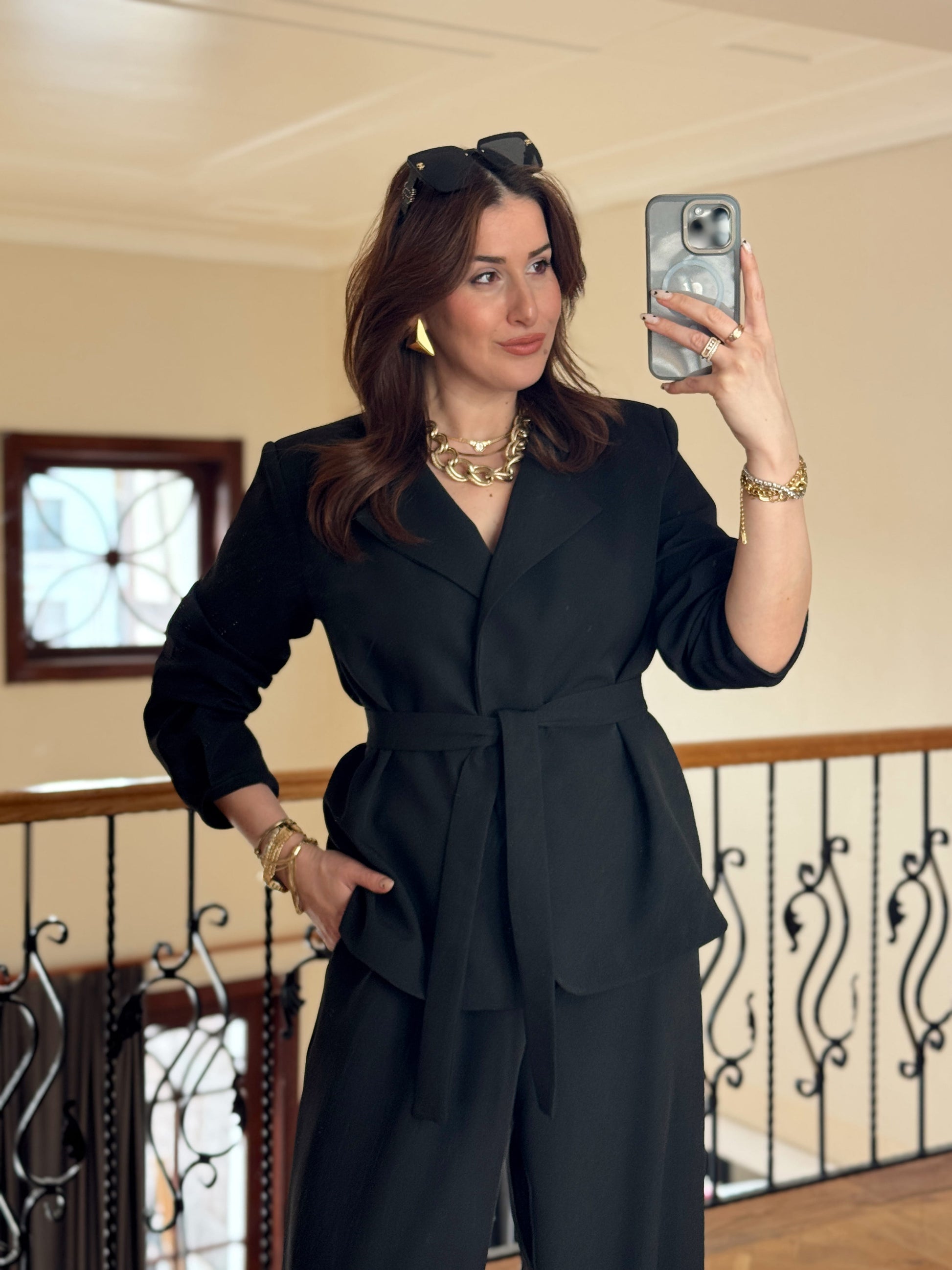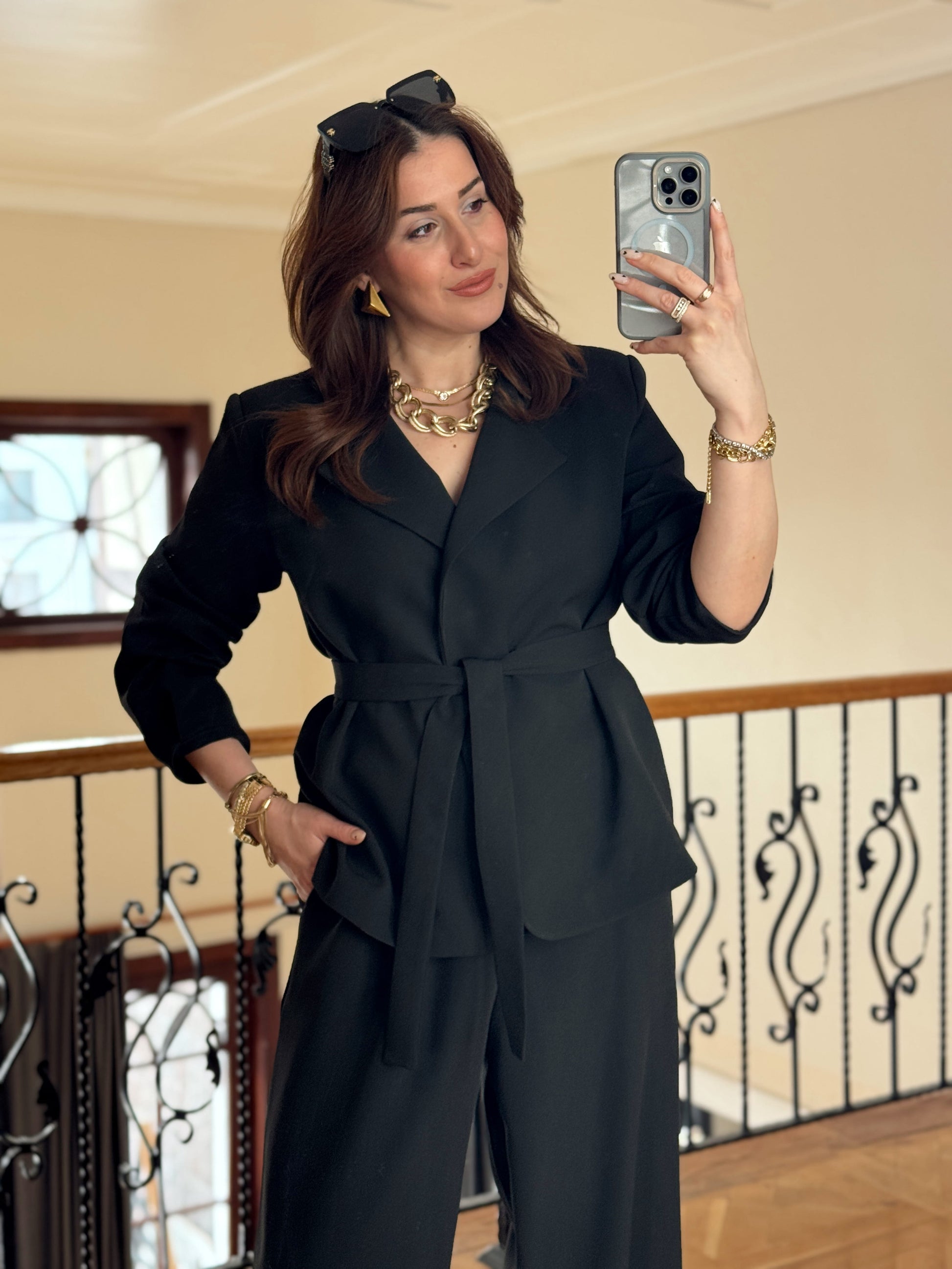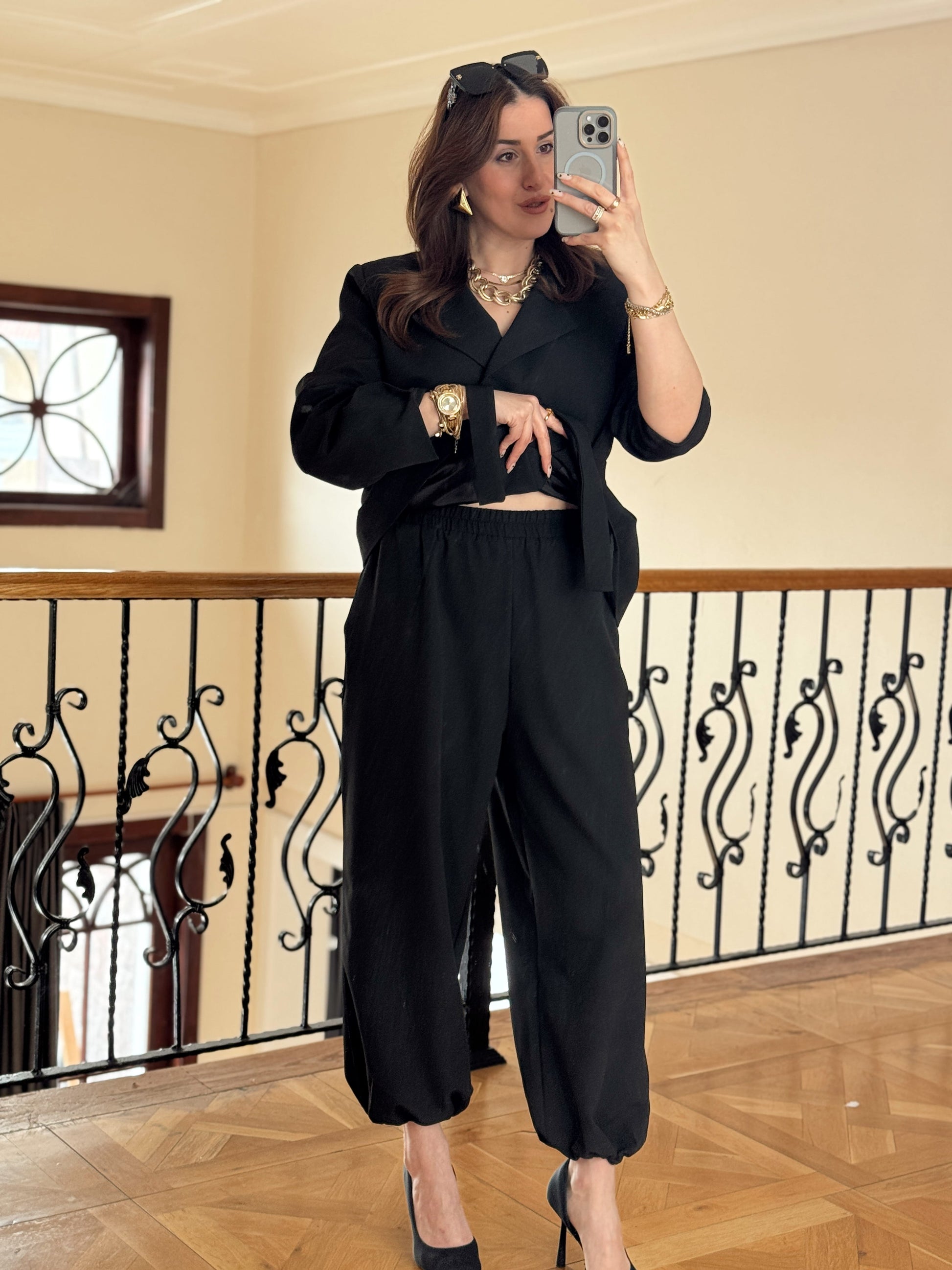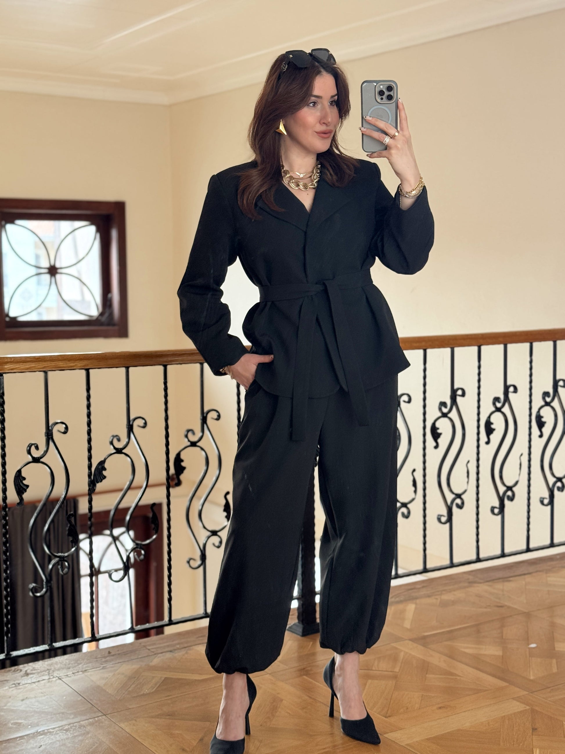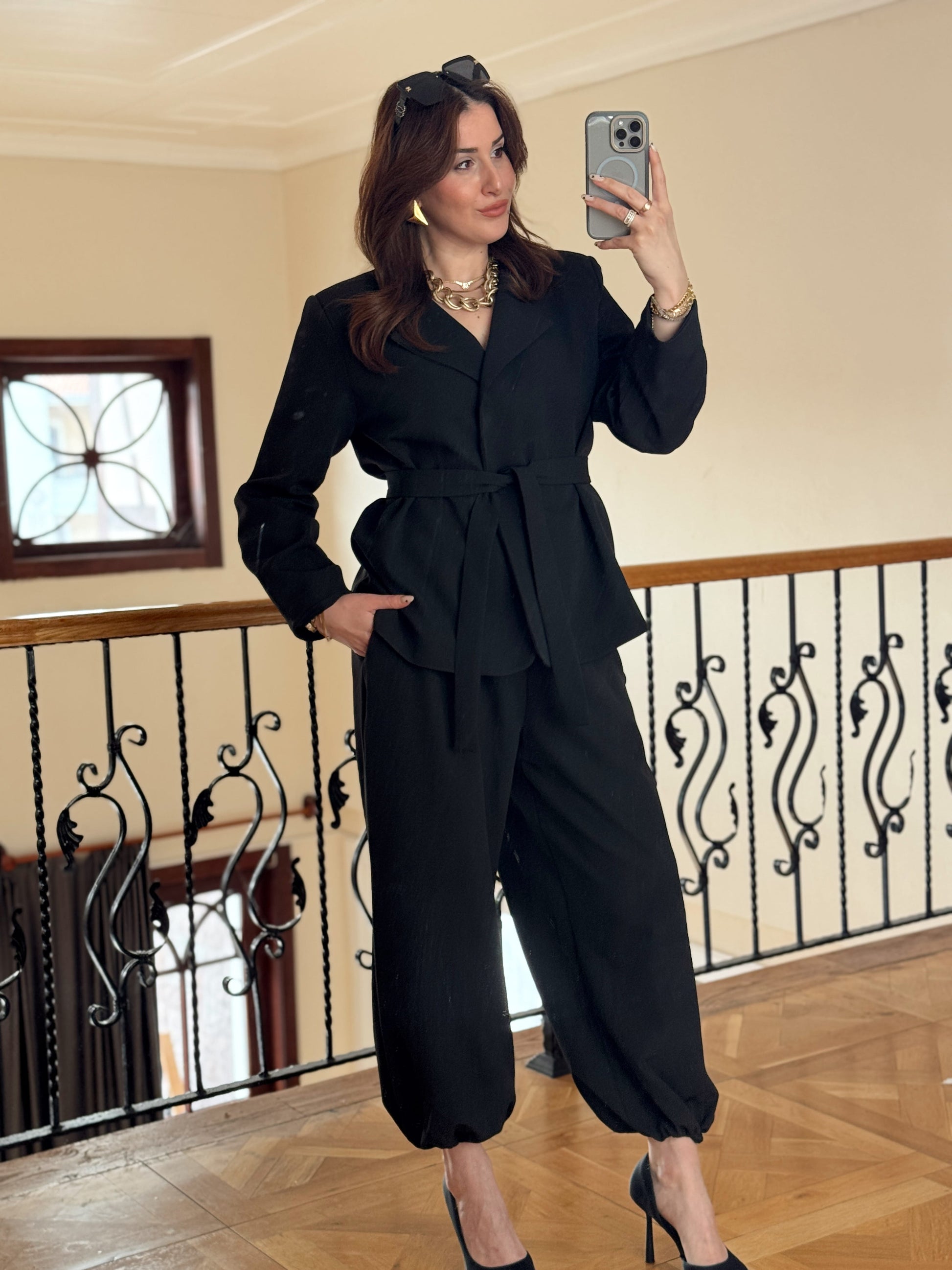 Ceket Kuşaklı Şalvar Takım-SİYAH