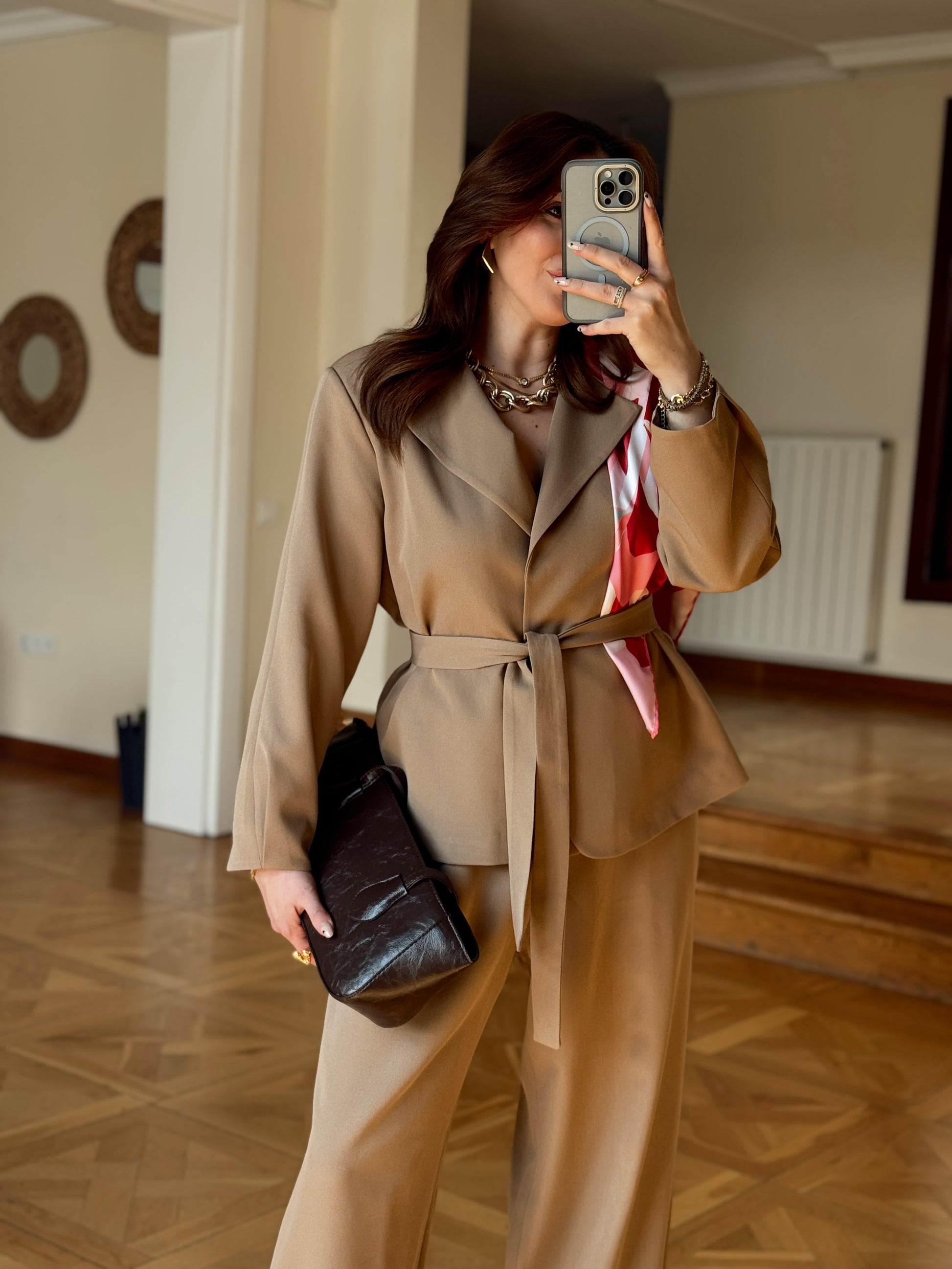 Ceket Kuşaklı Şalvar Takım-VİZON