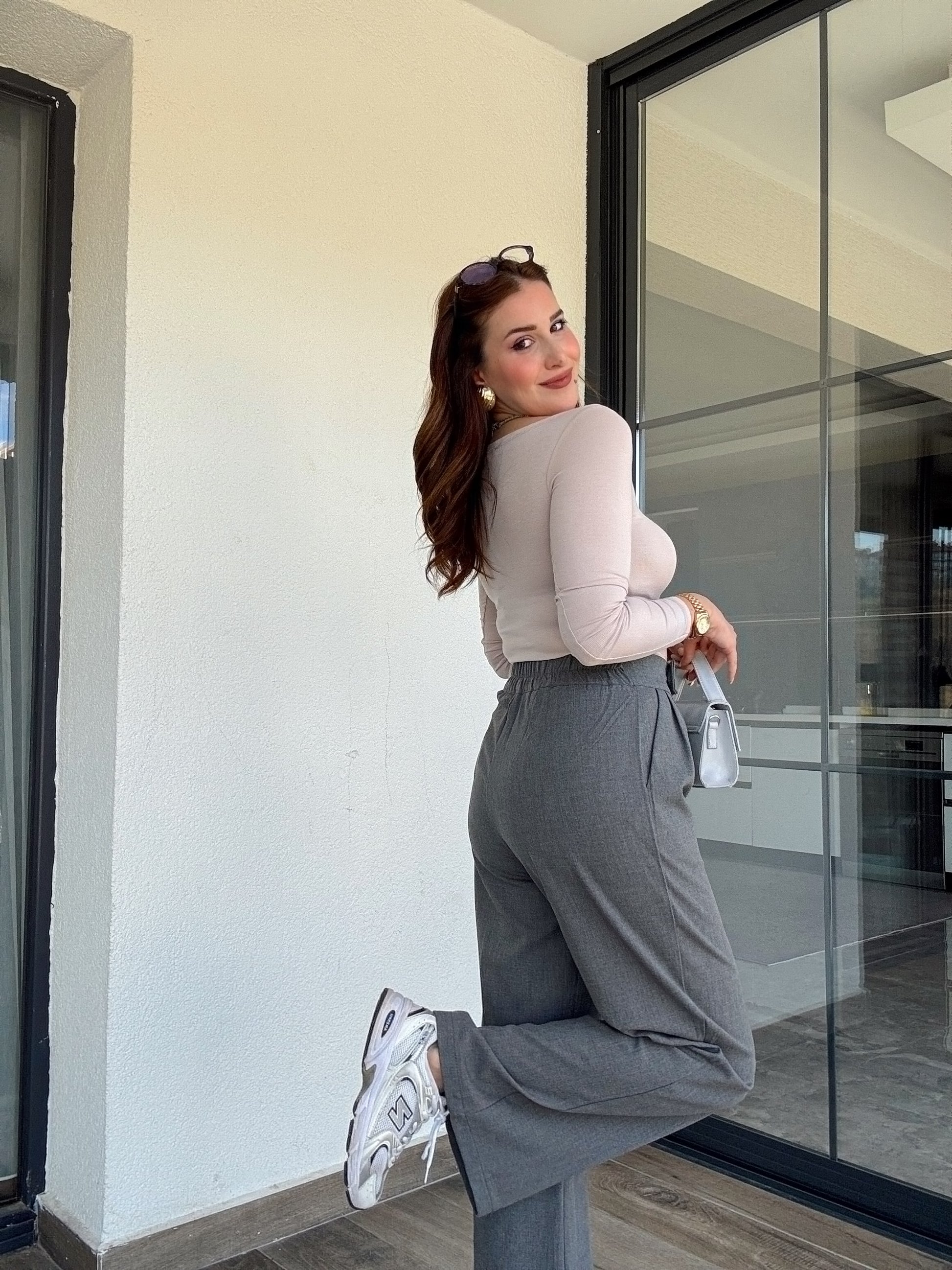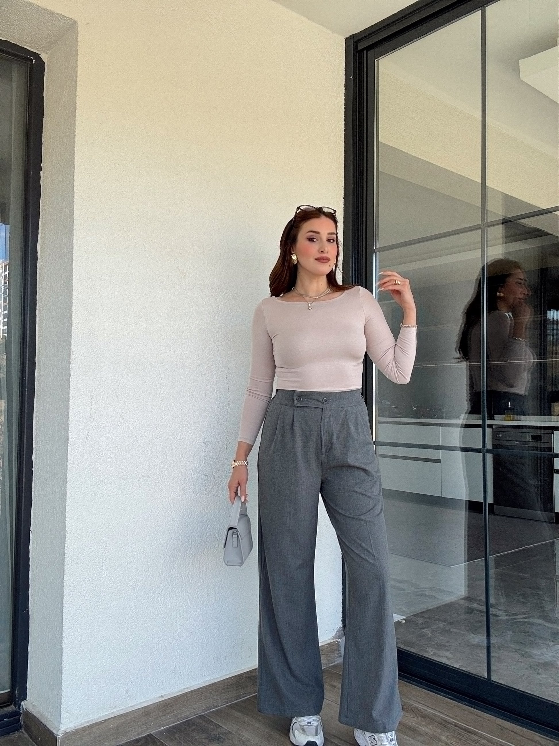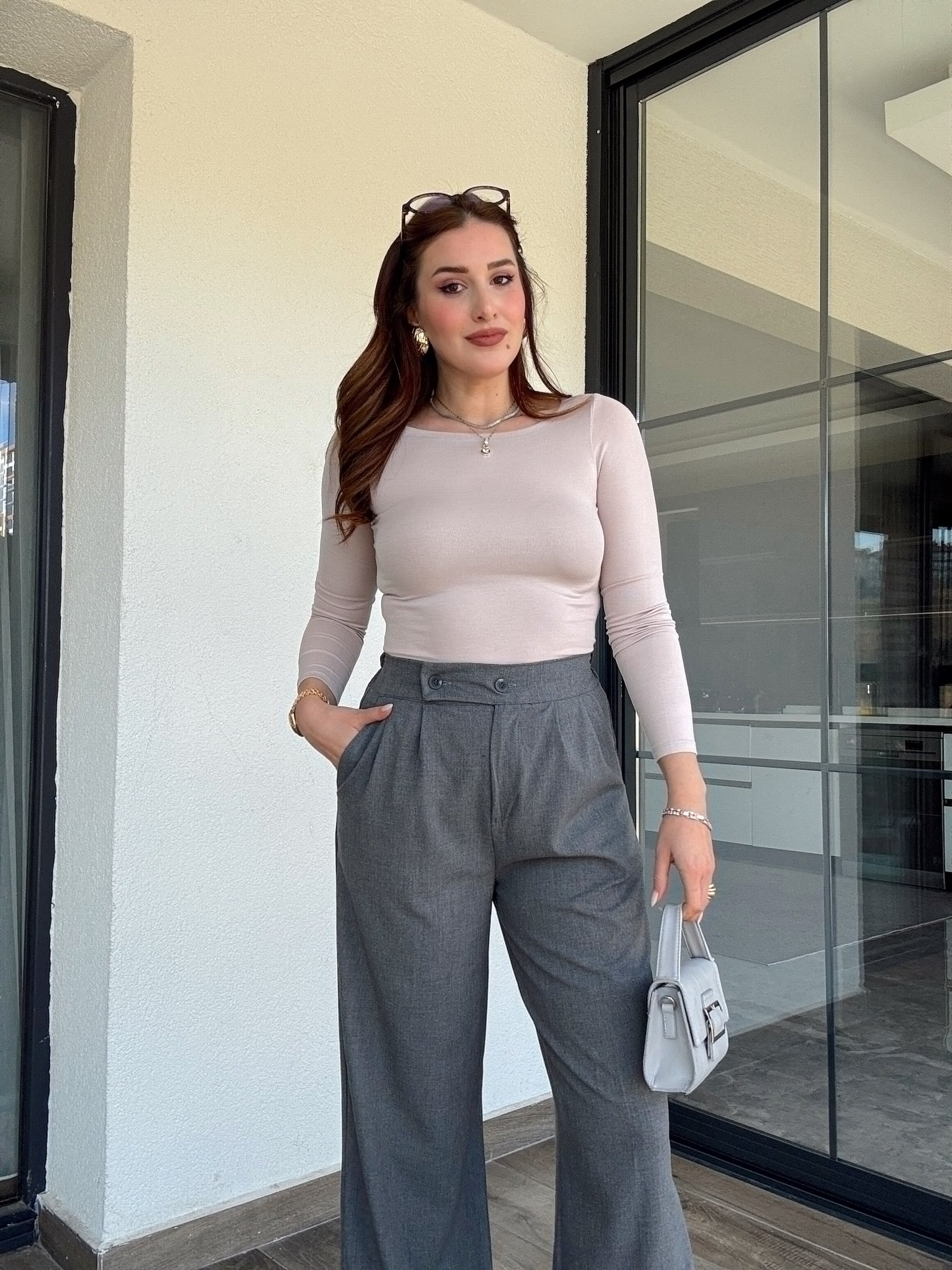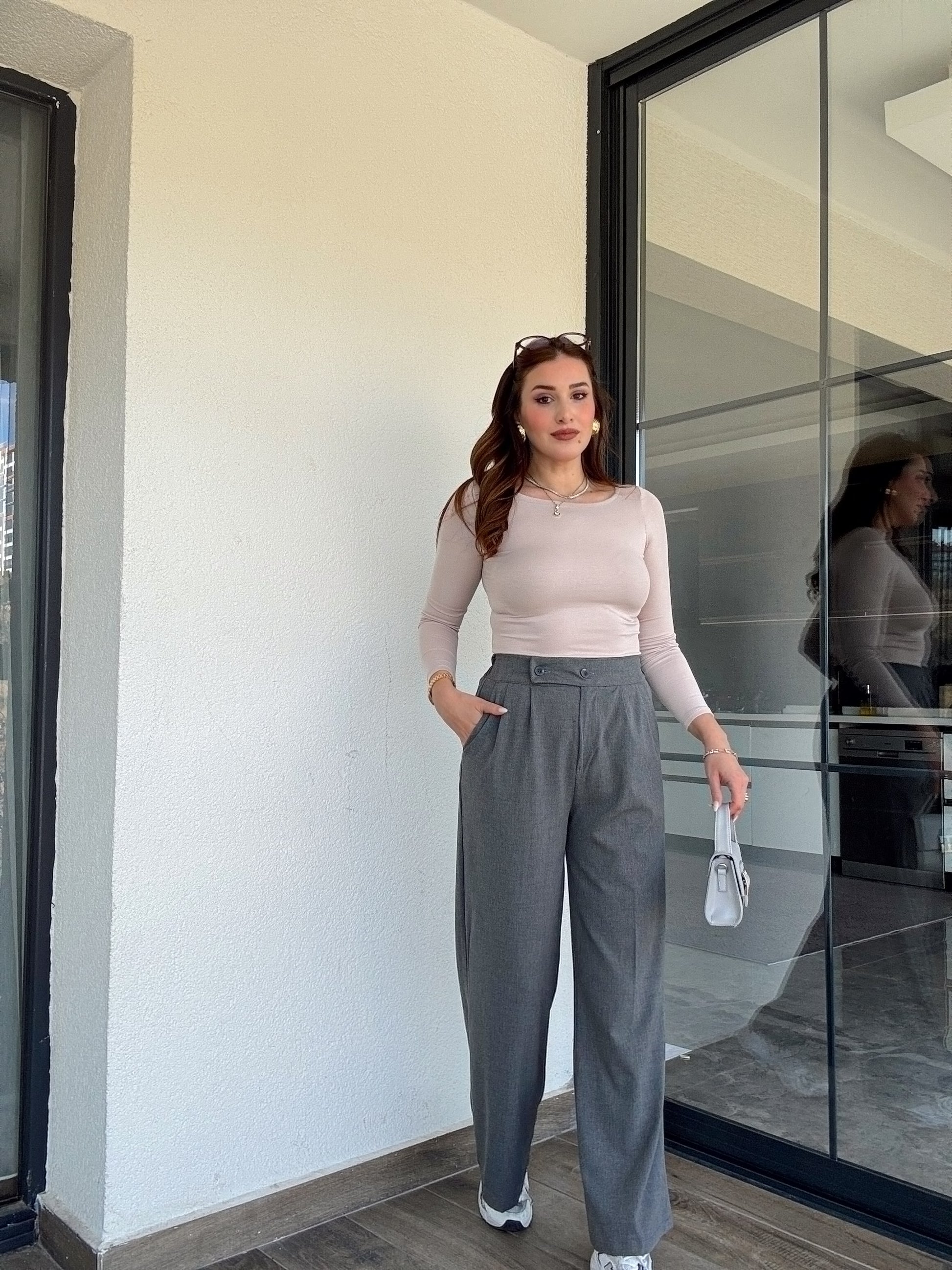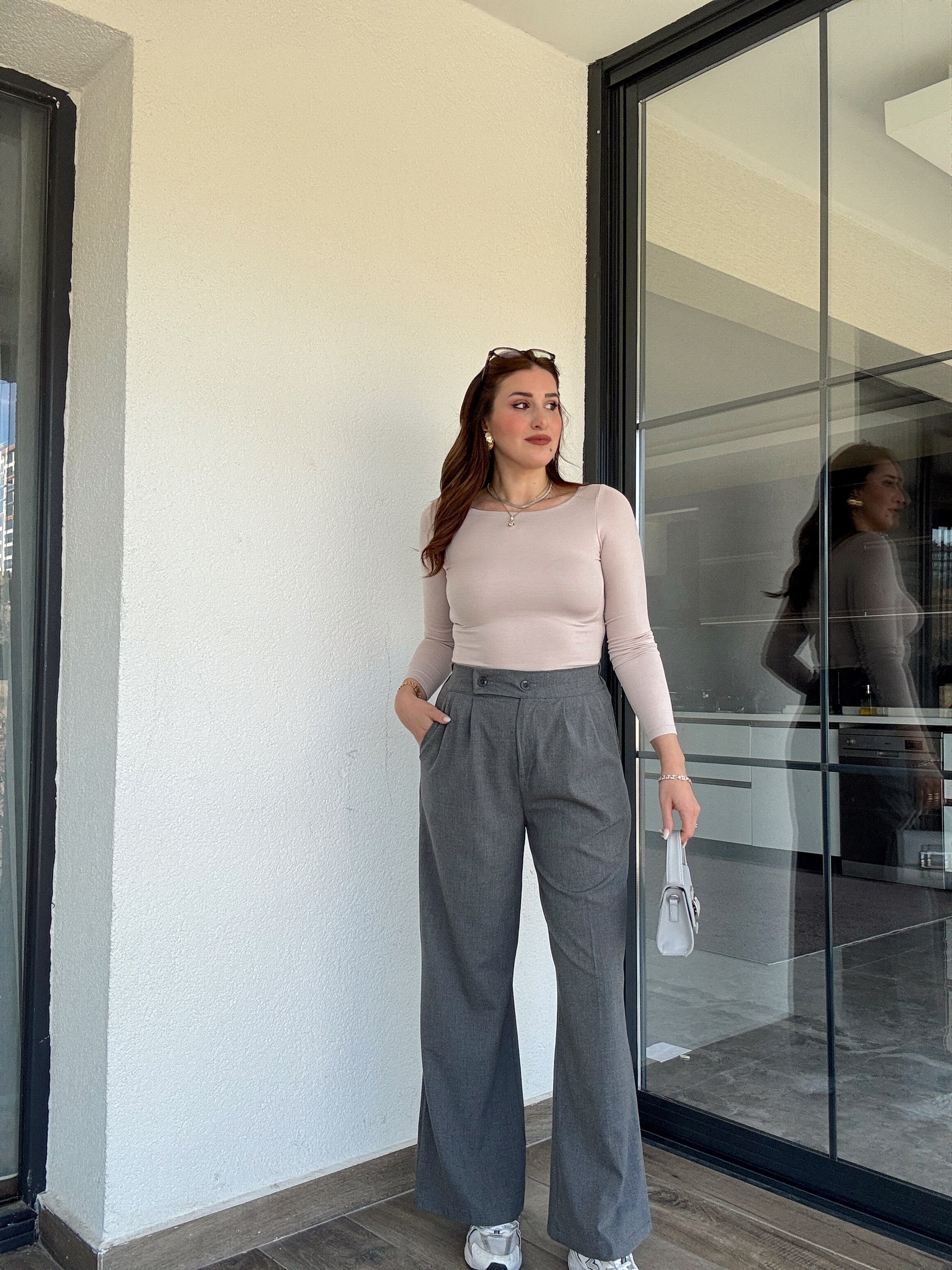 Çift düğme palazzo pantolon-GRİ