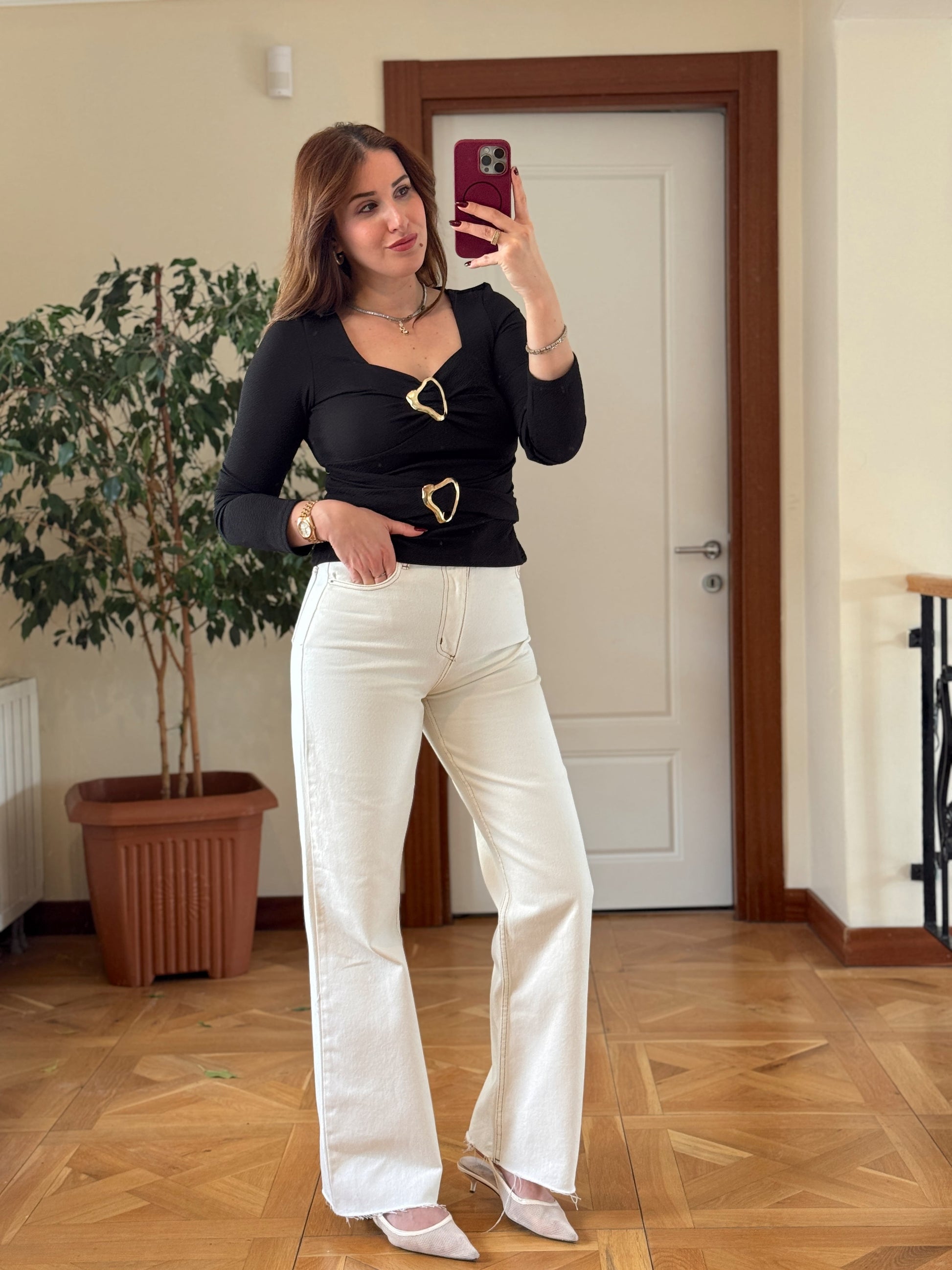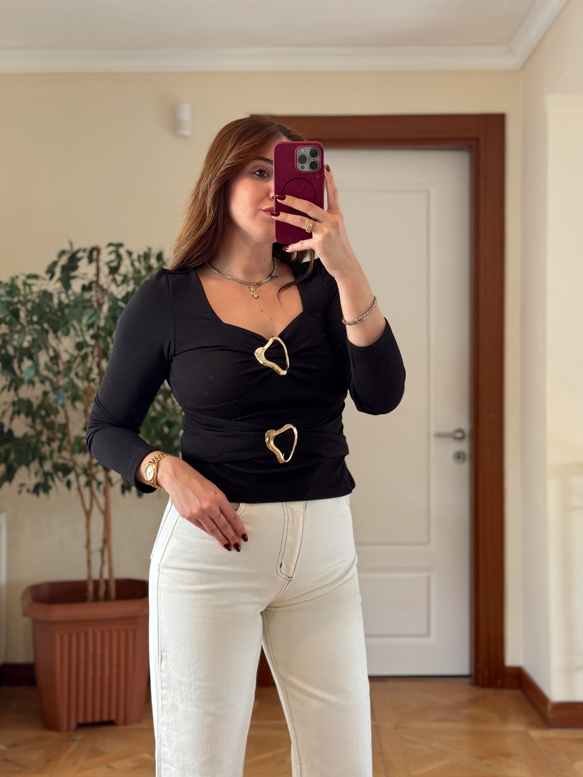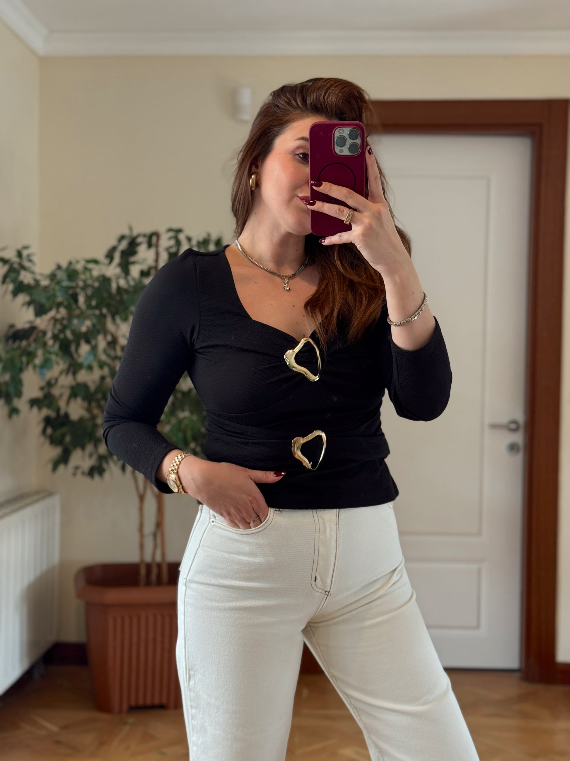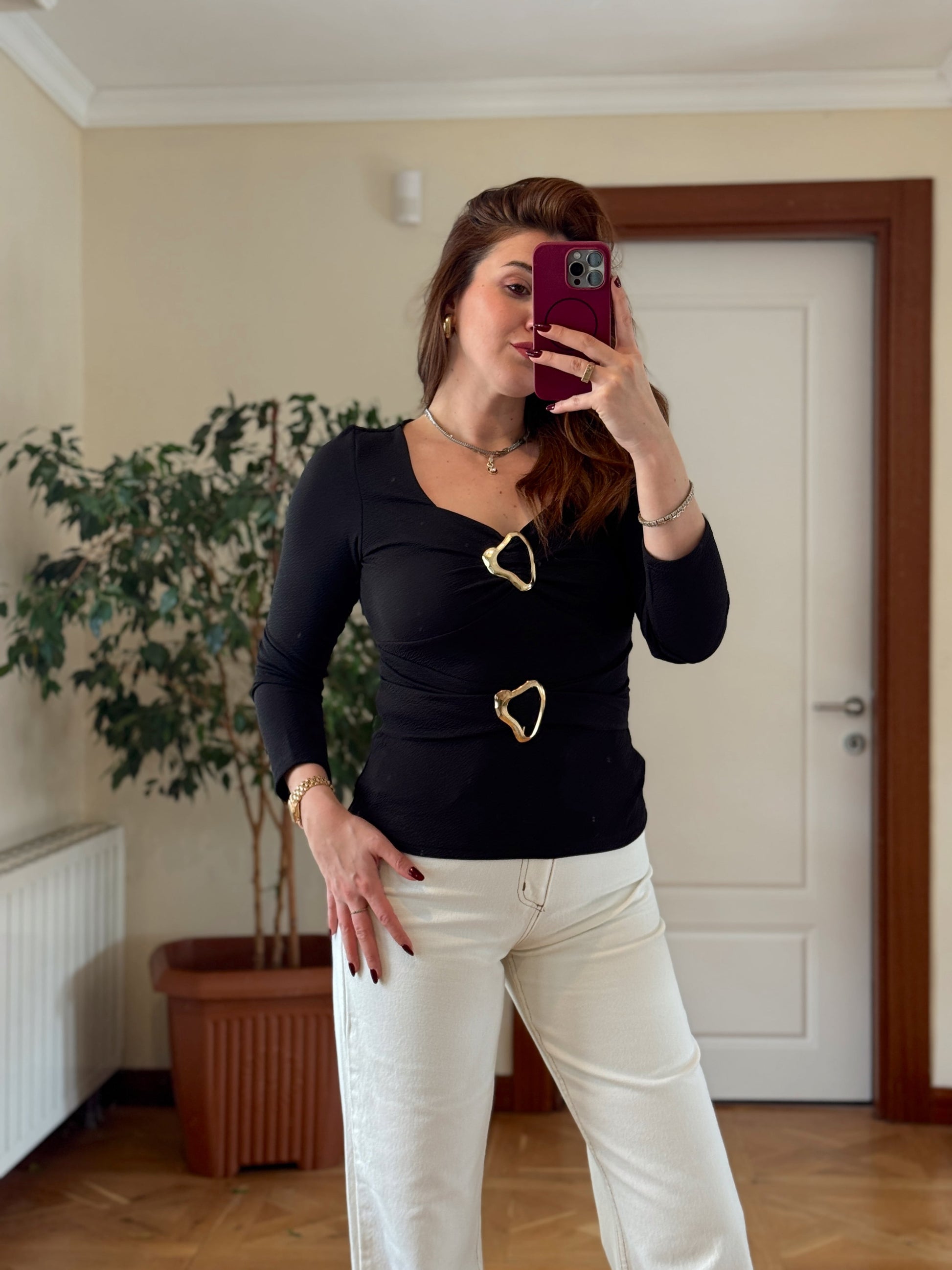 Çift tokalı bluz-SİYAH