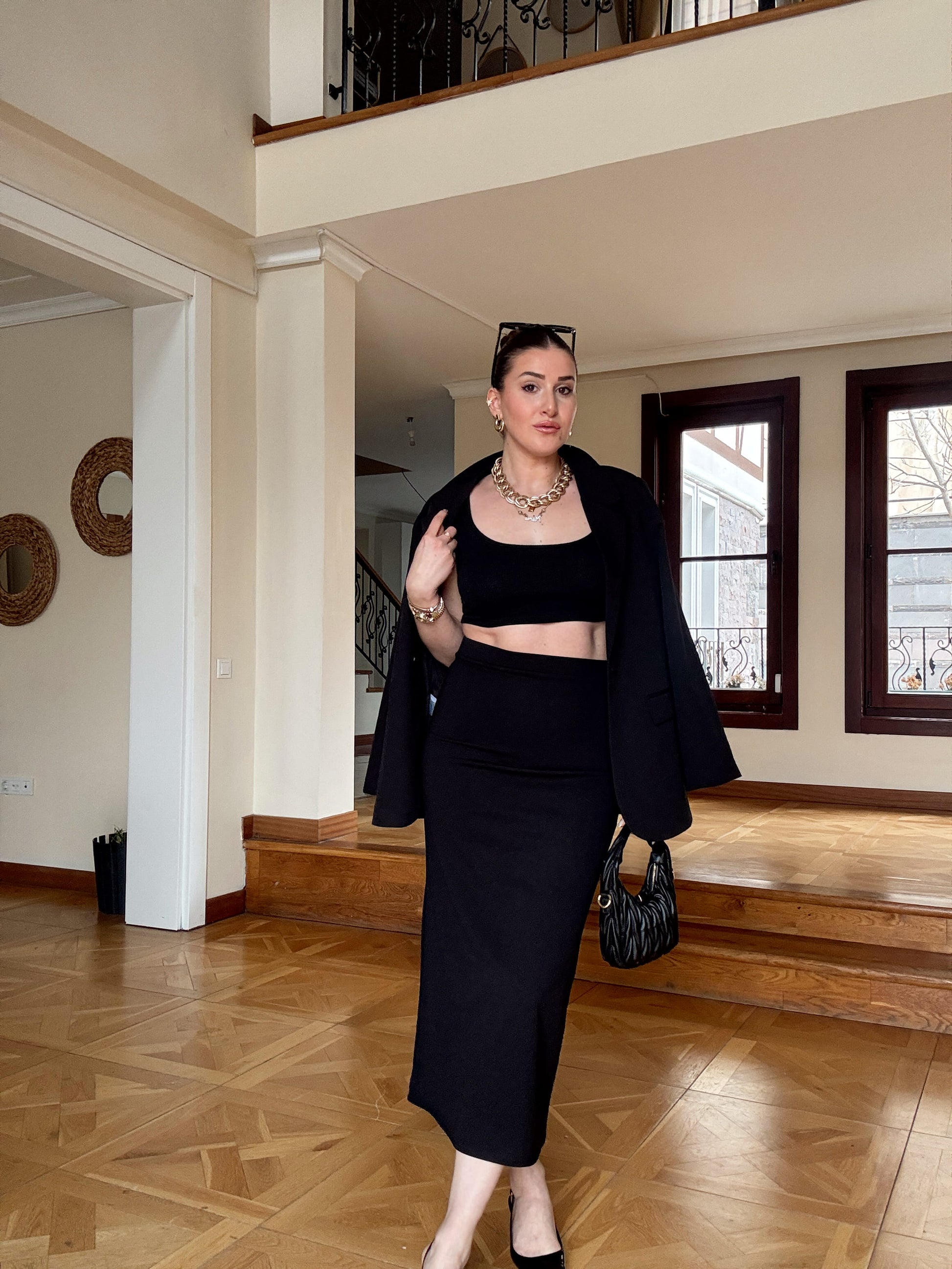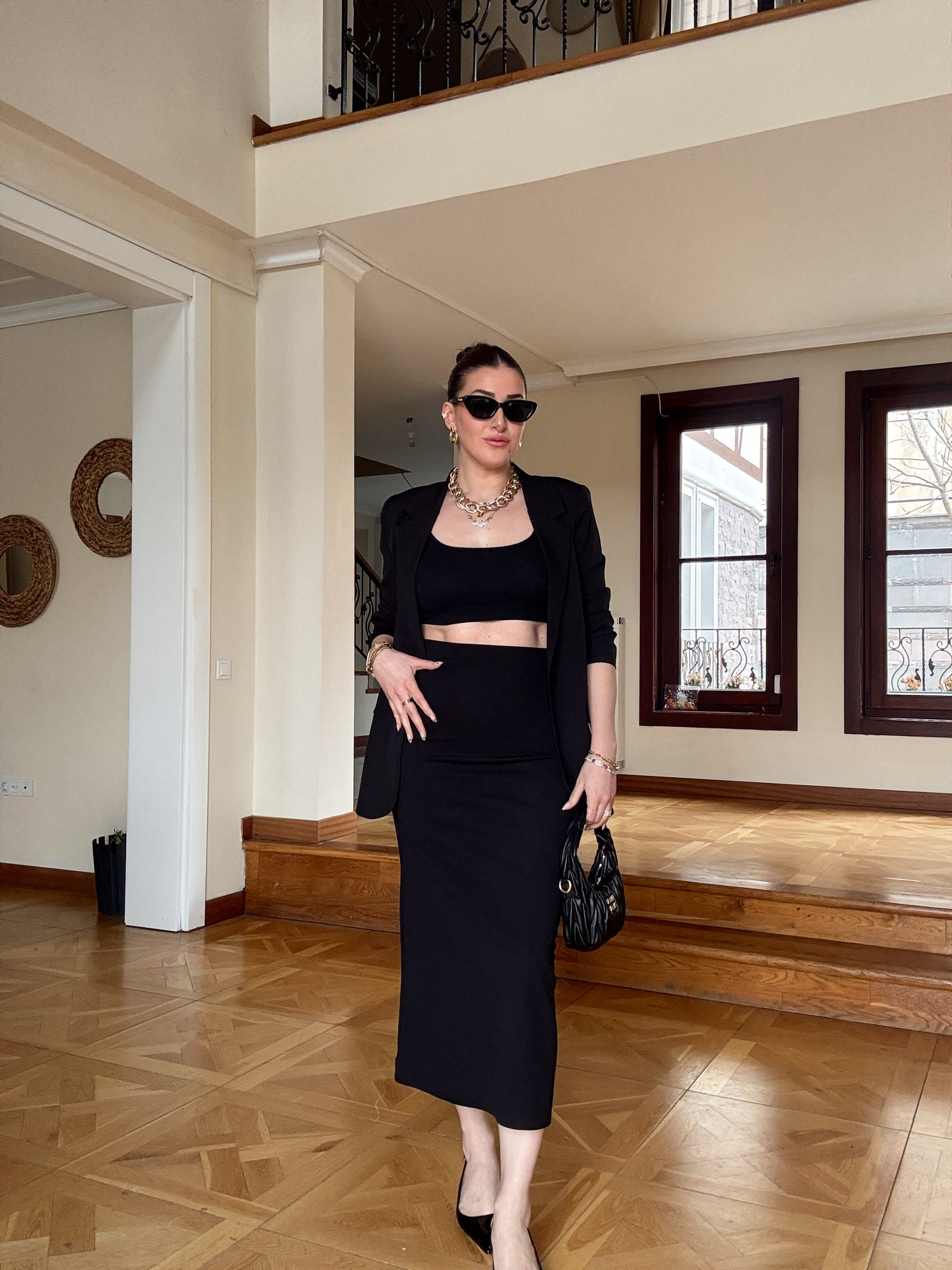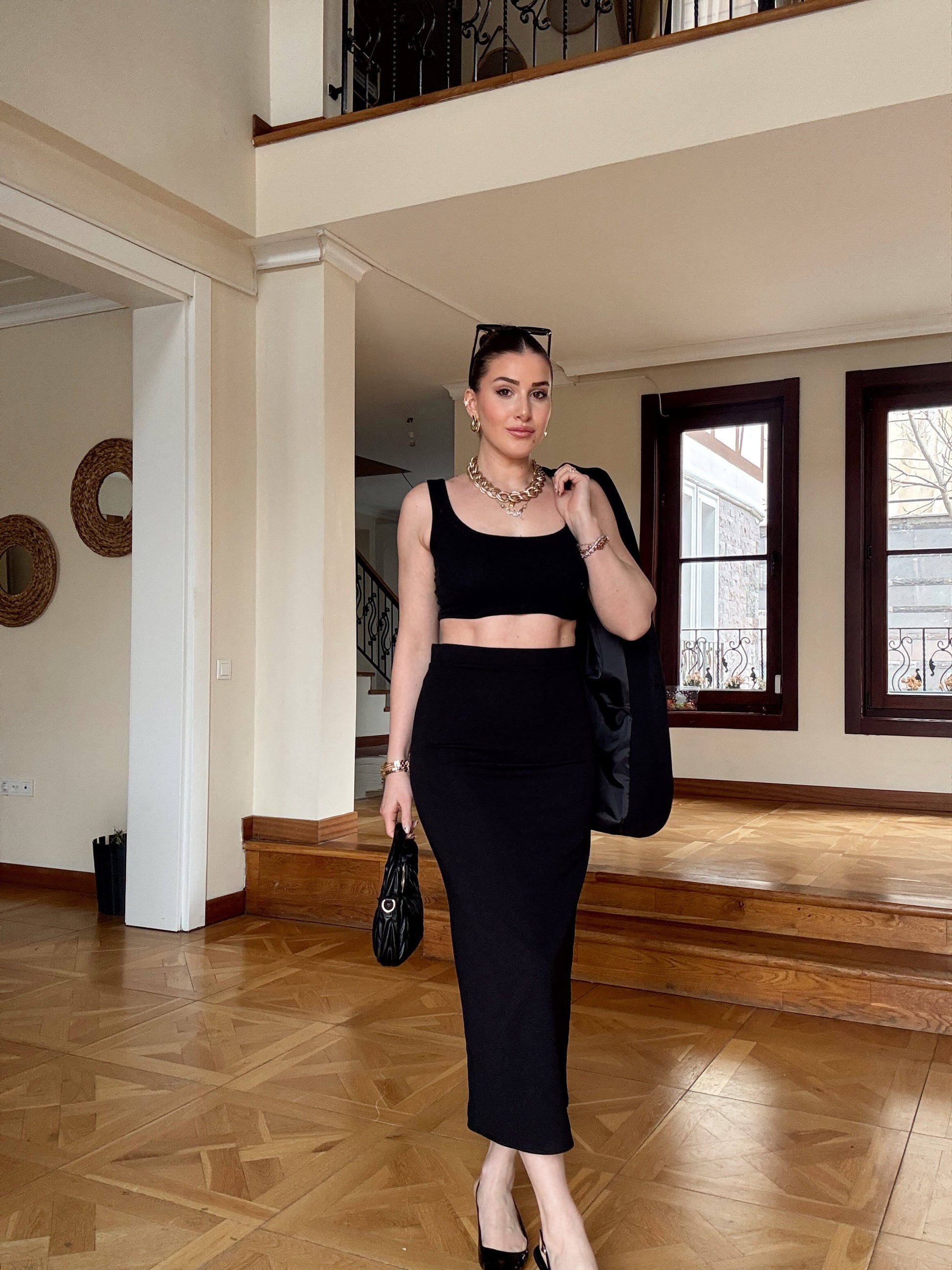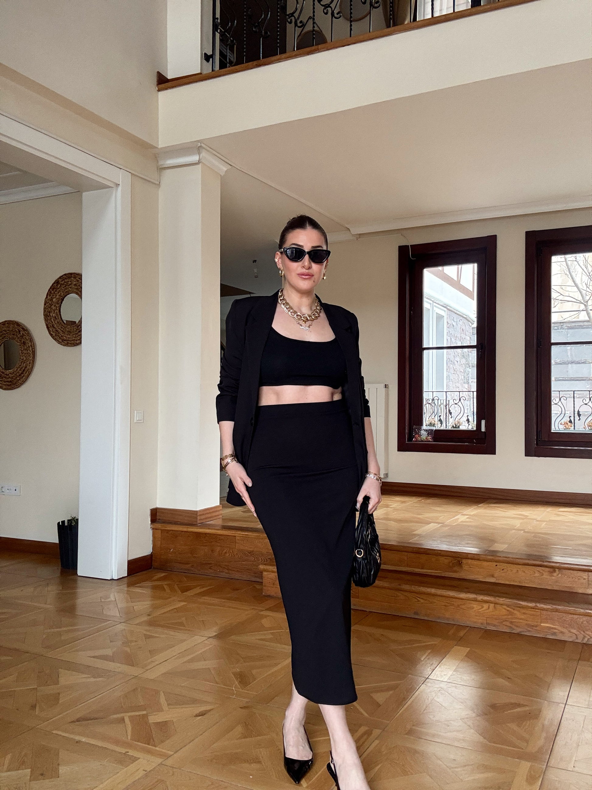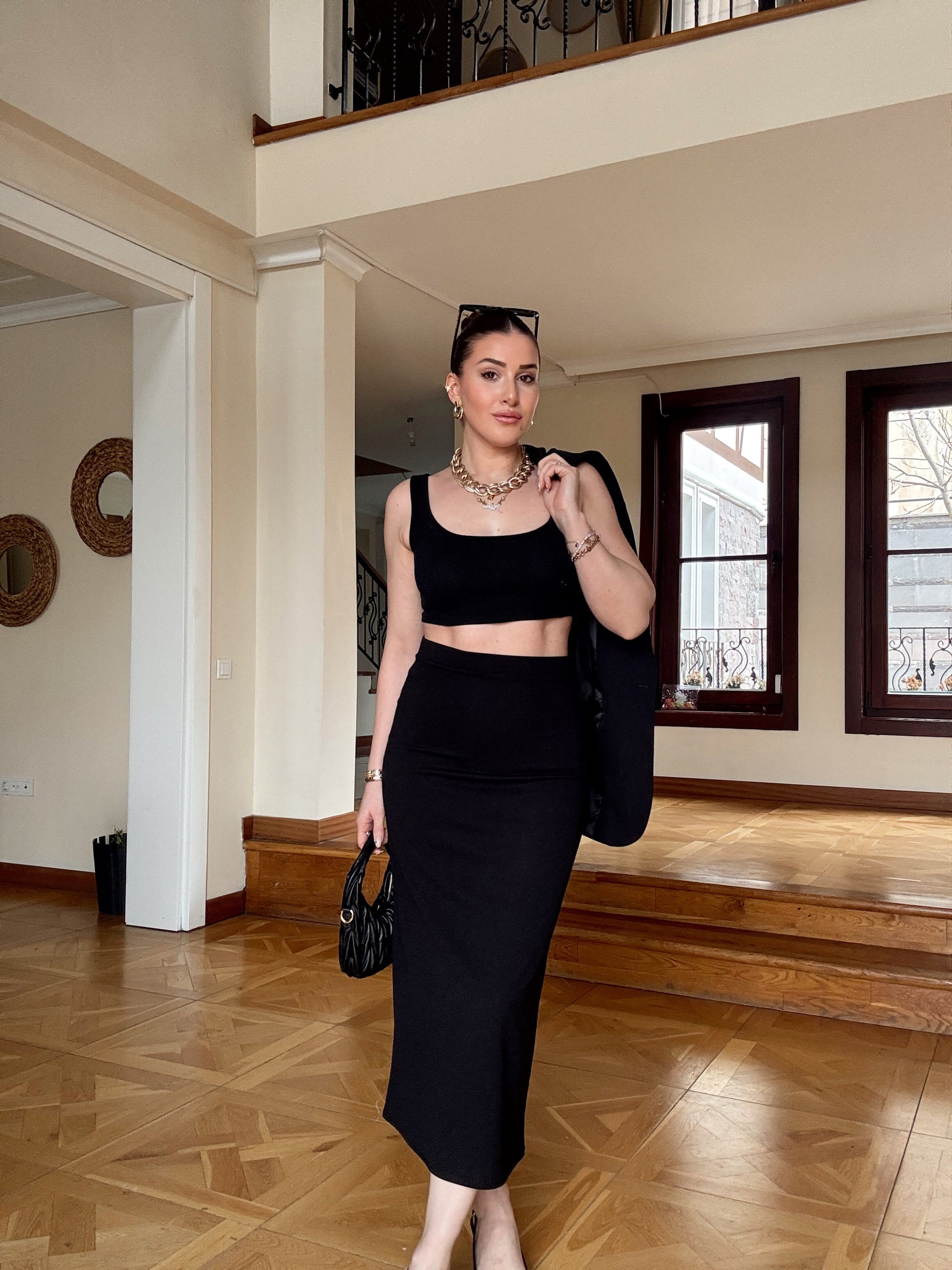 Dalgıç kumaş kalem Etek-SİYAH
