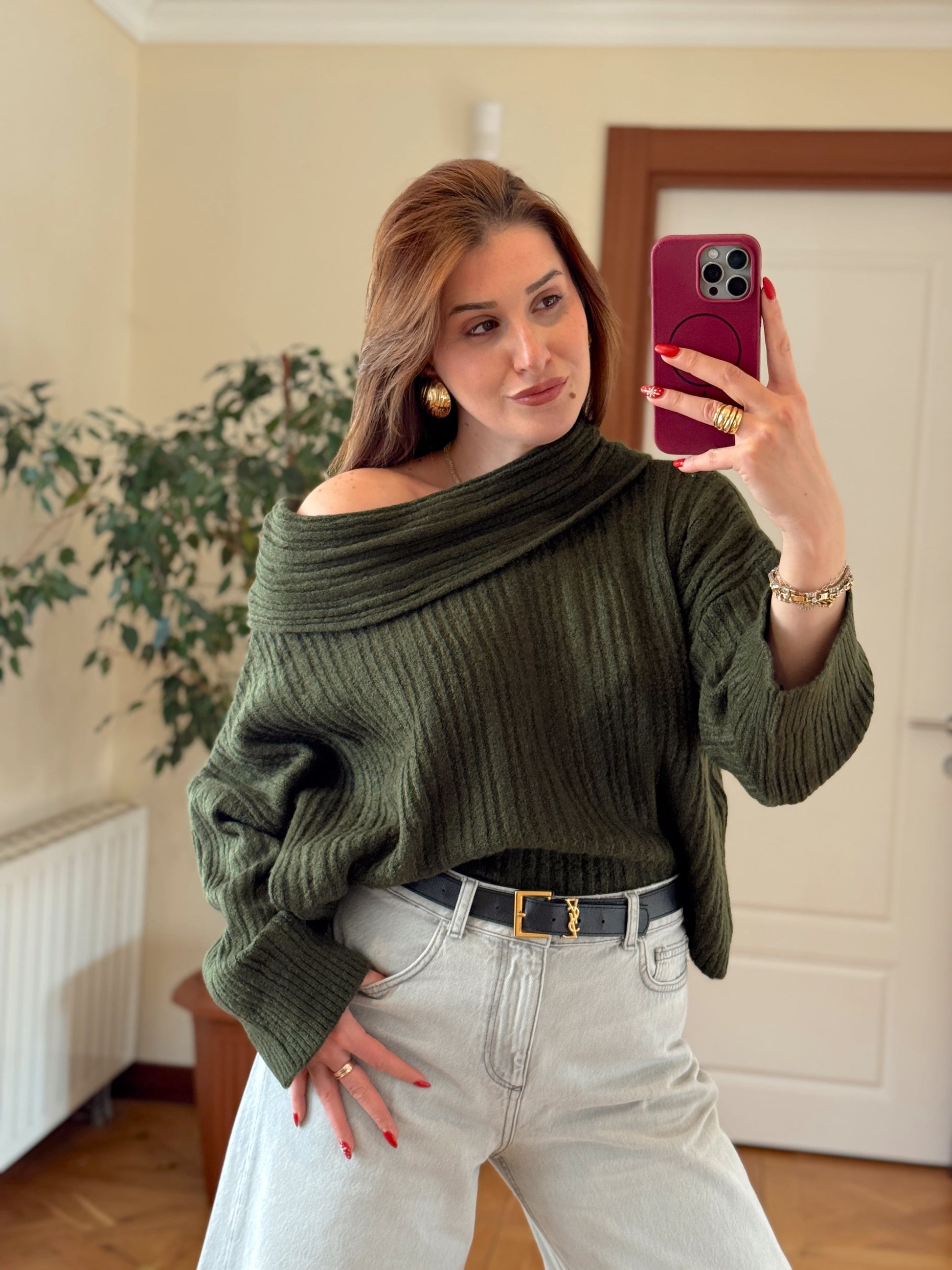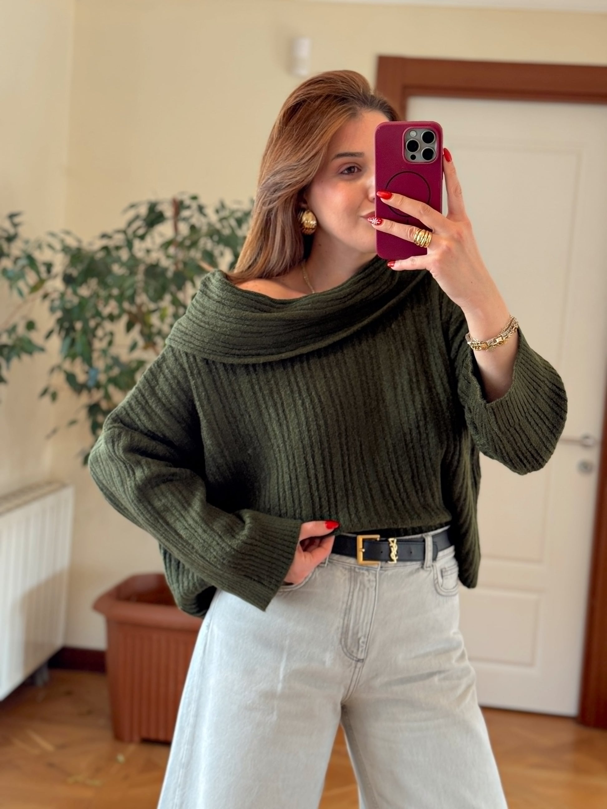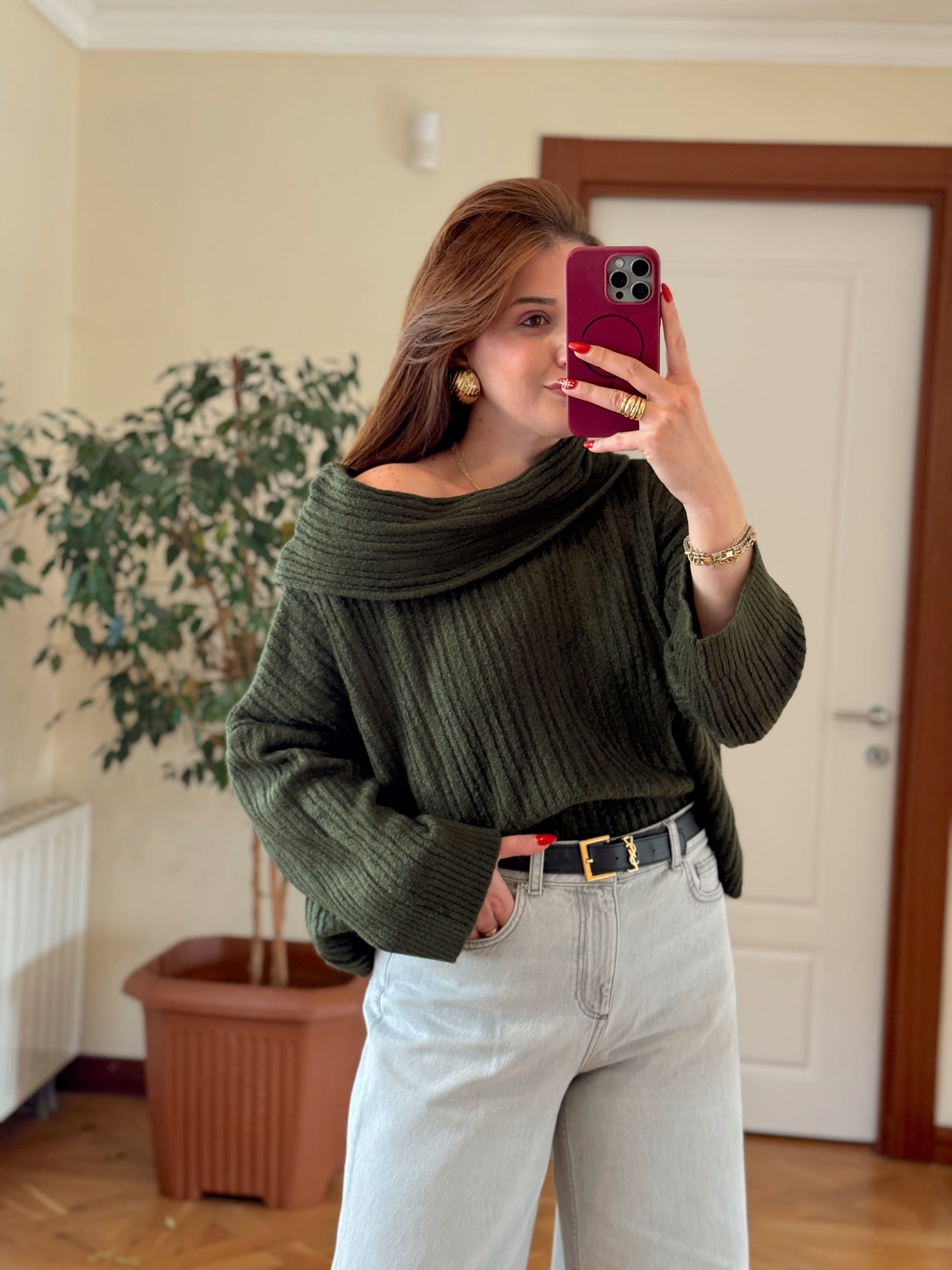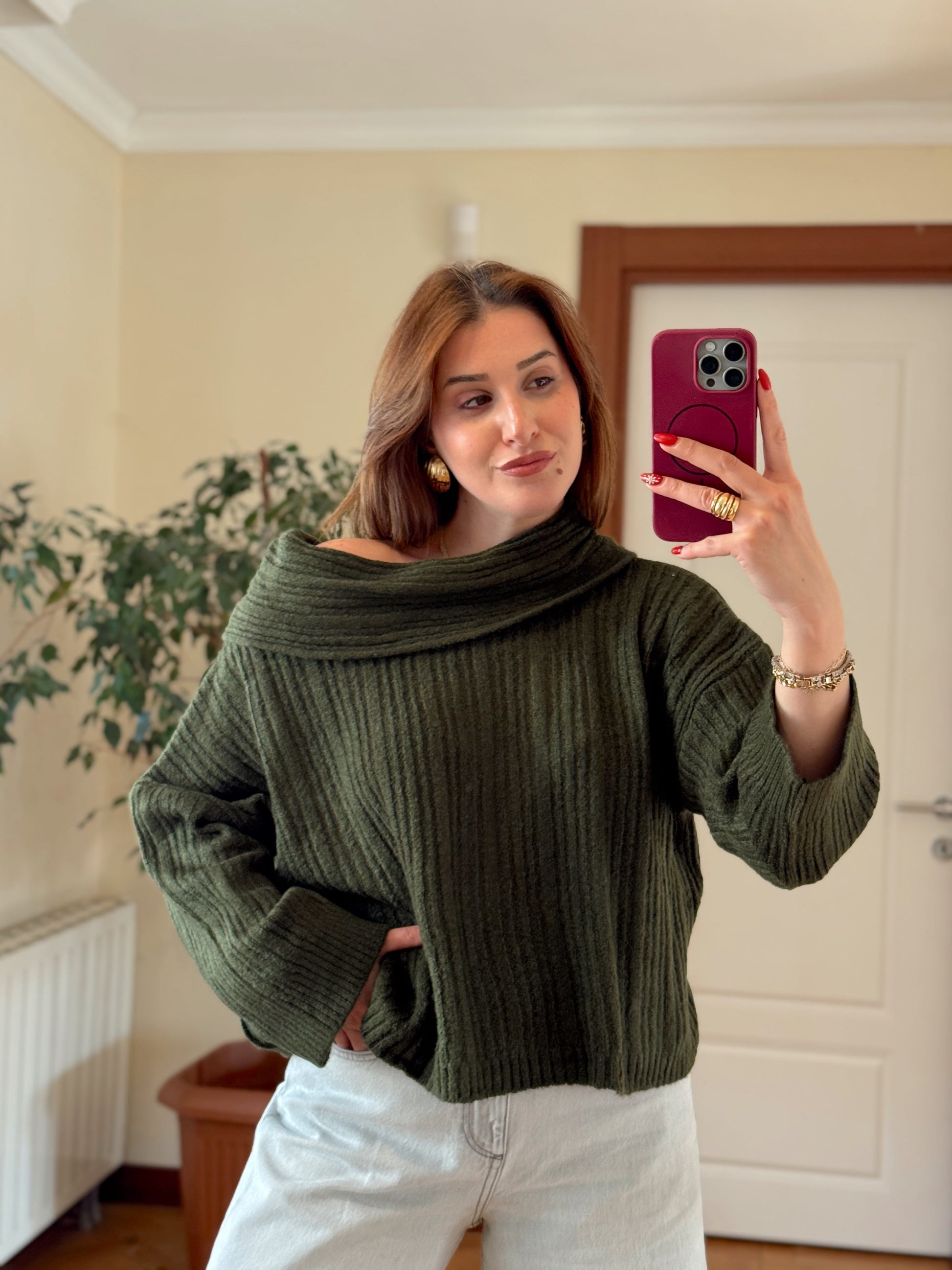 Degaje Yaka Bluz -HAKİ