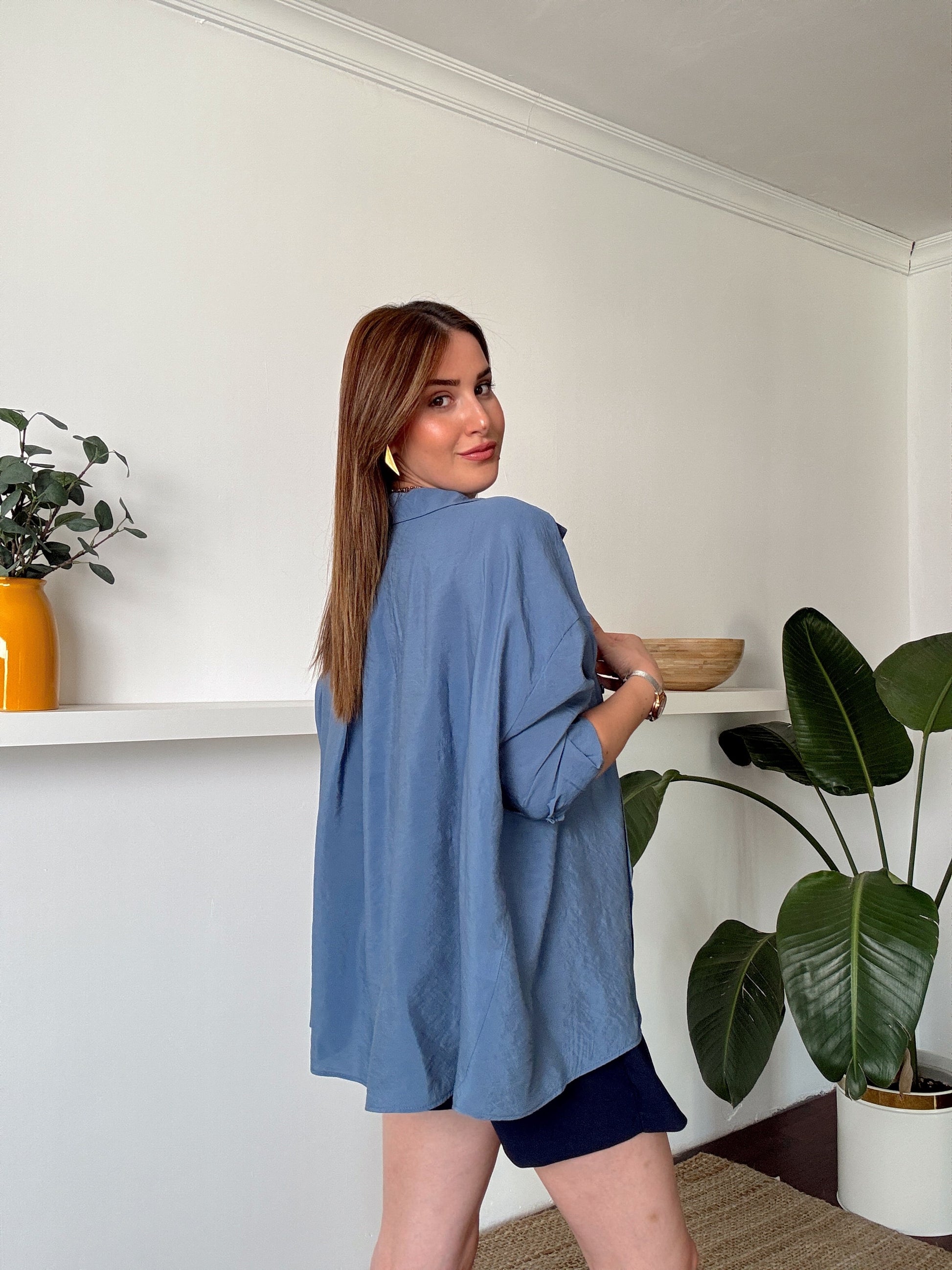 DİEGO tek cepli aerobin gömlek İNDİGO