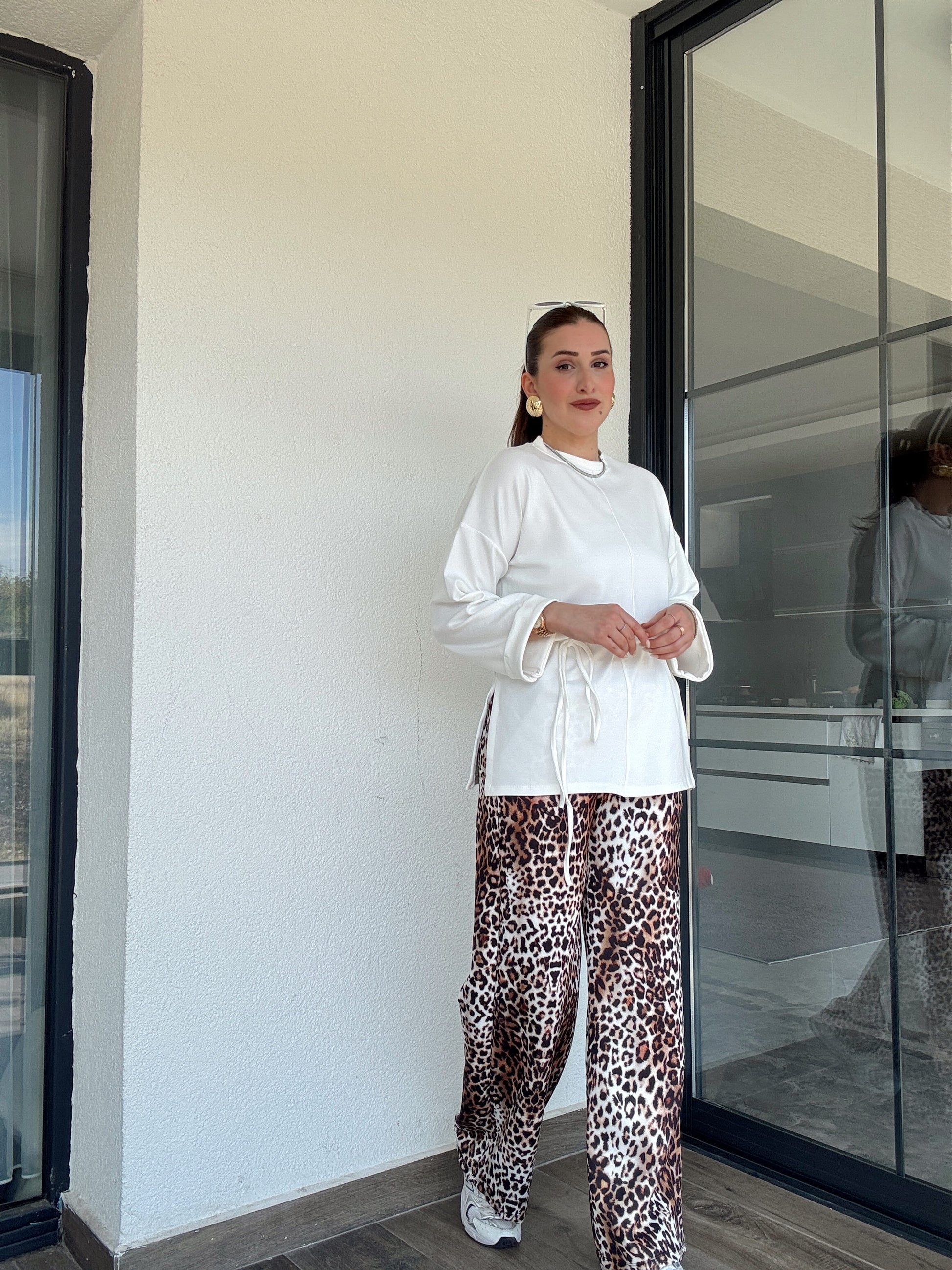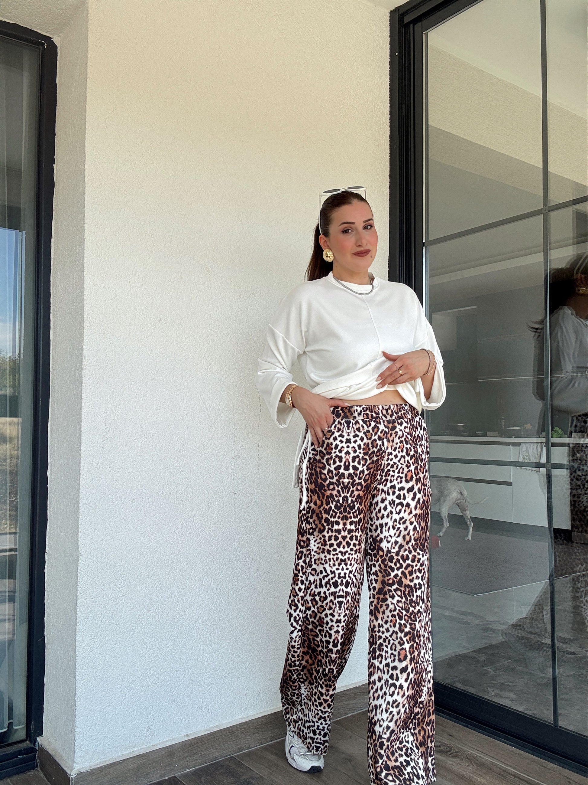 Digital Baskı Palazzo Pantolon - BEJ LEOPAR