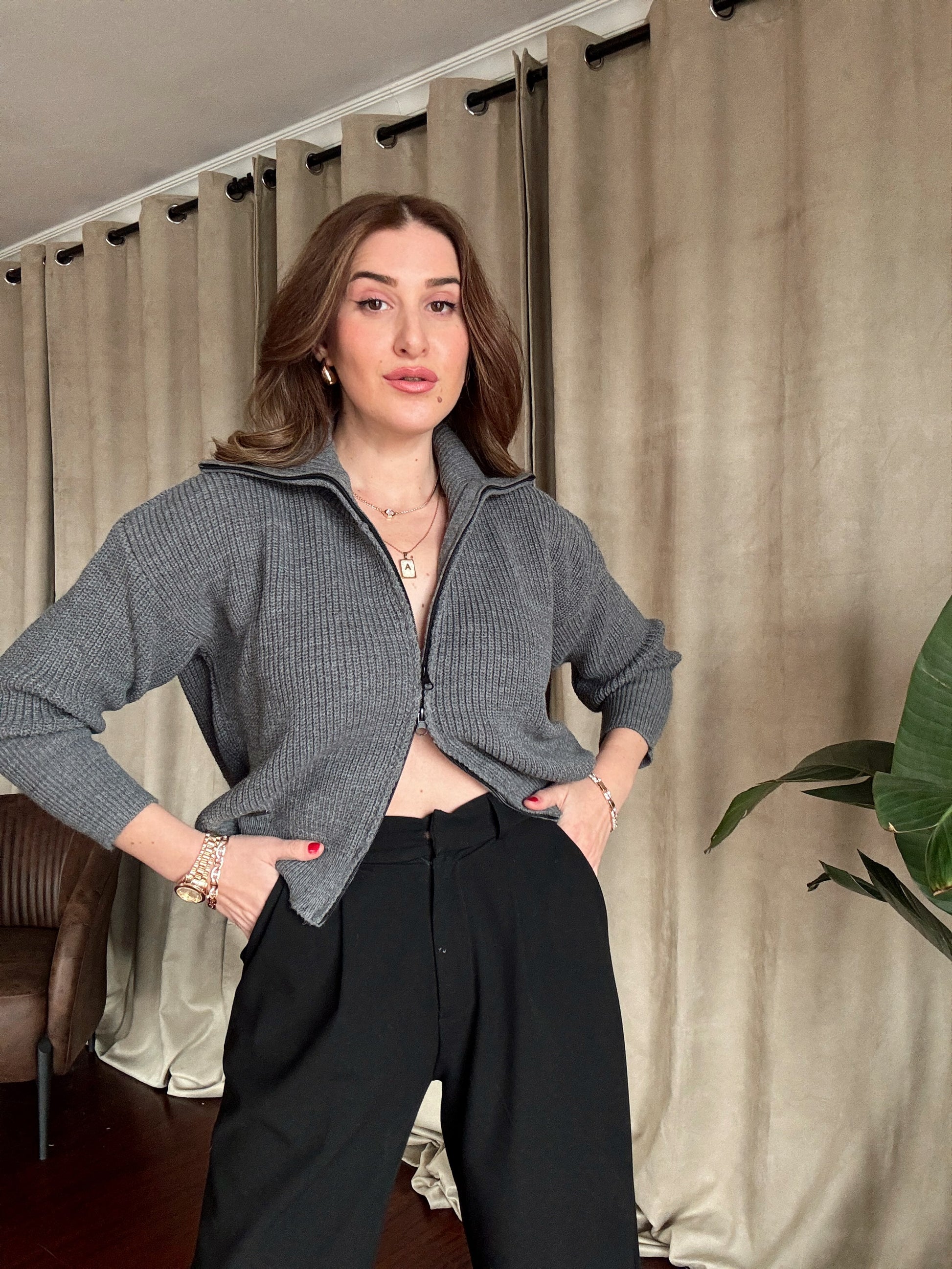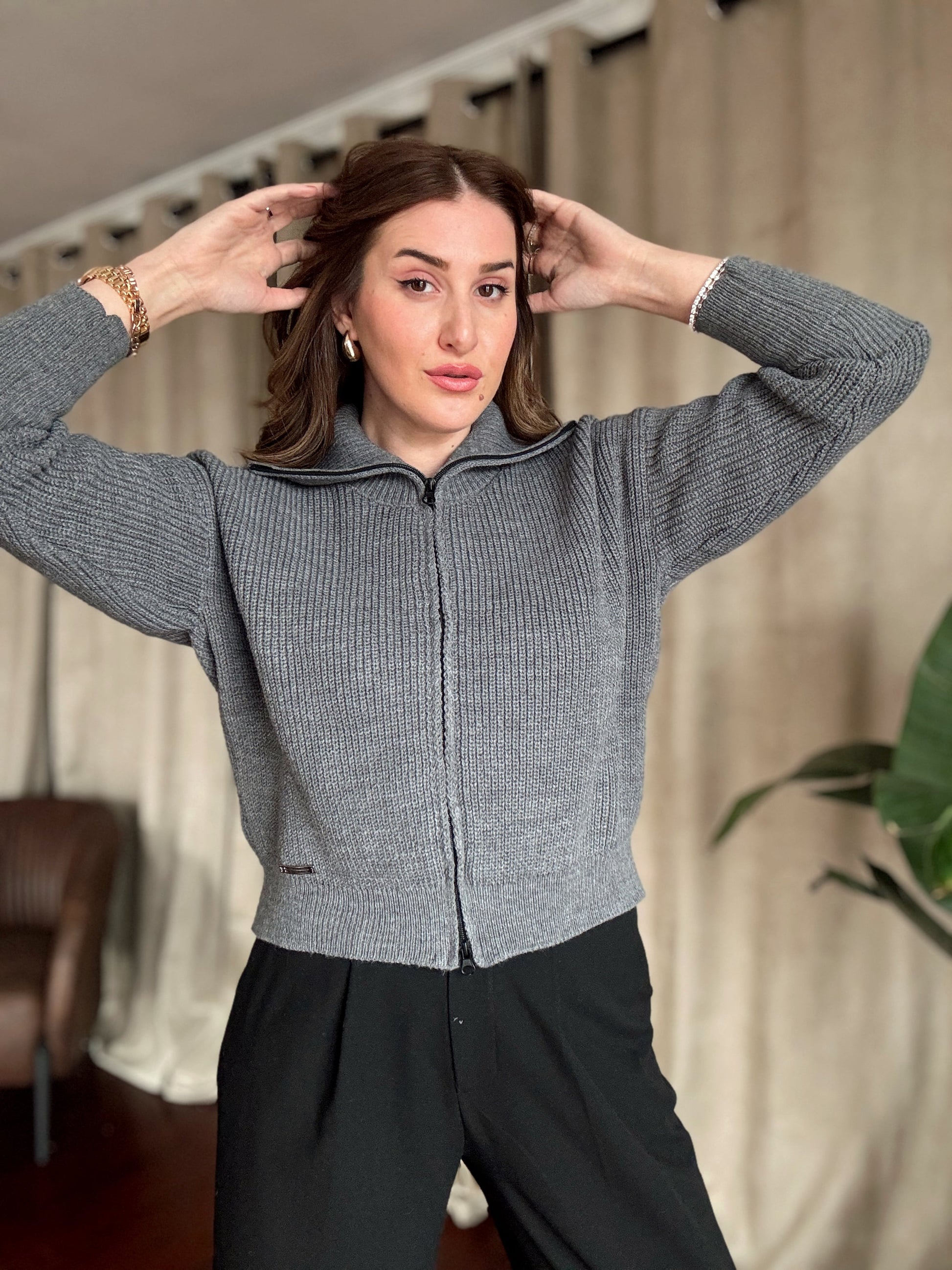 Fermuarlı Örgü Ceket - FÜME