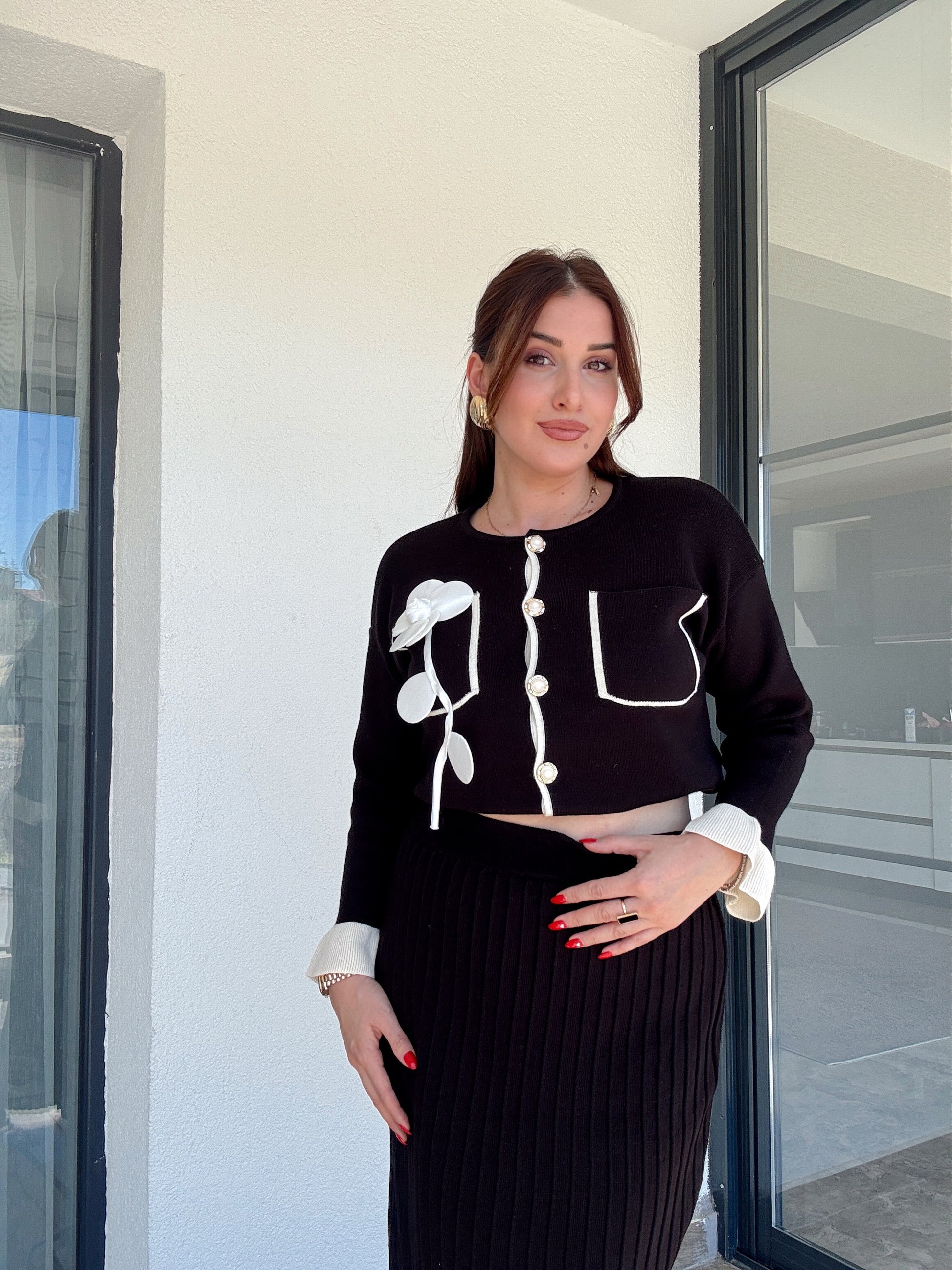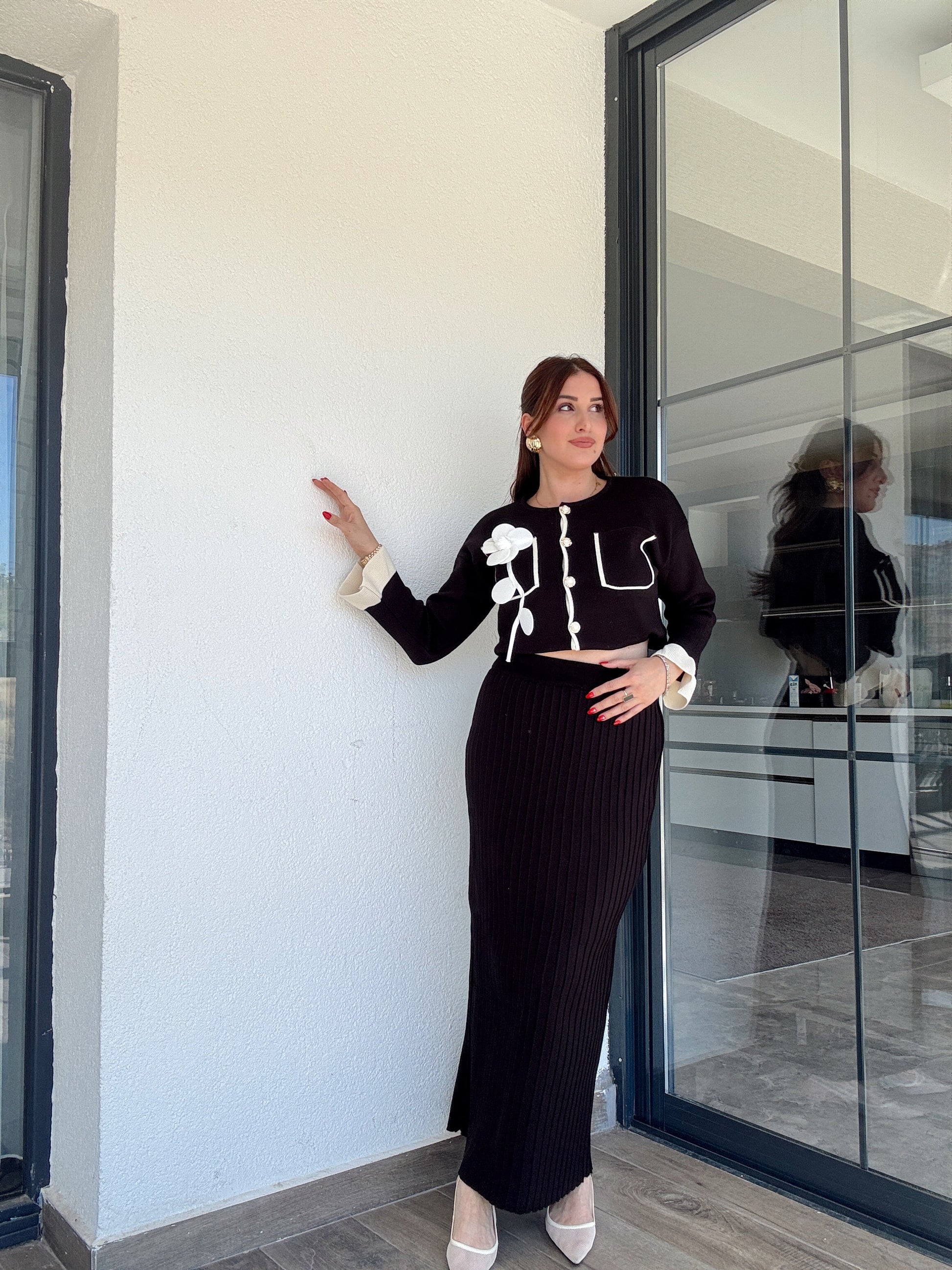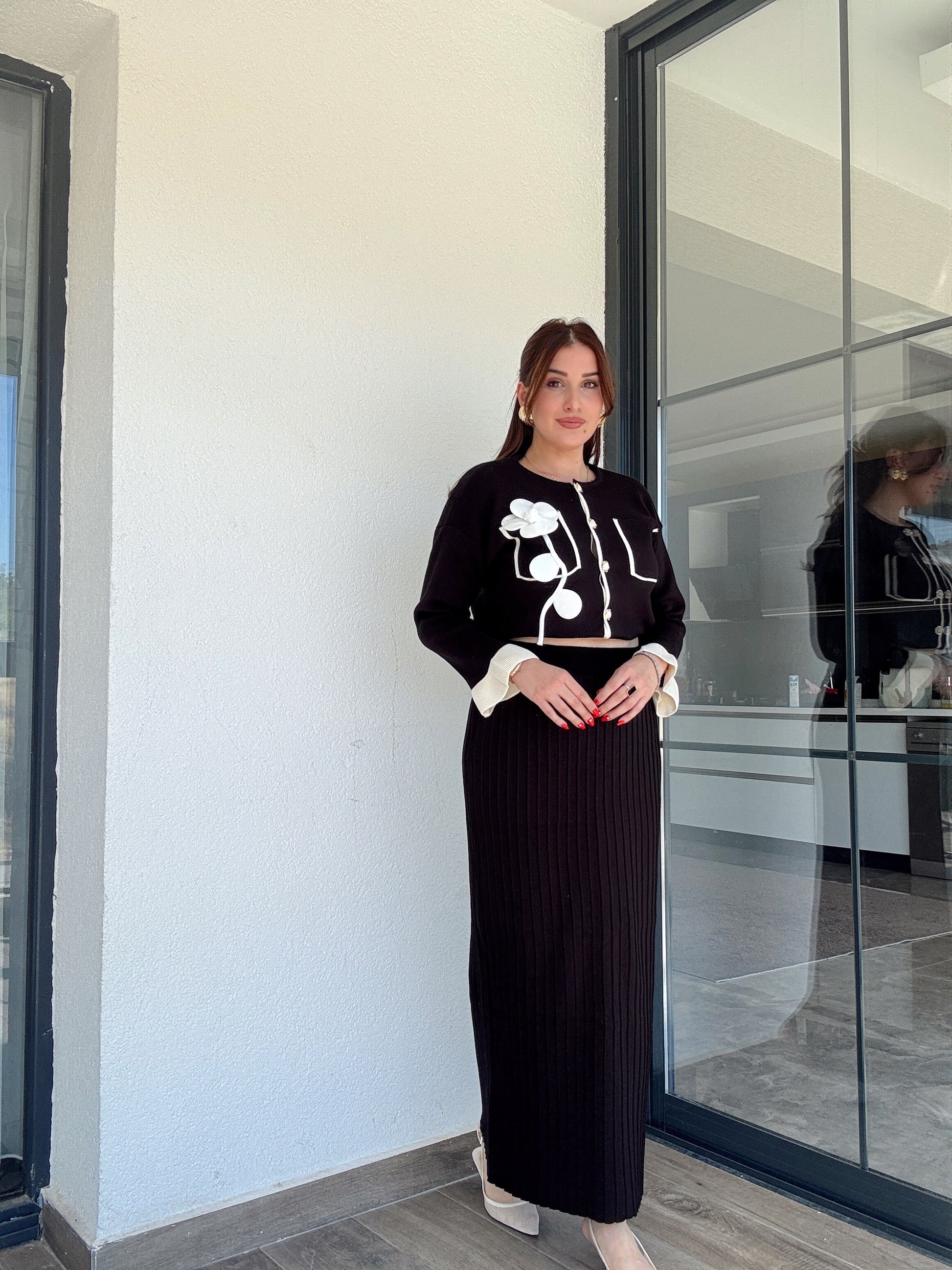 Florya etekli ikili triko takım SİYAH