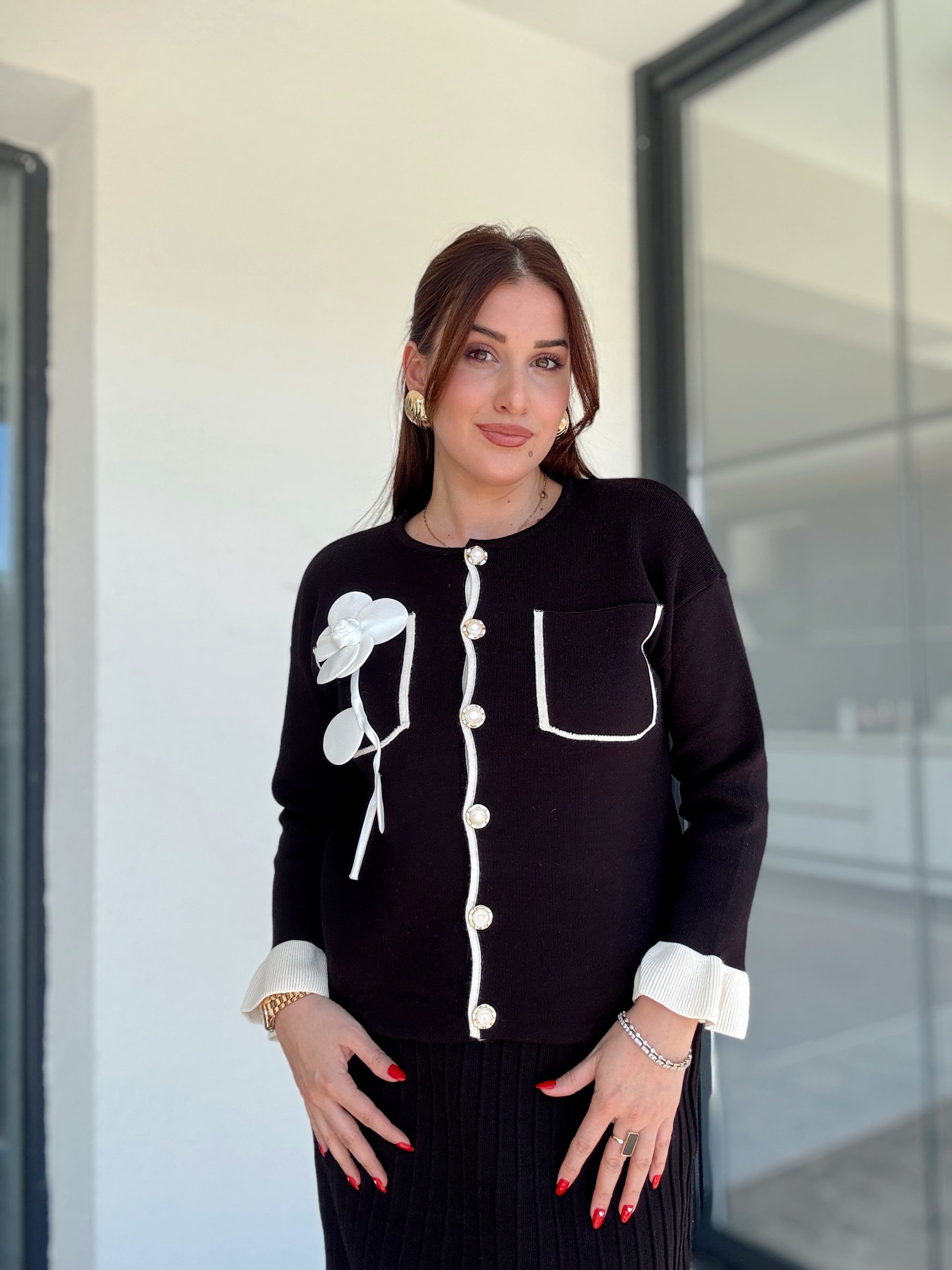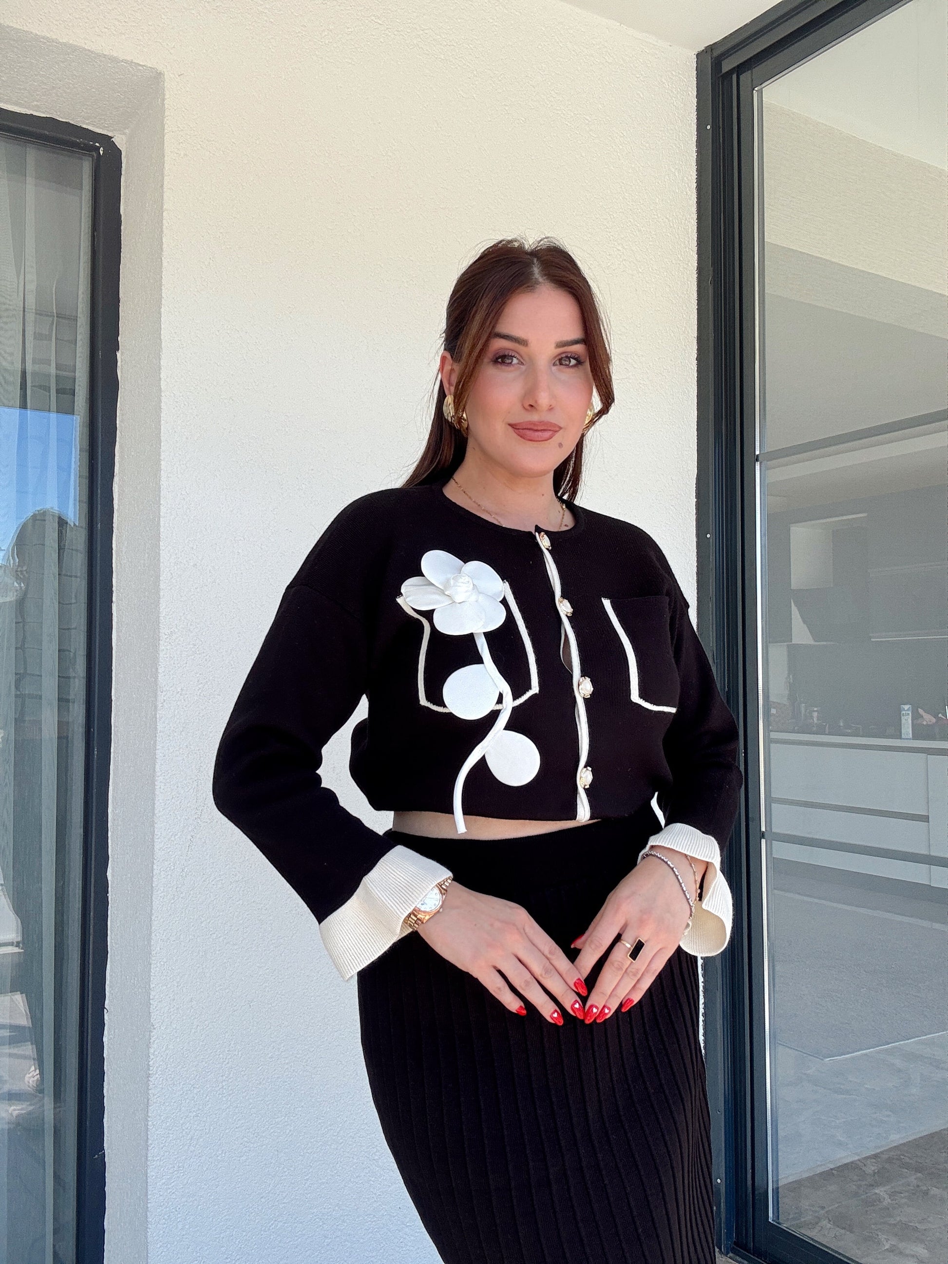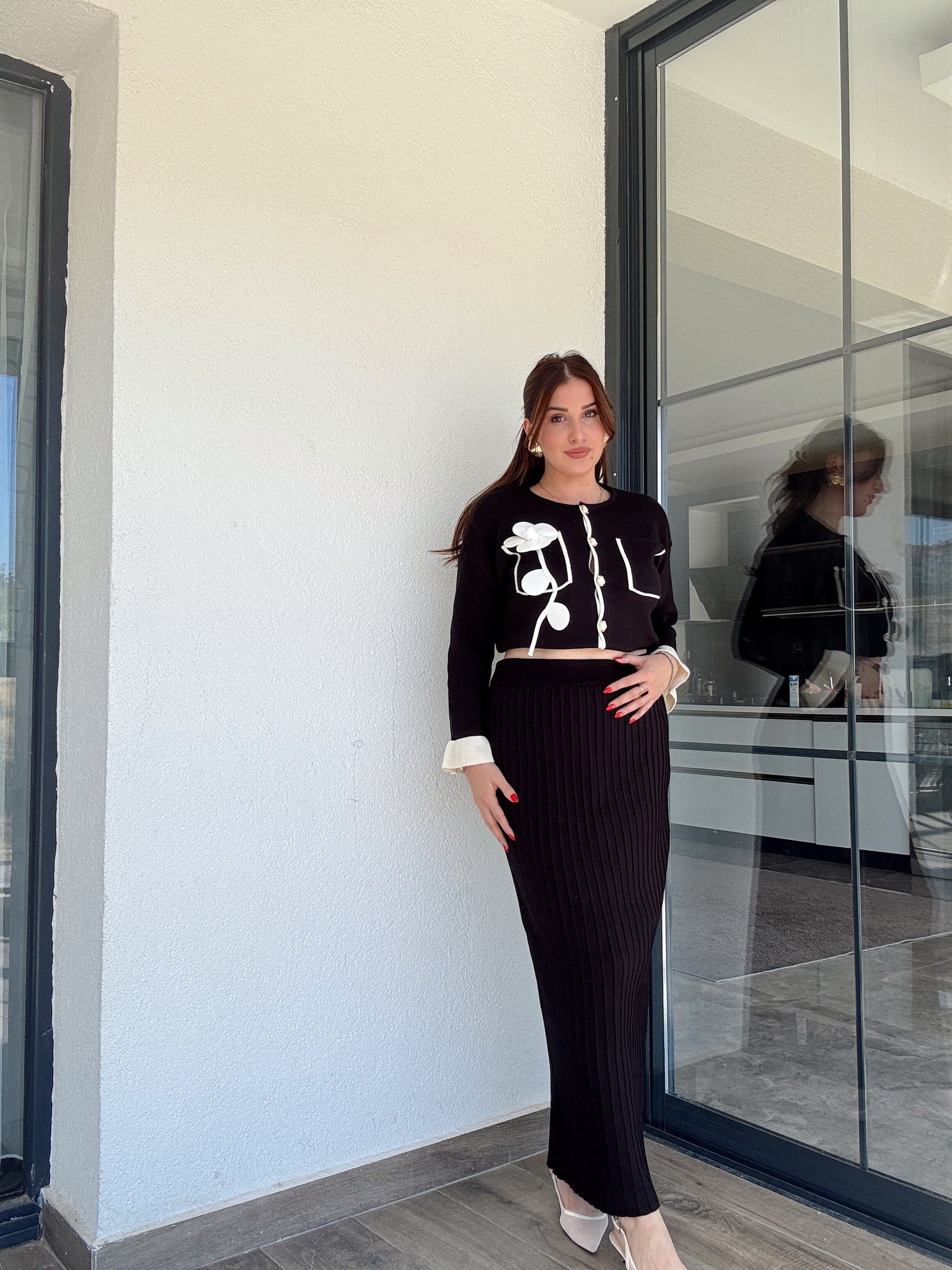 Florya etekli ikili triko takım SİYAH