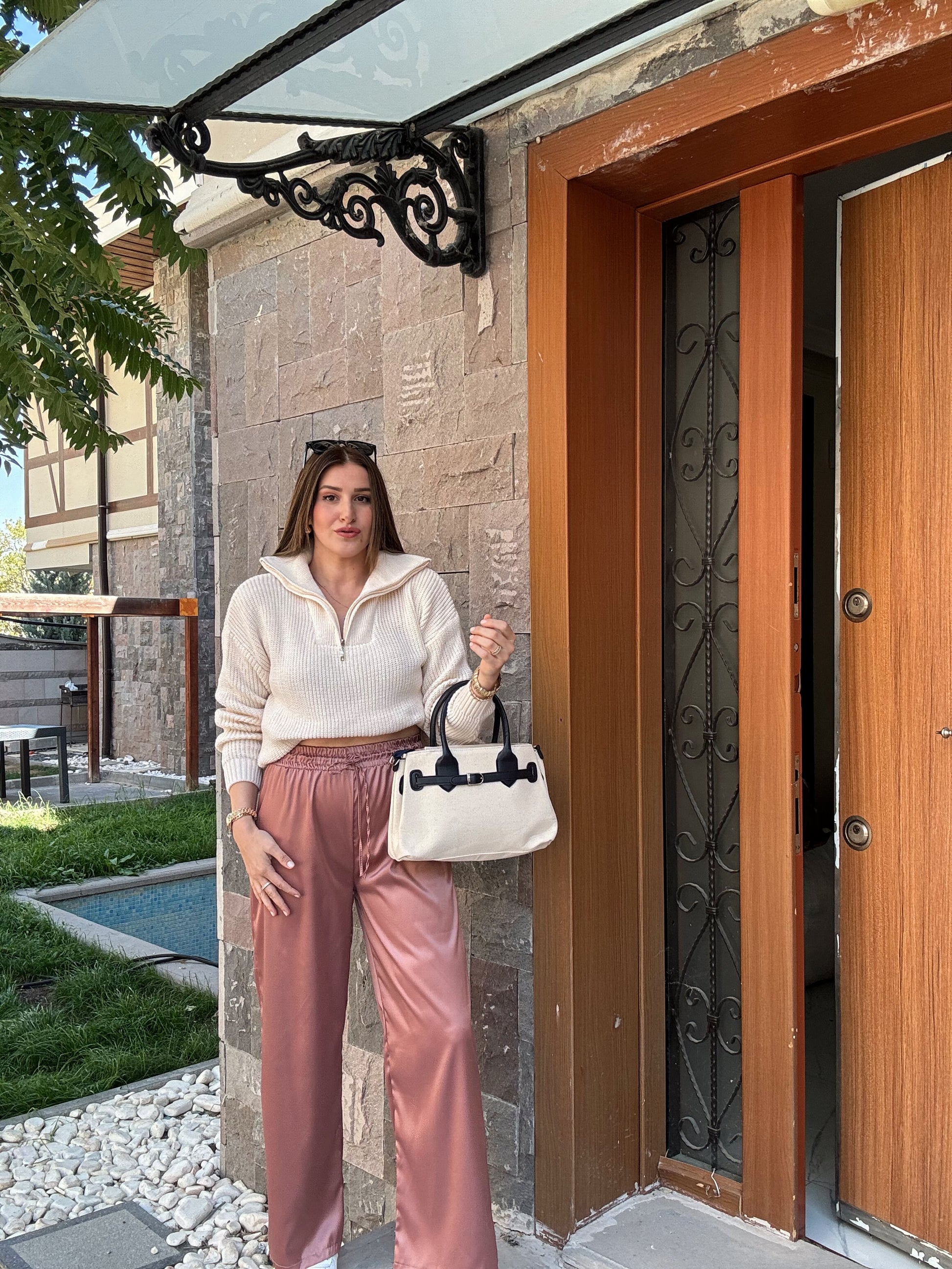 Geniş Fermuar Yaka Selanik Kazak LATTE