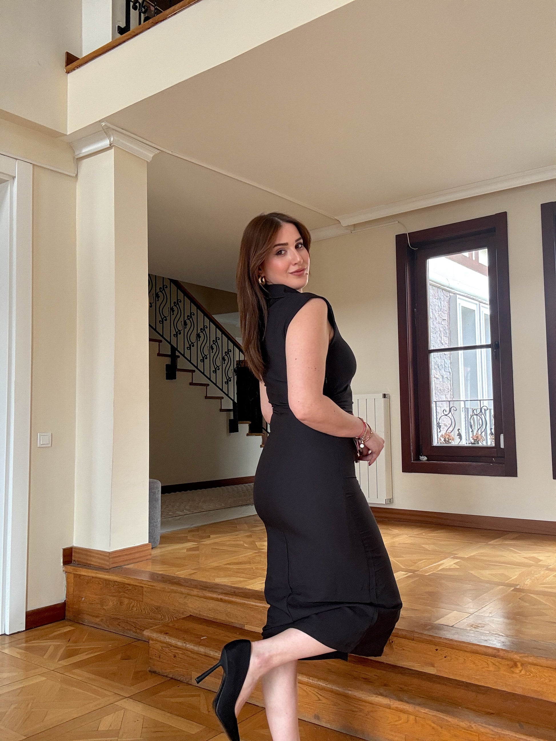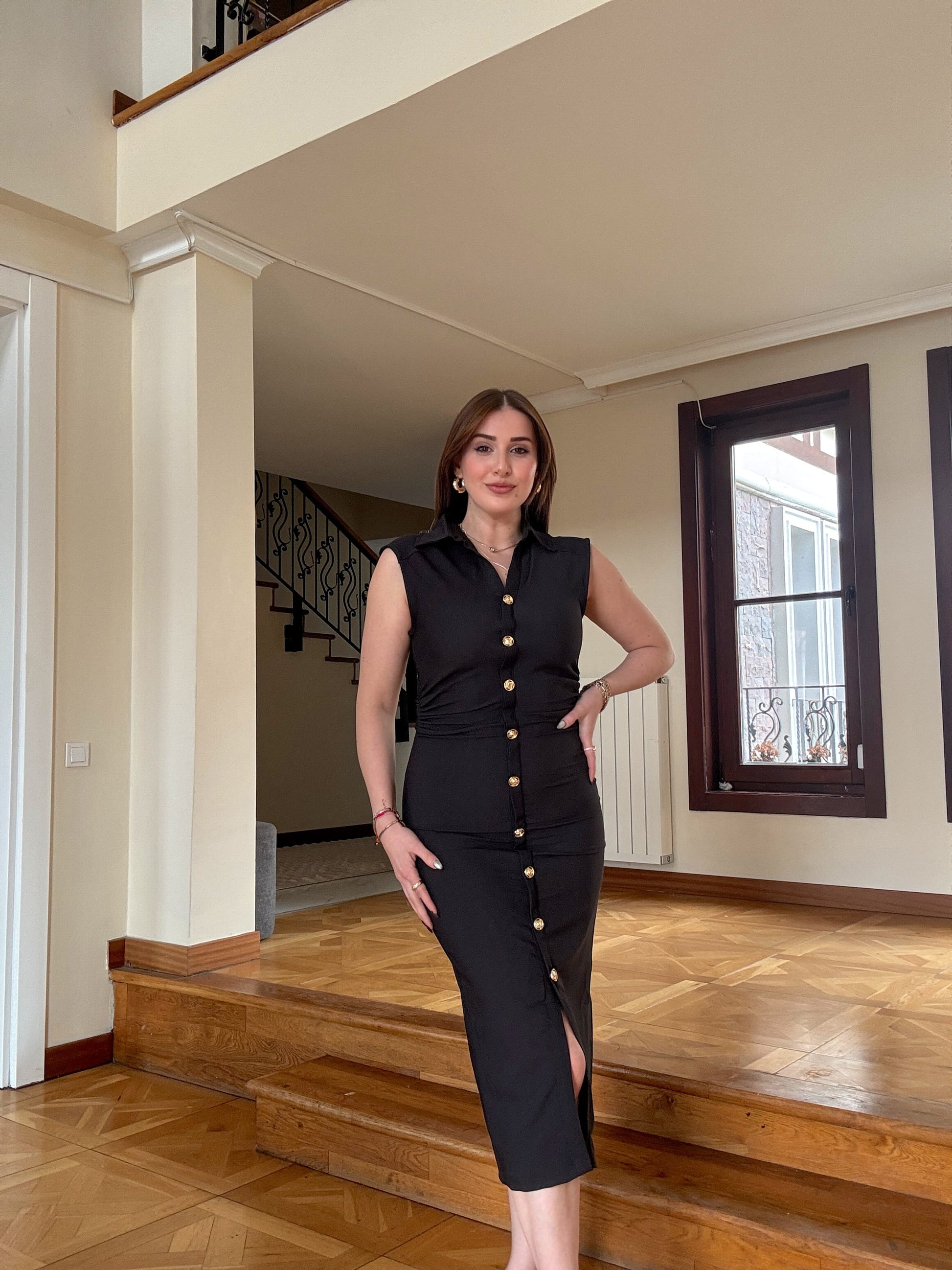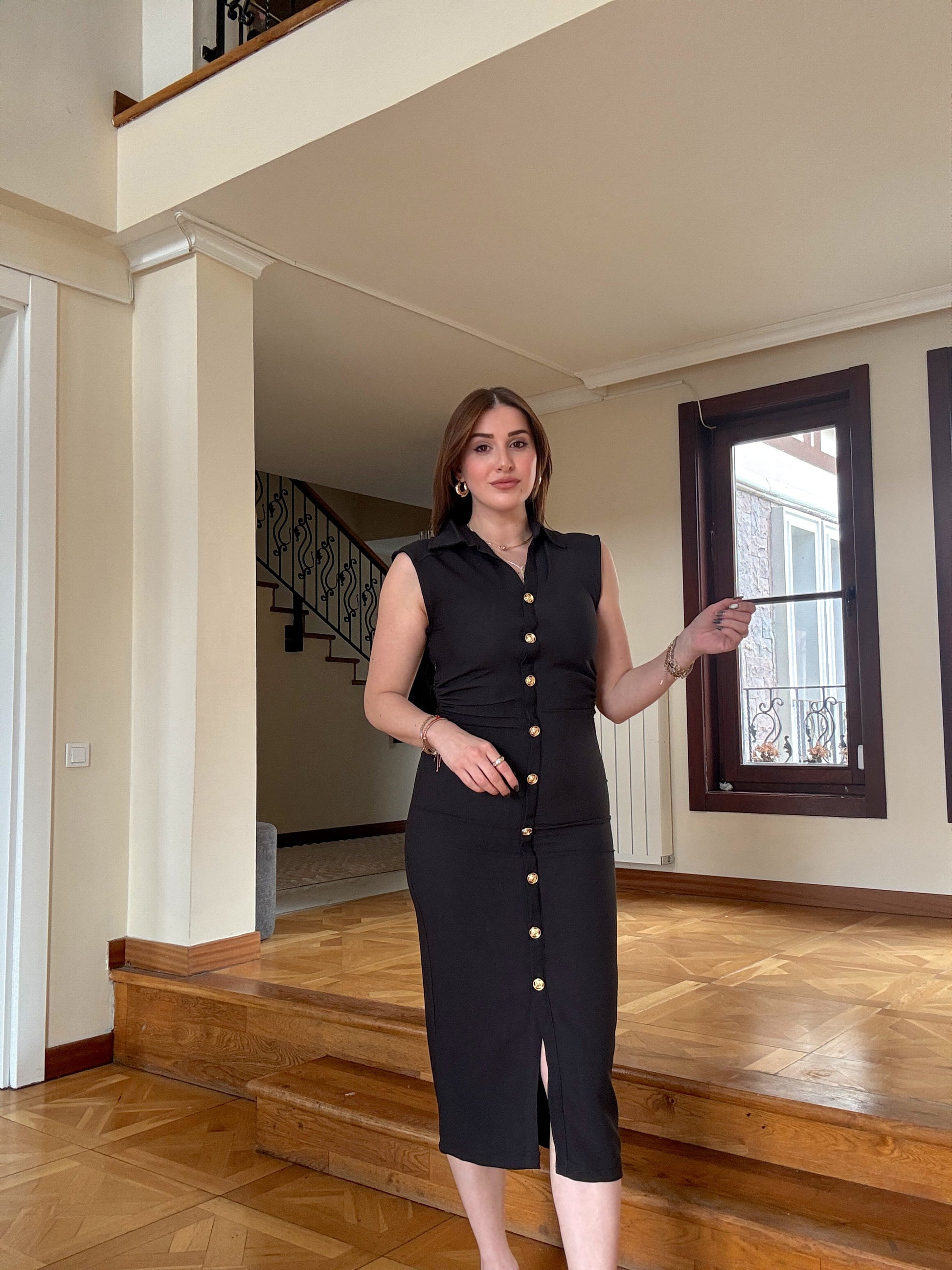 Gömlek yaka elbise Siyah