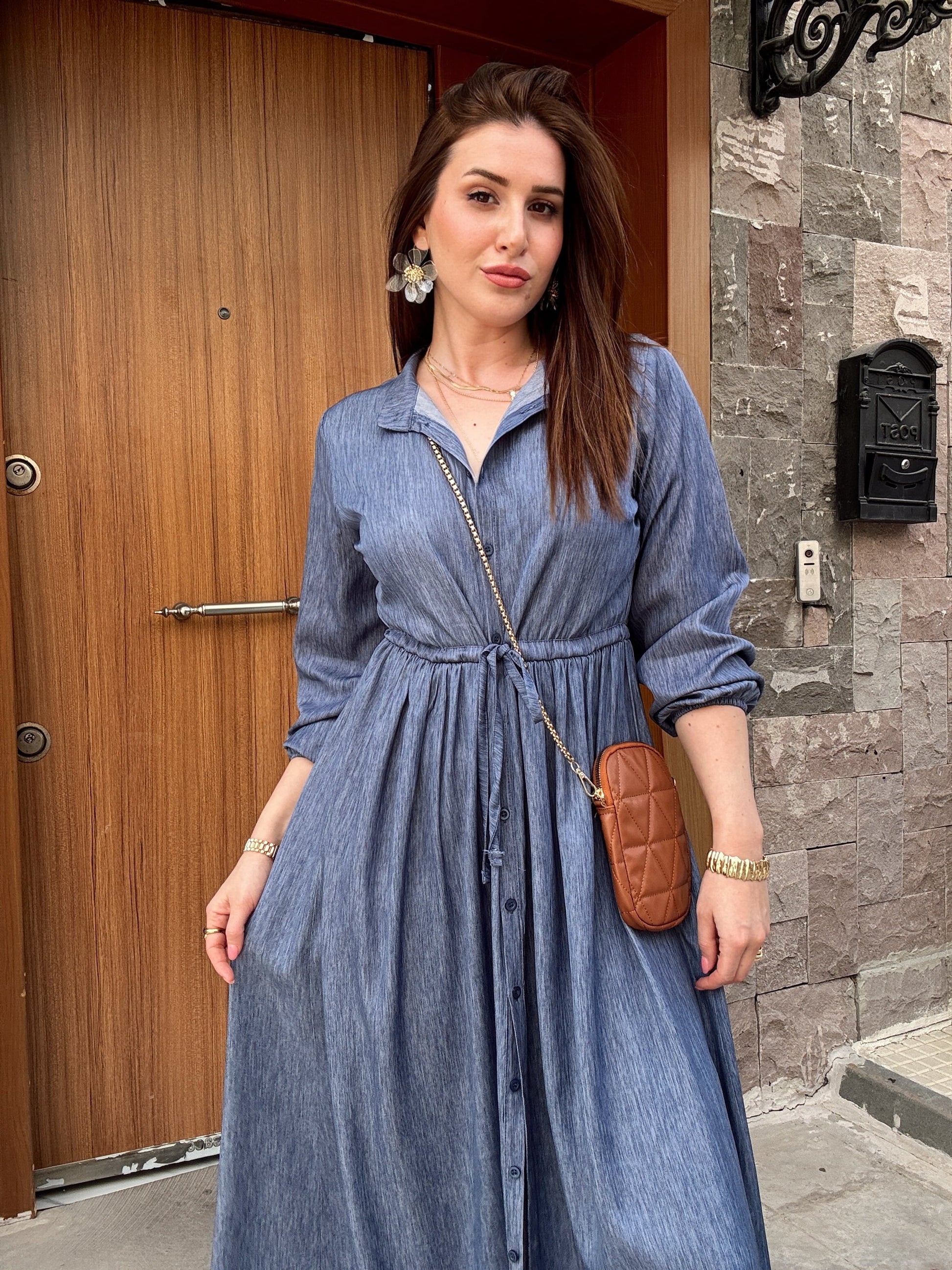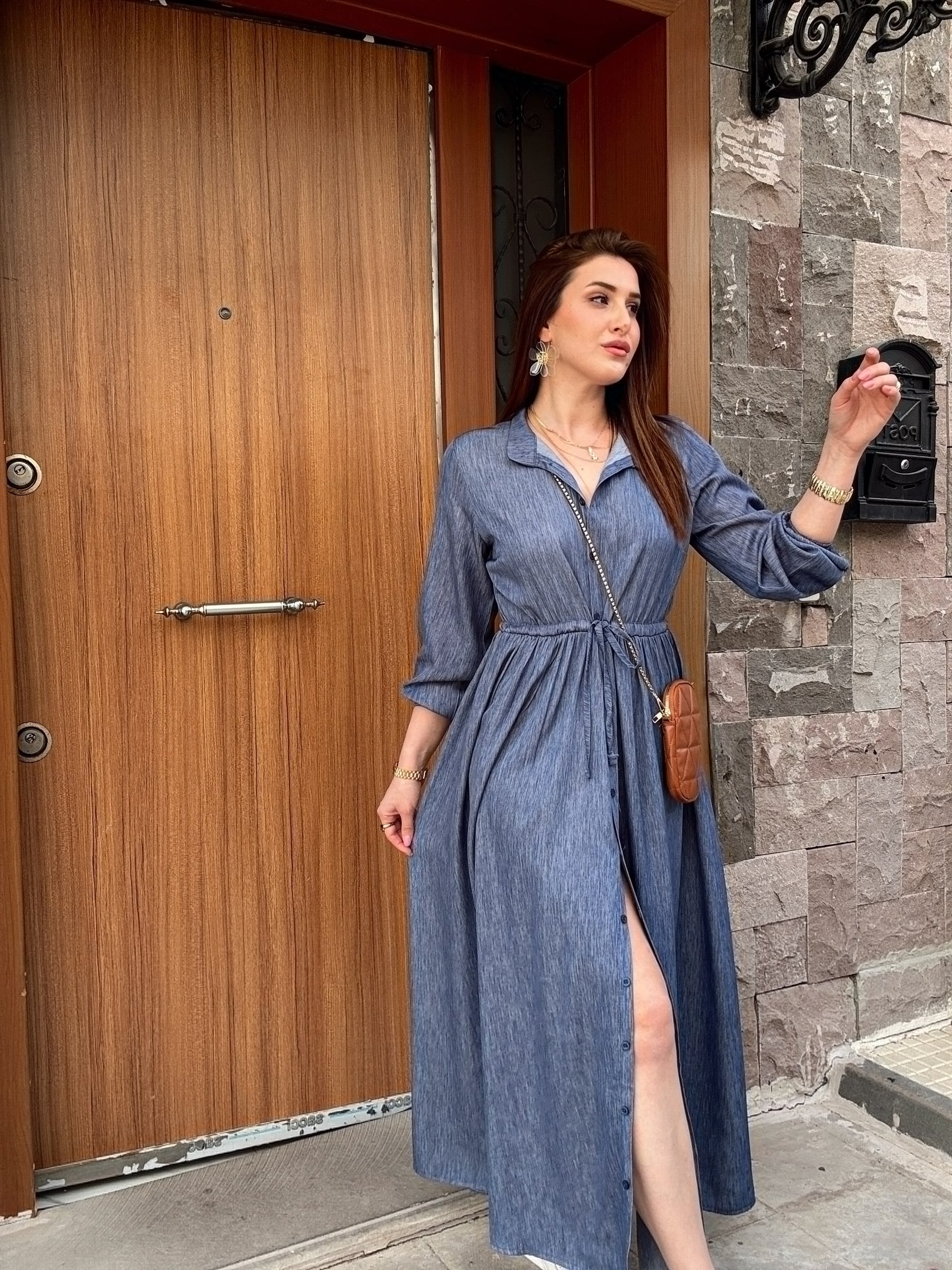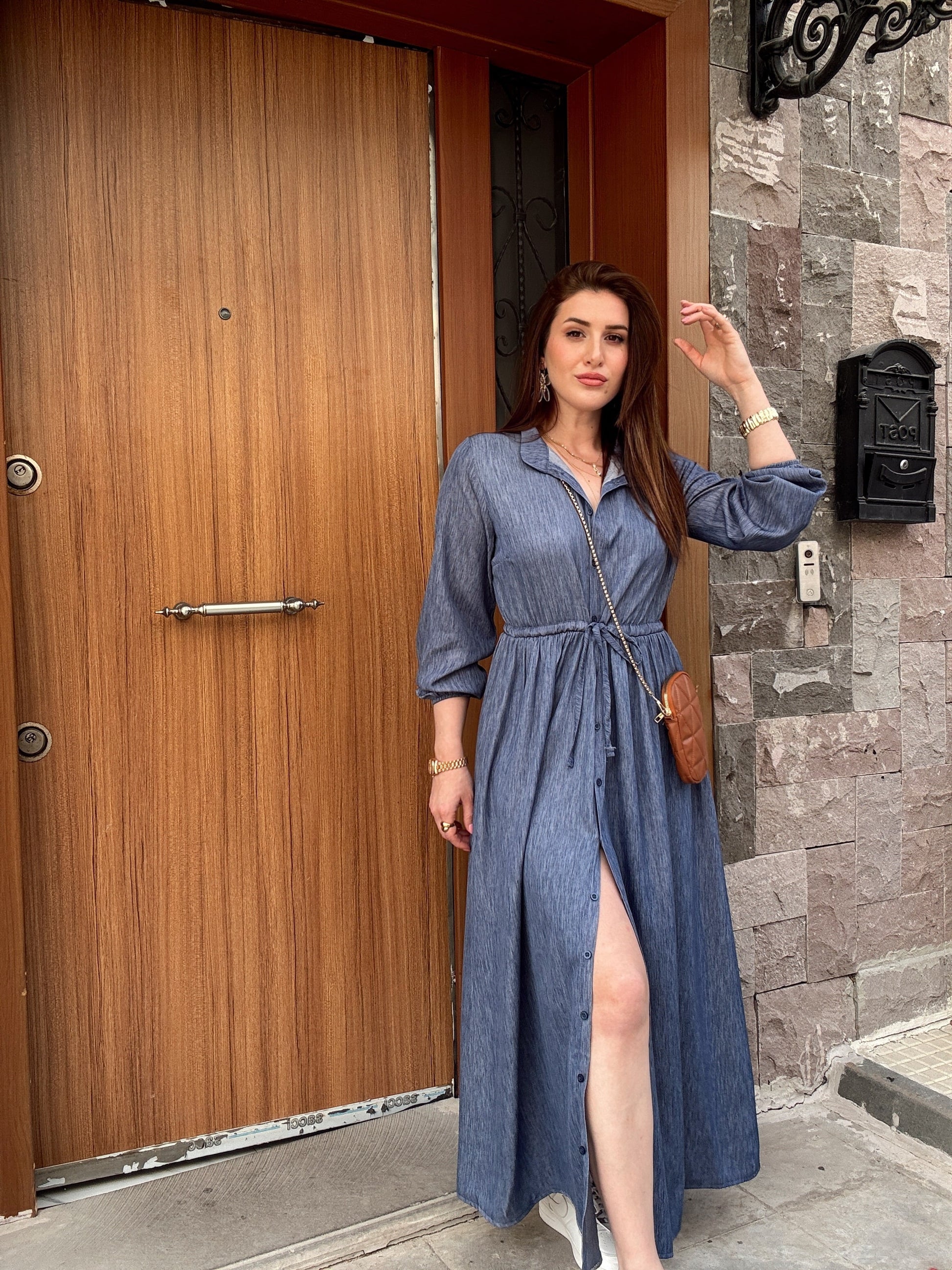 Hakim Yaka Full Düğmeli Tensel Elbise