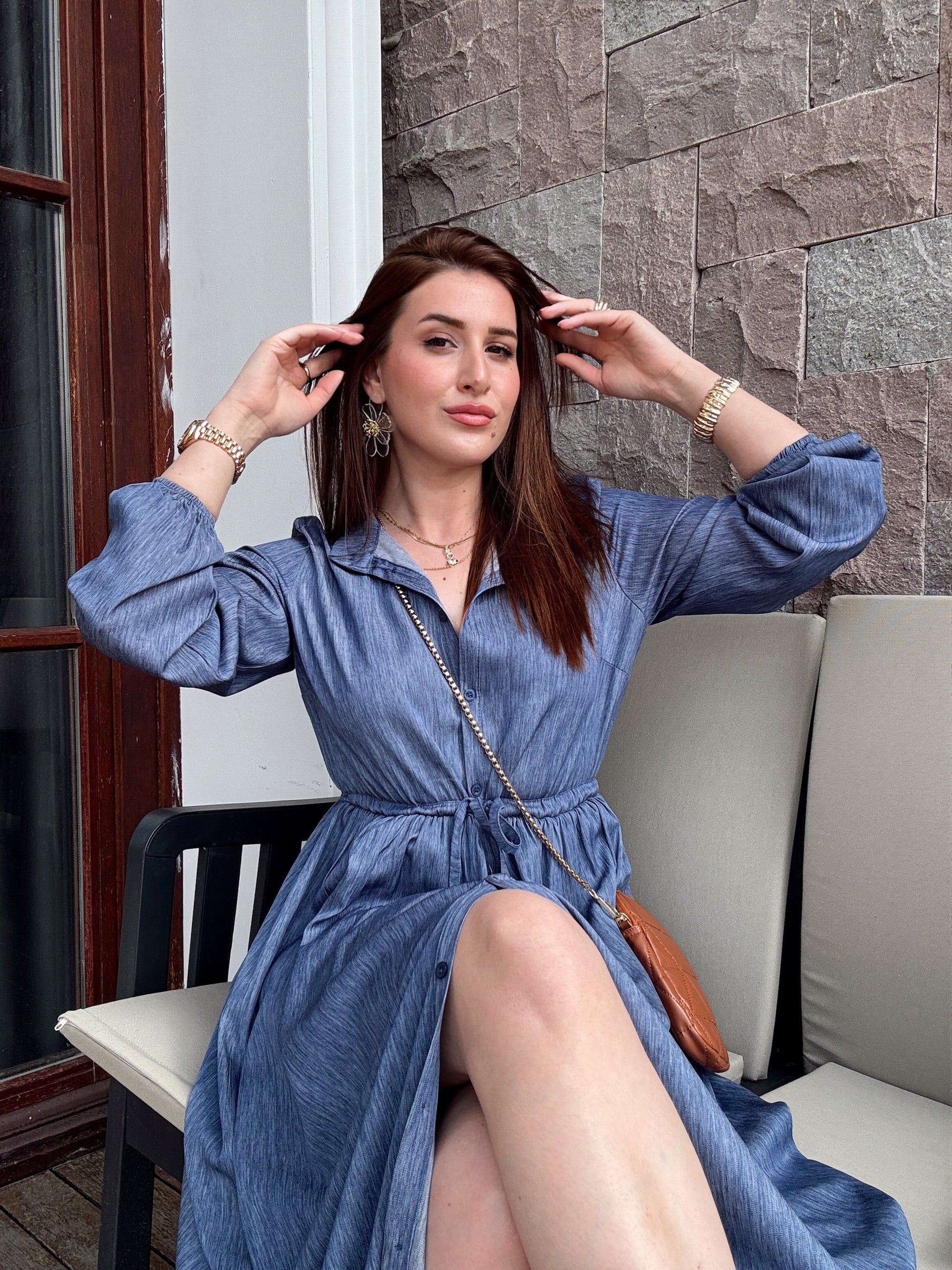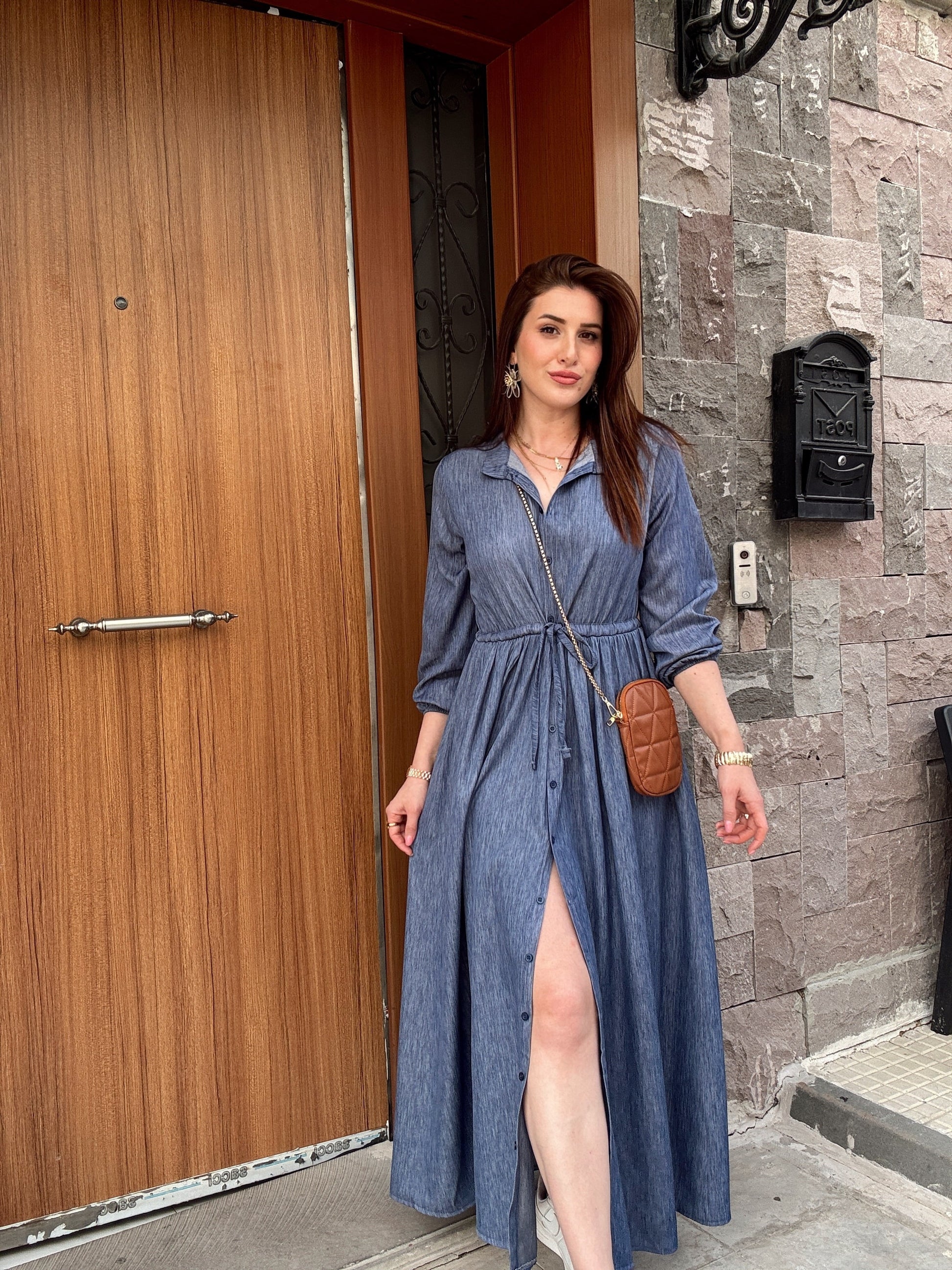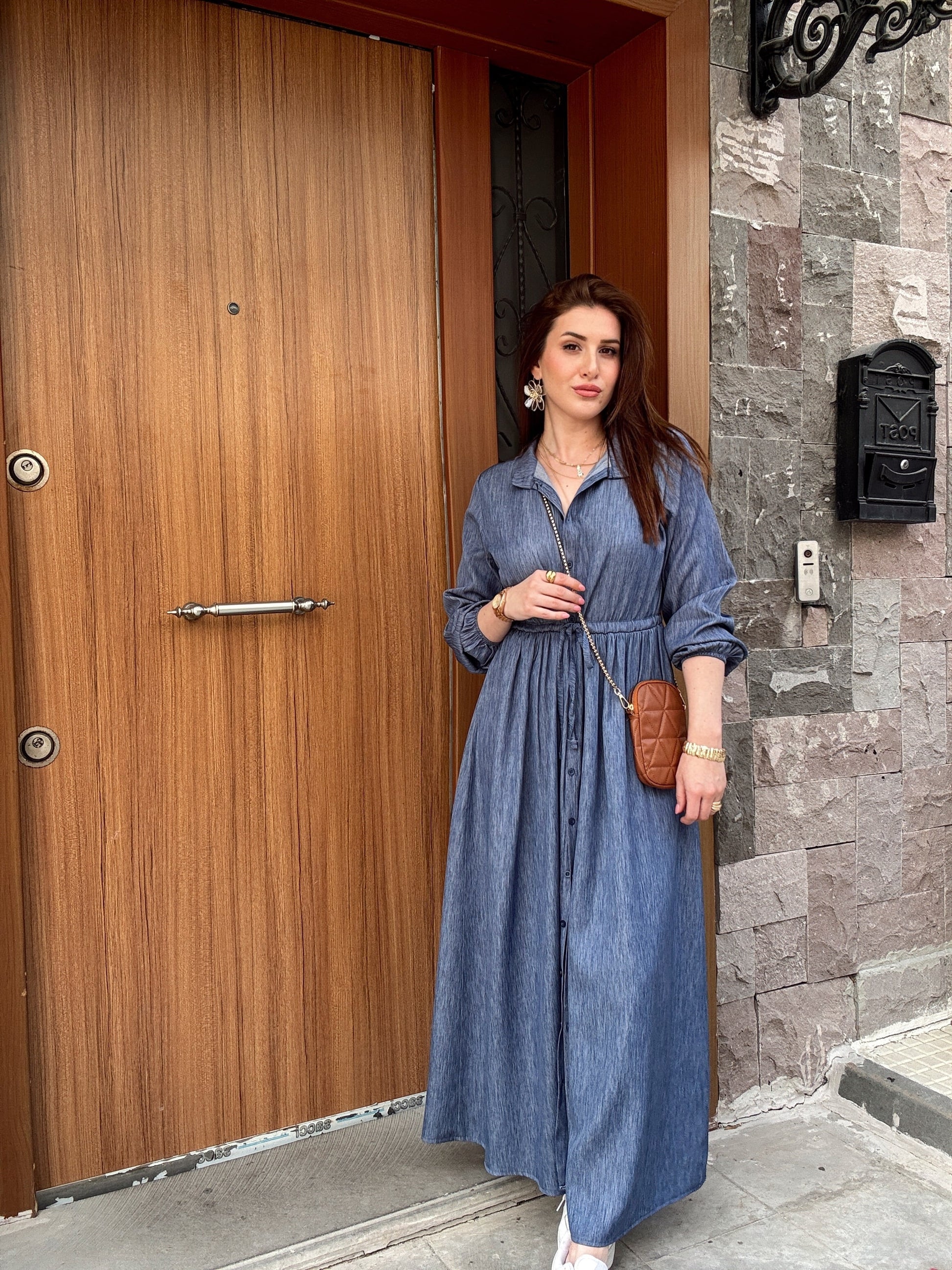 Hakim Yaka Full Düğmeli Tensel Elbise