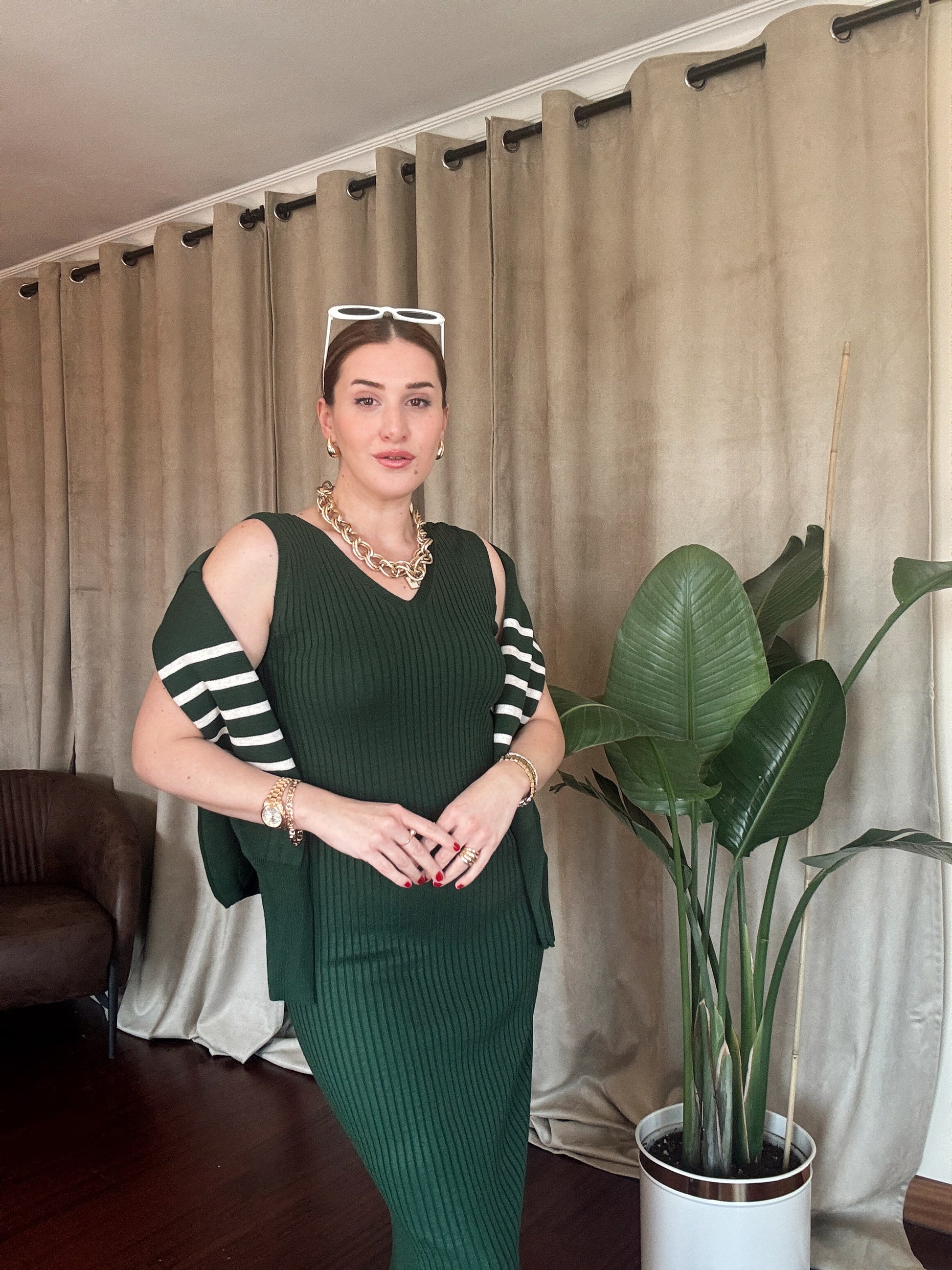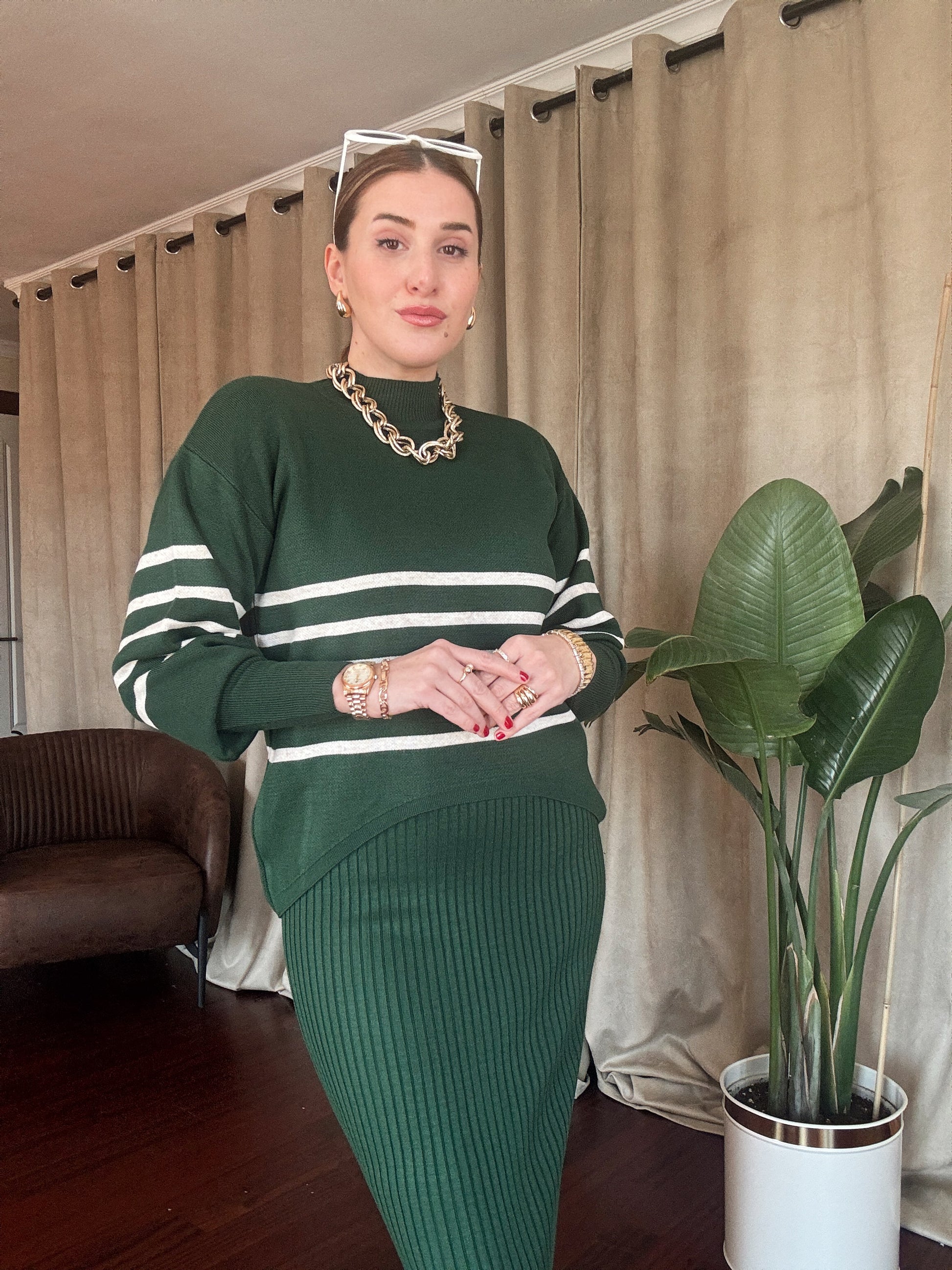 İnce Çizgili Jileli Takım - YEŞİL