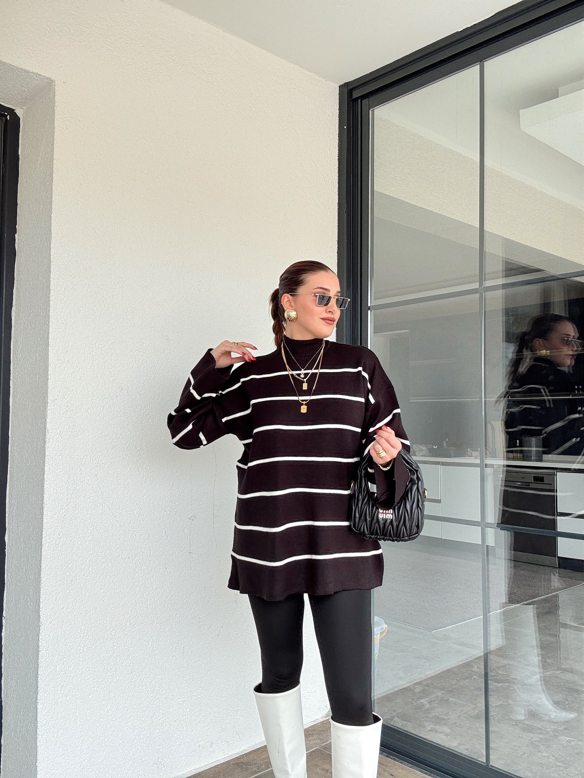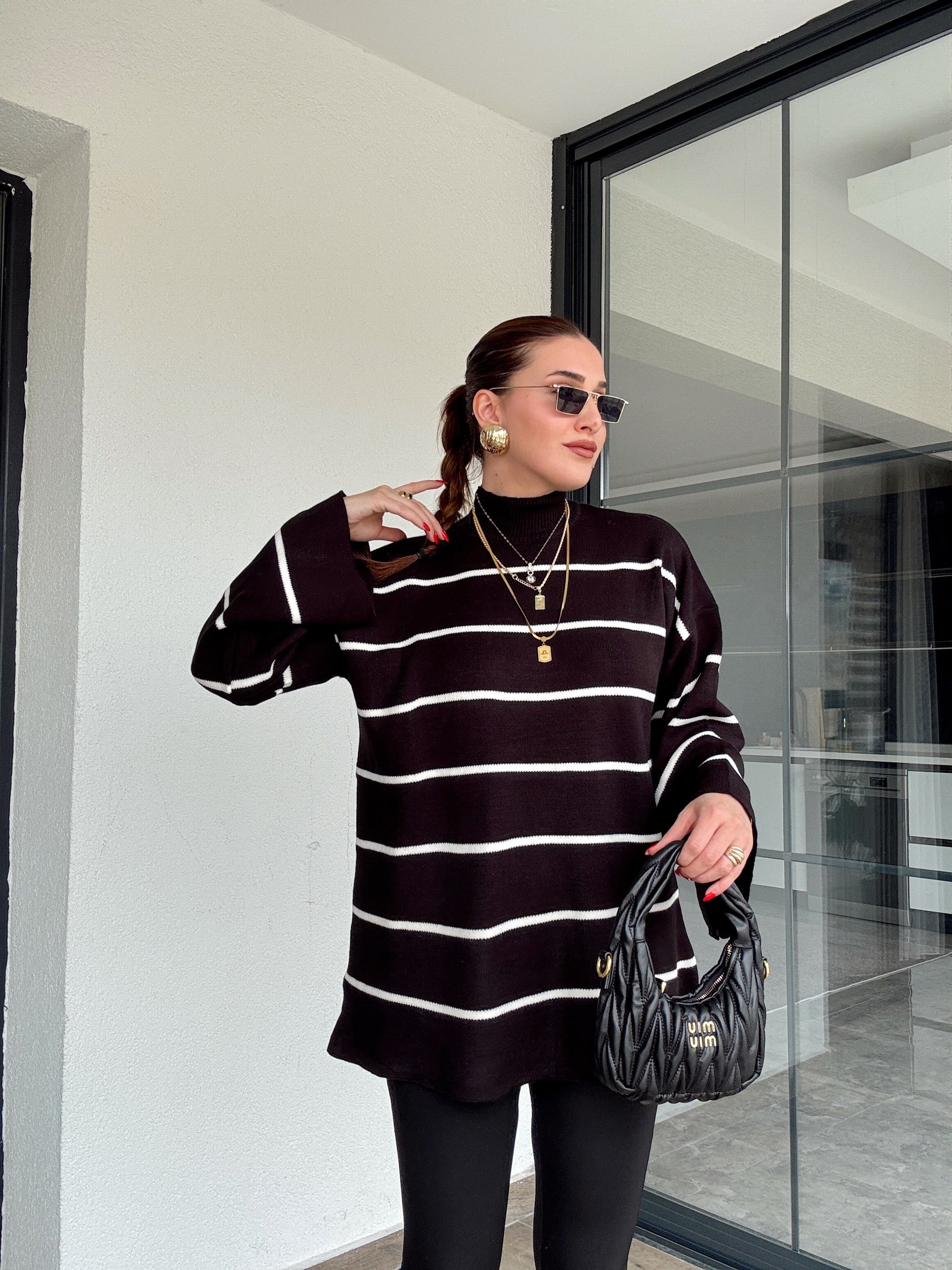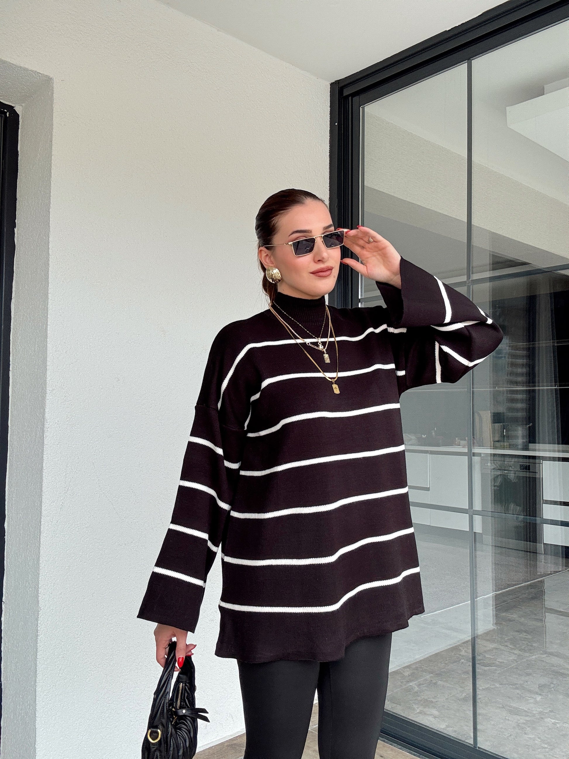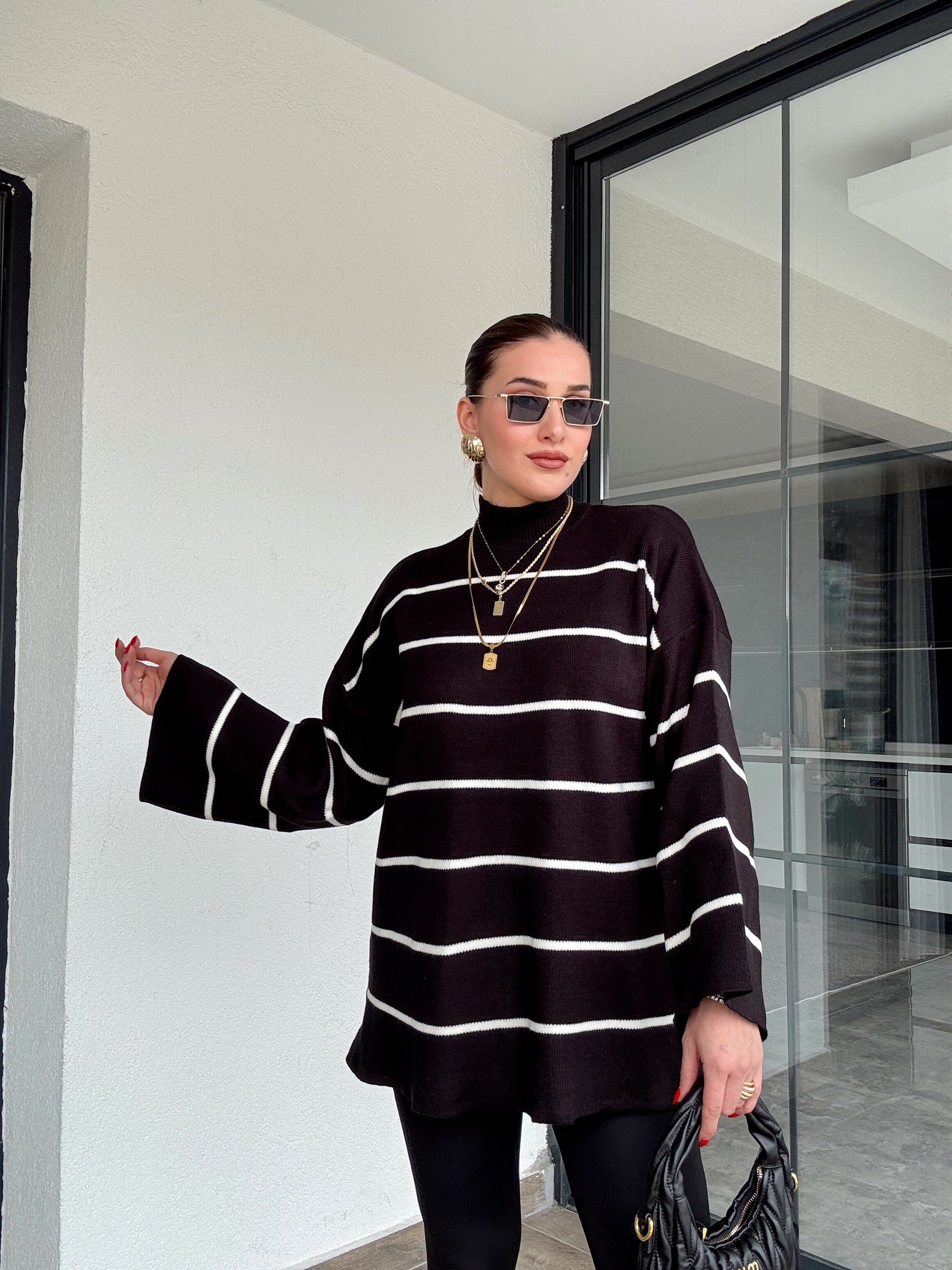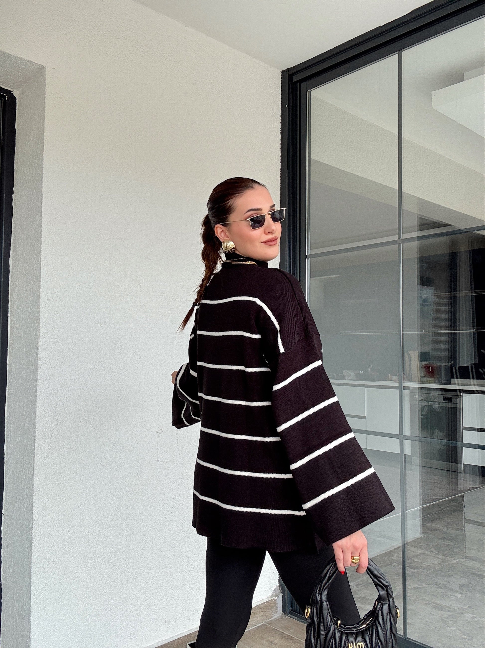 İspanyol Kol Çizgili Kazak - SİYAH