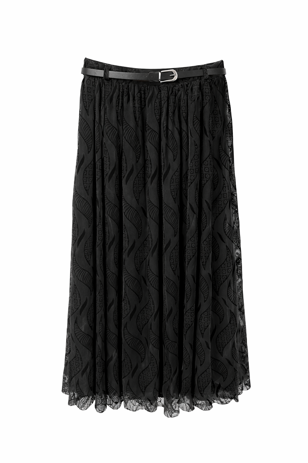 Kemerli Astarlı Şifon Etek Siyah