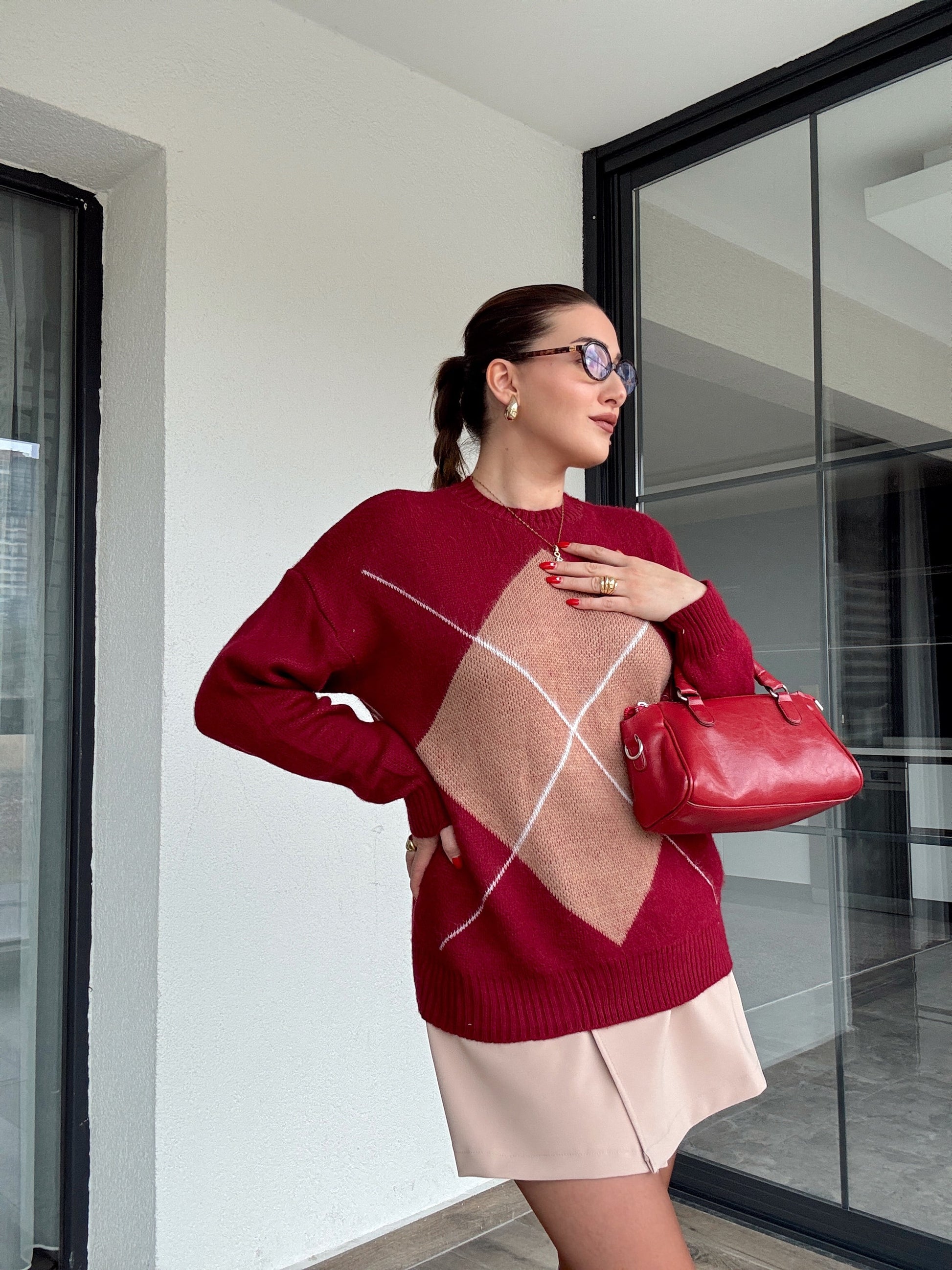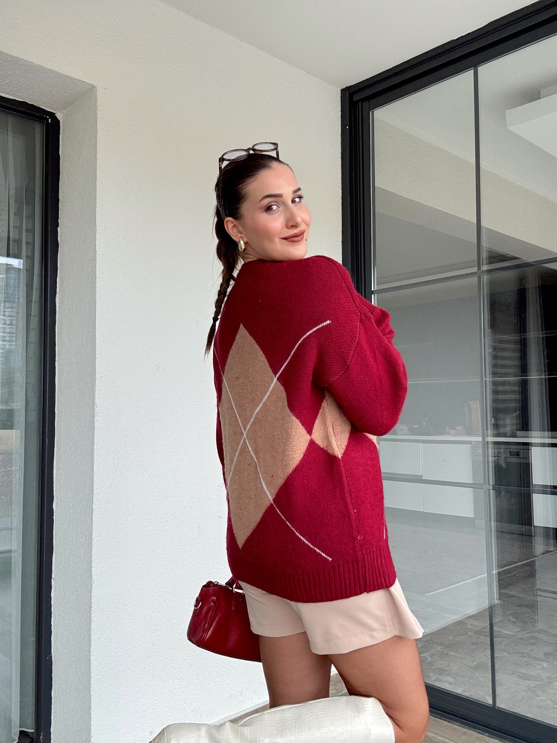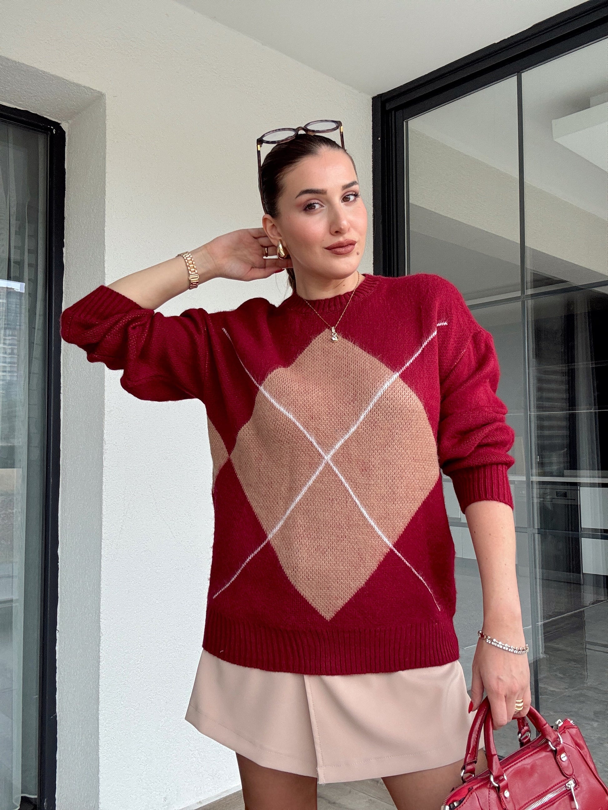 Klasik baklava desenli kazak BORDO