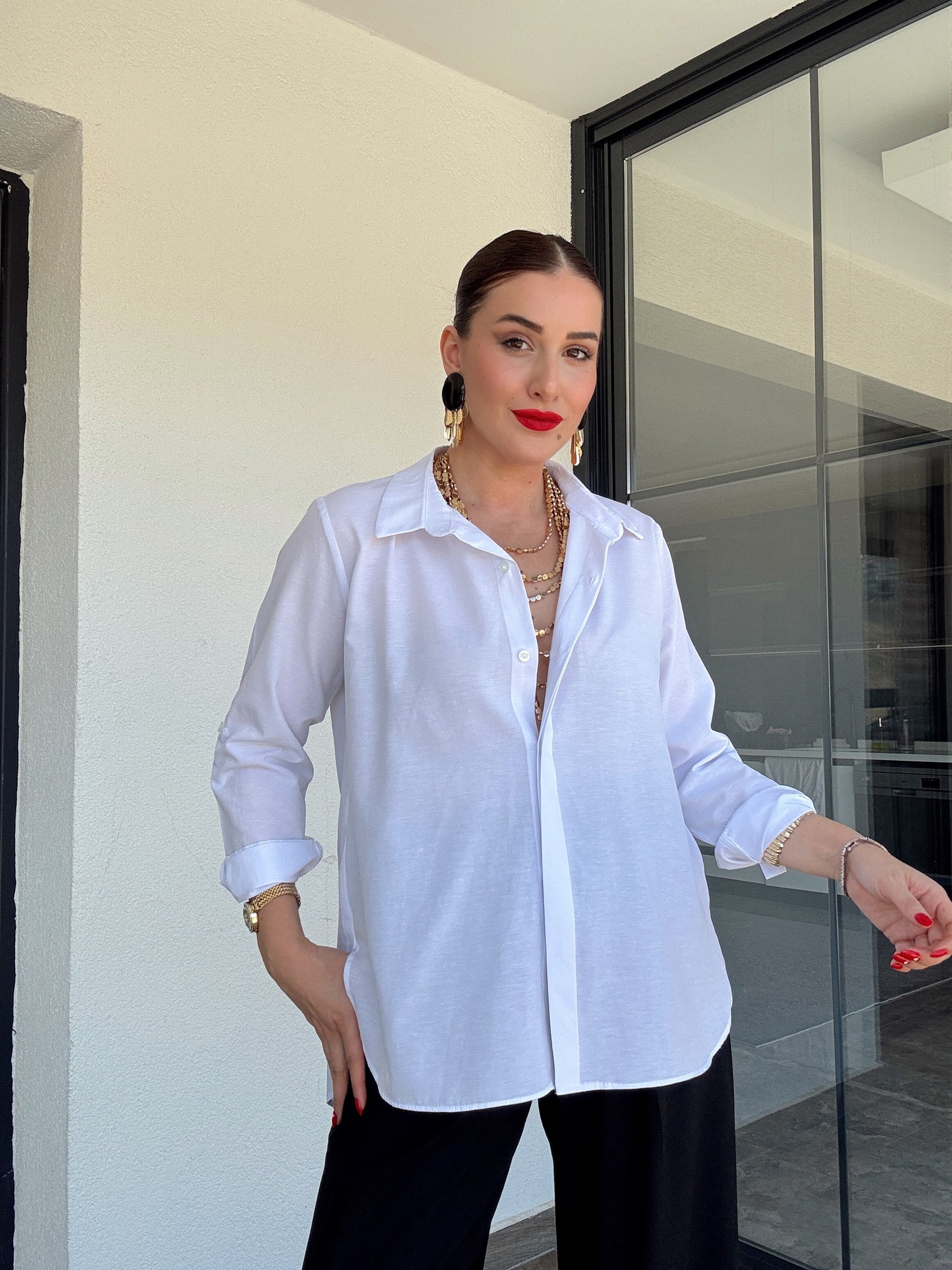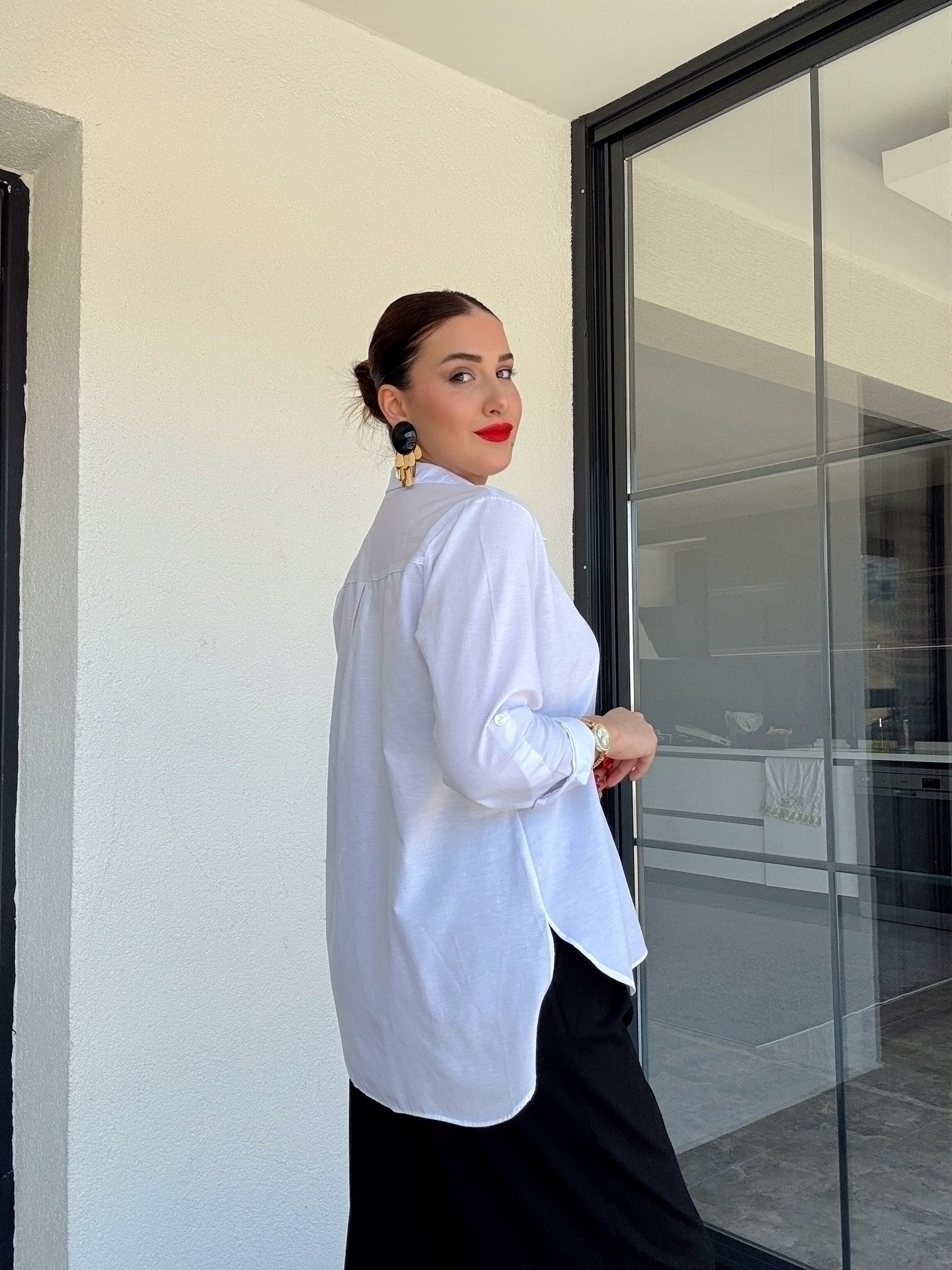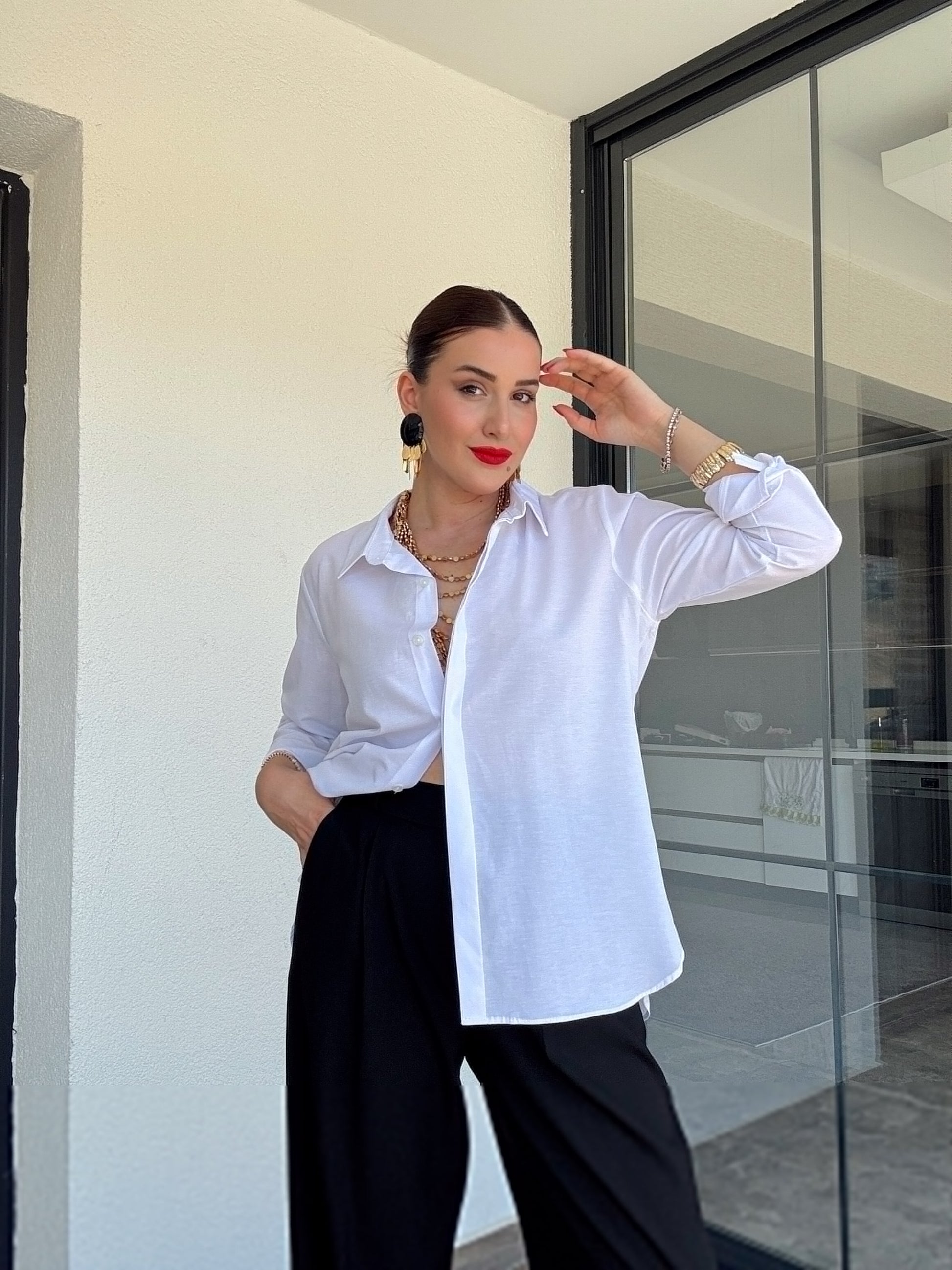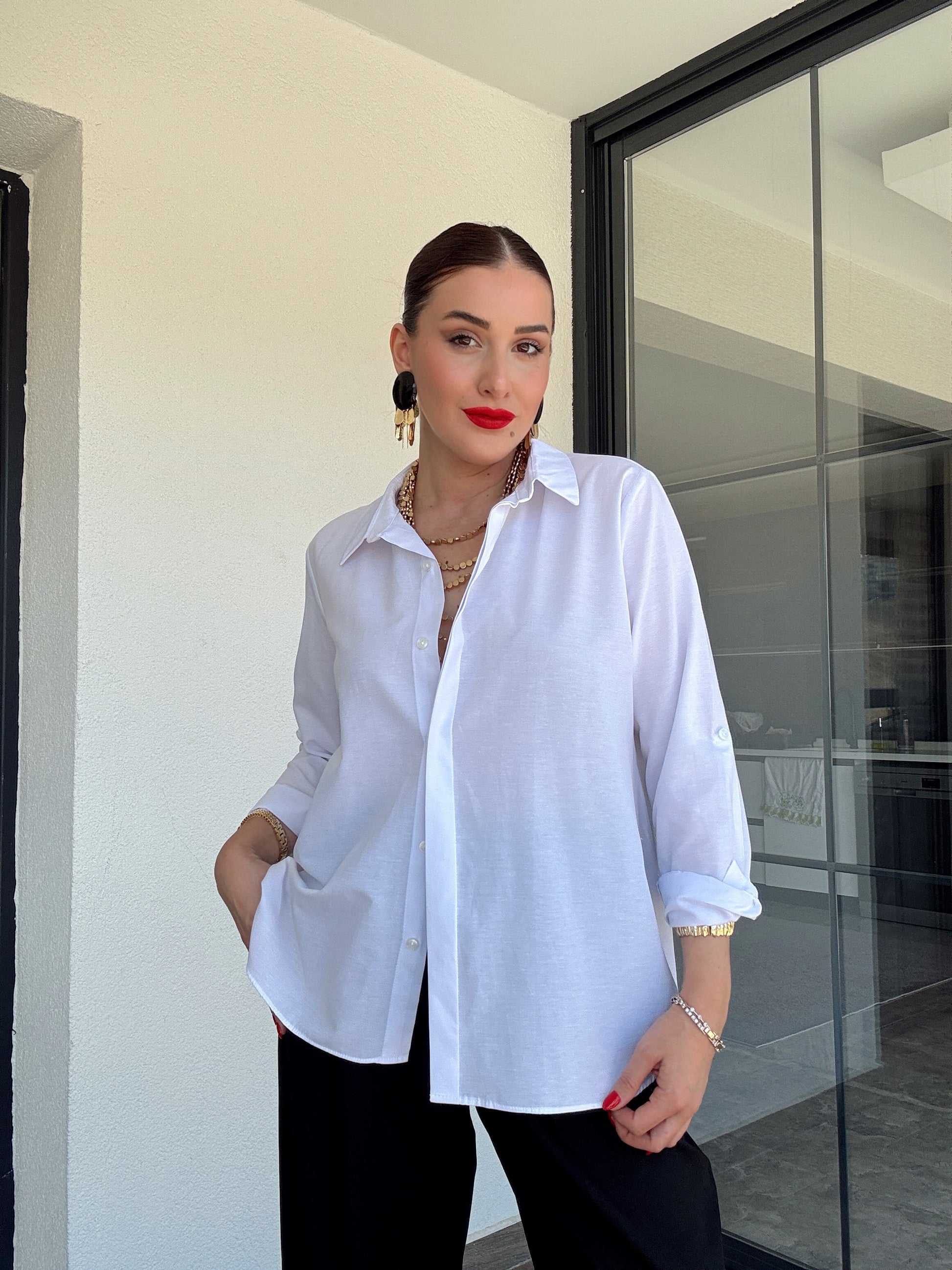 Kol detaylı poplin gömlek BEYAZ