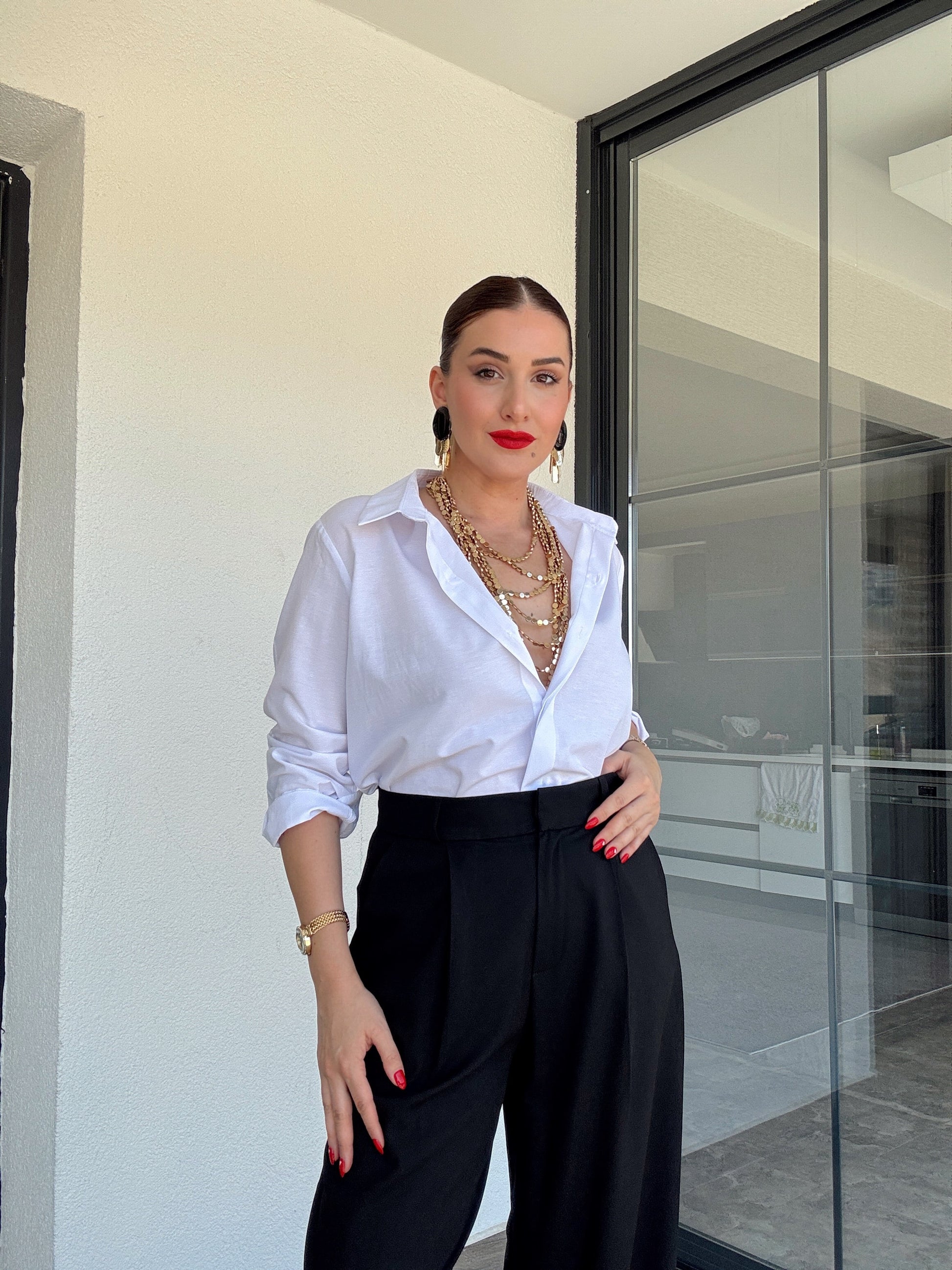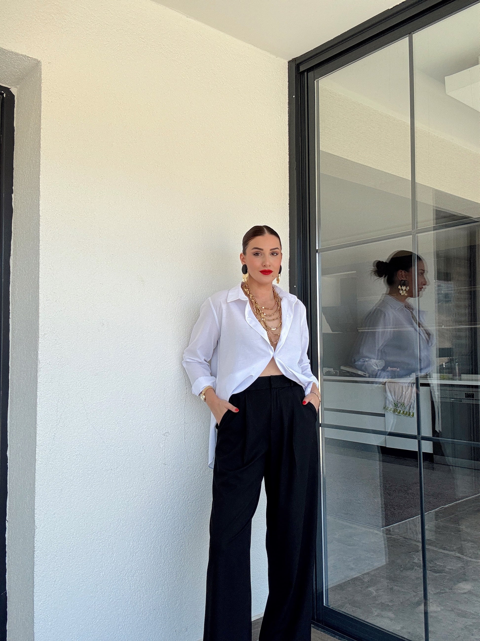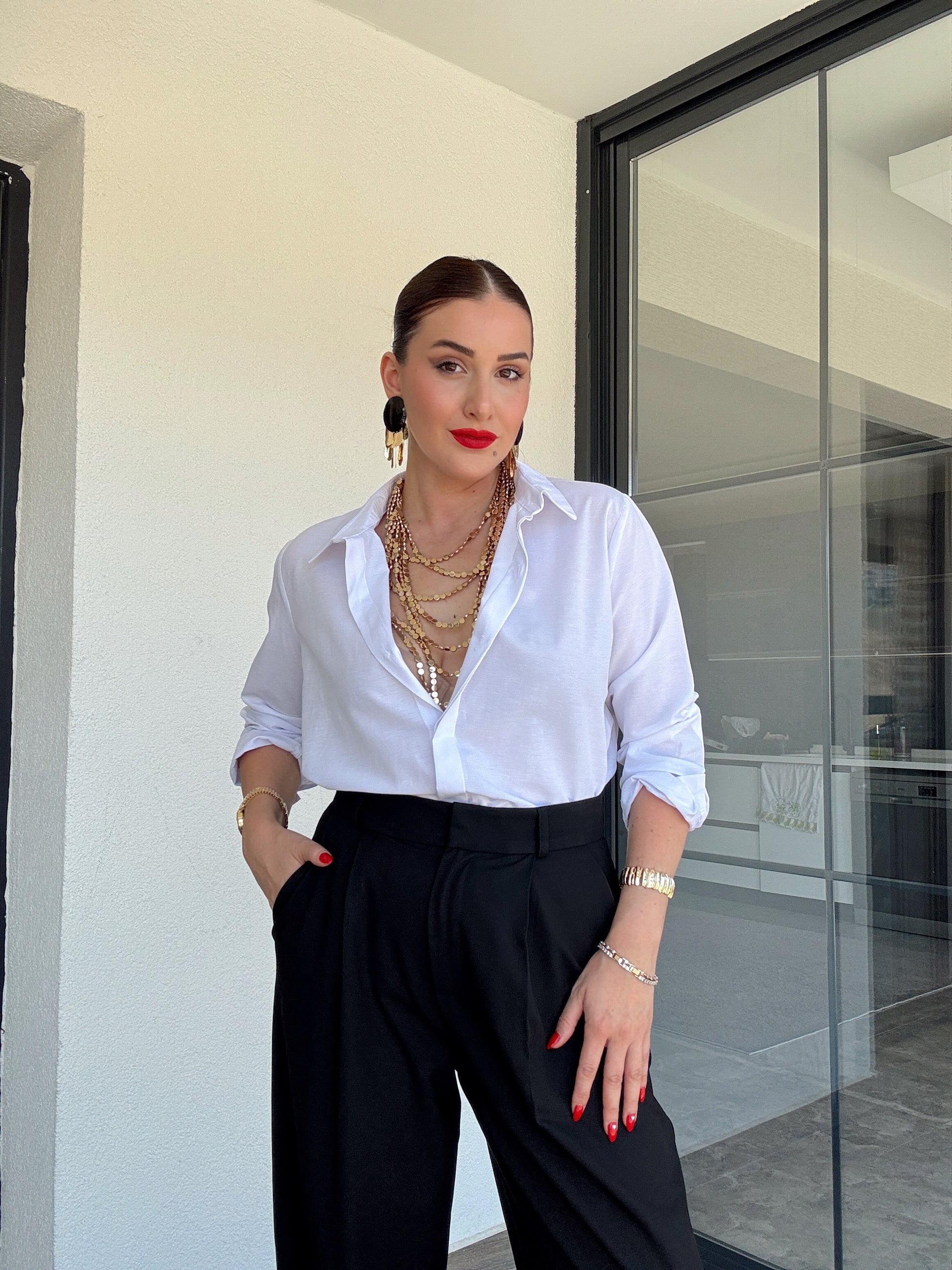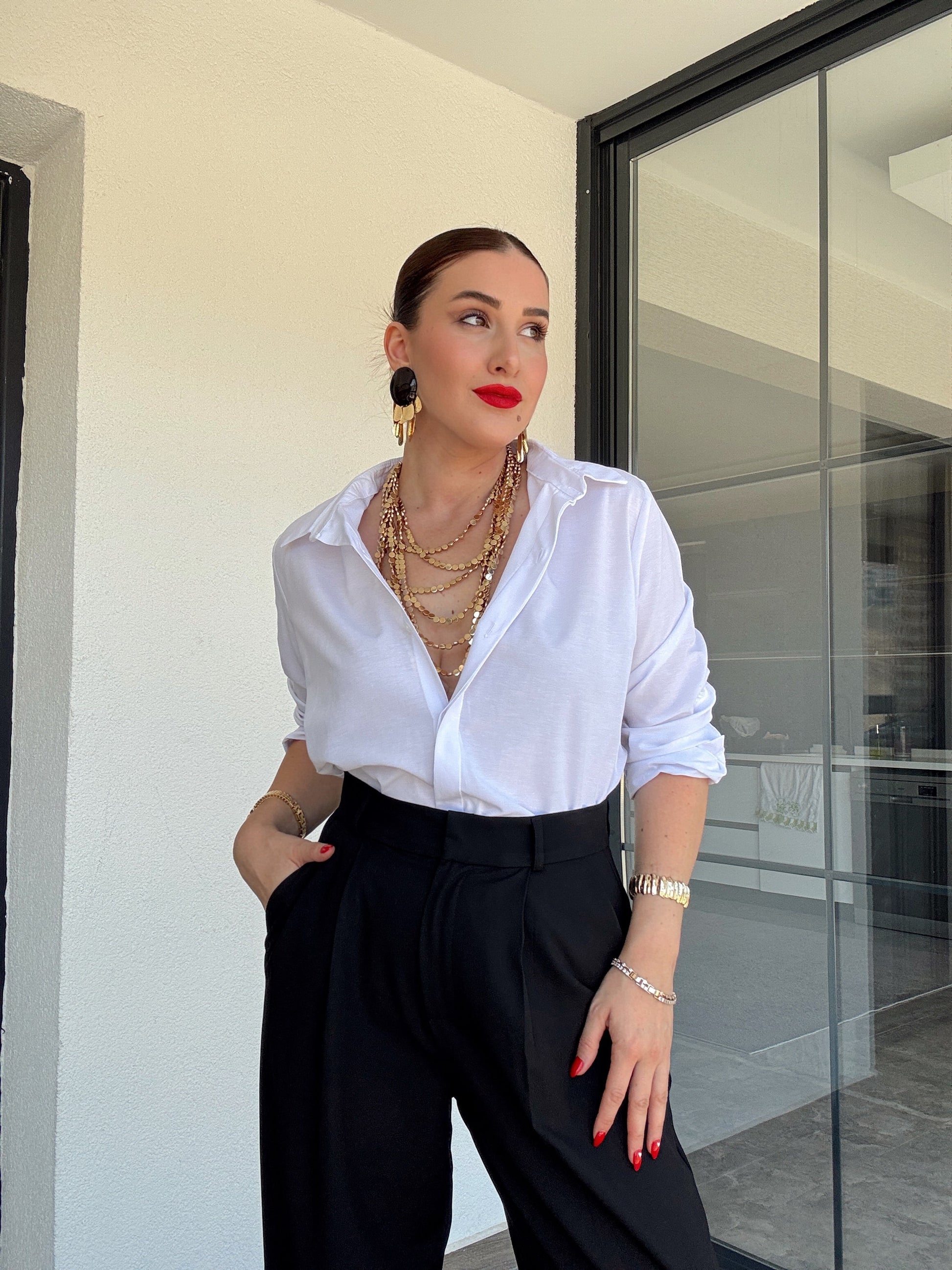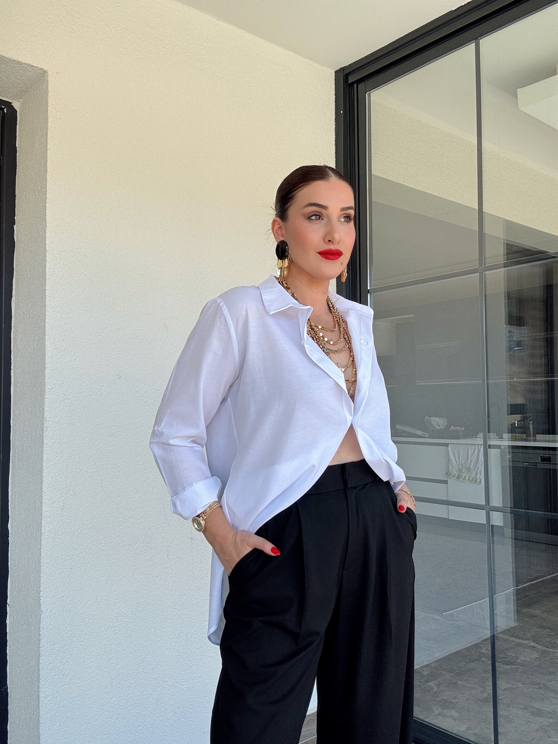 Kol detaylı poplin gömlek BEYAZ