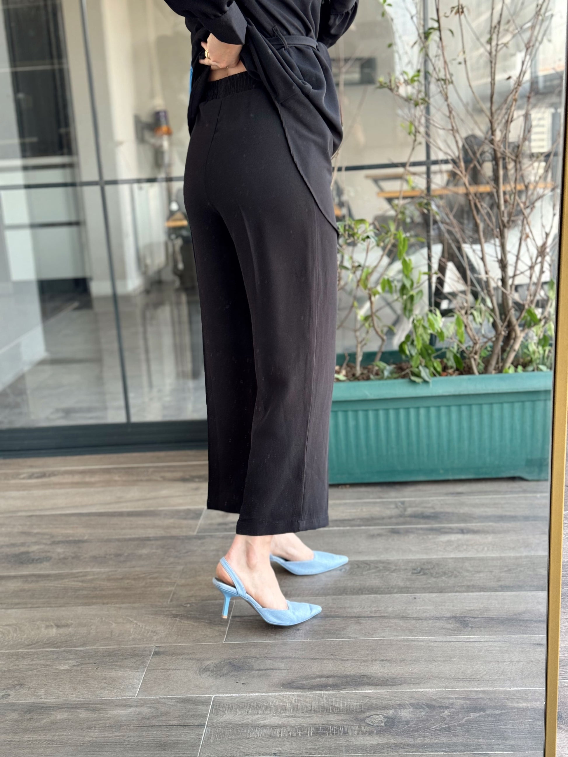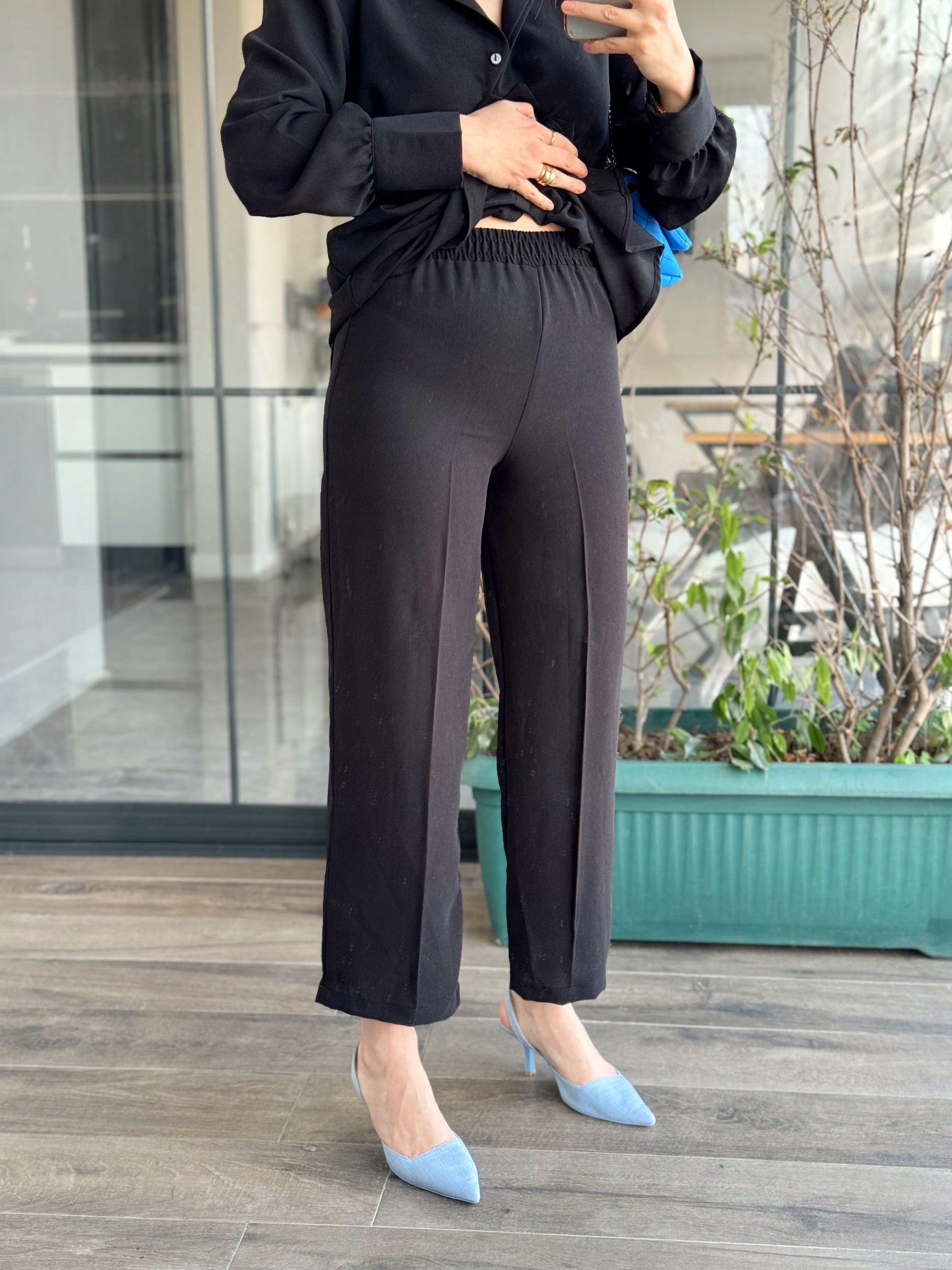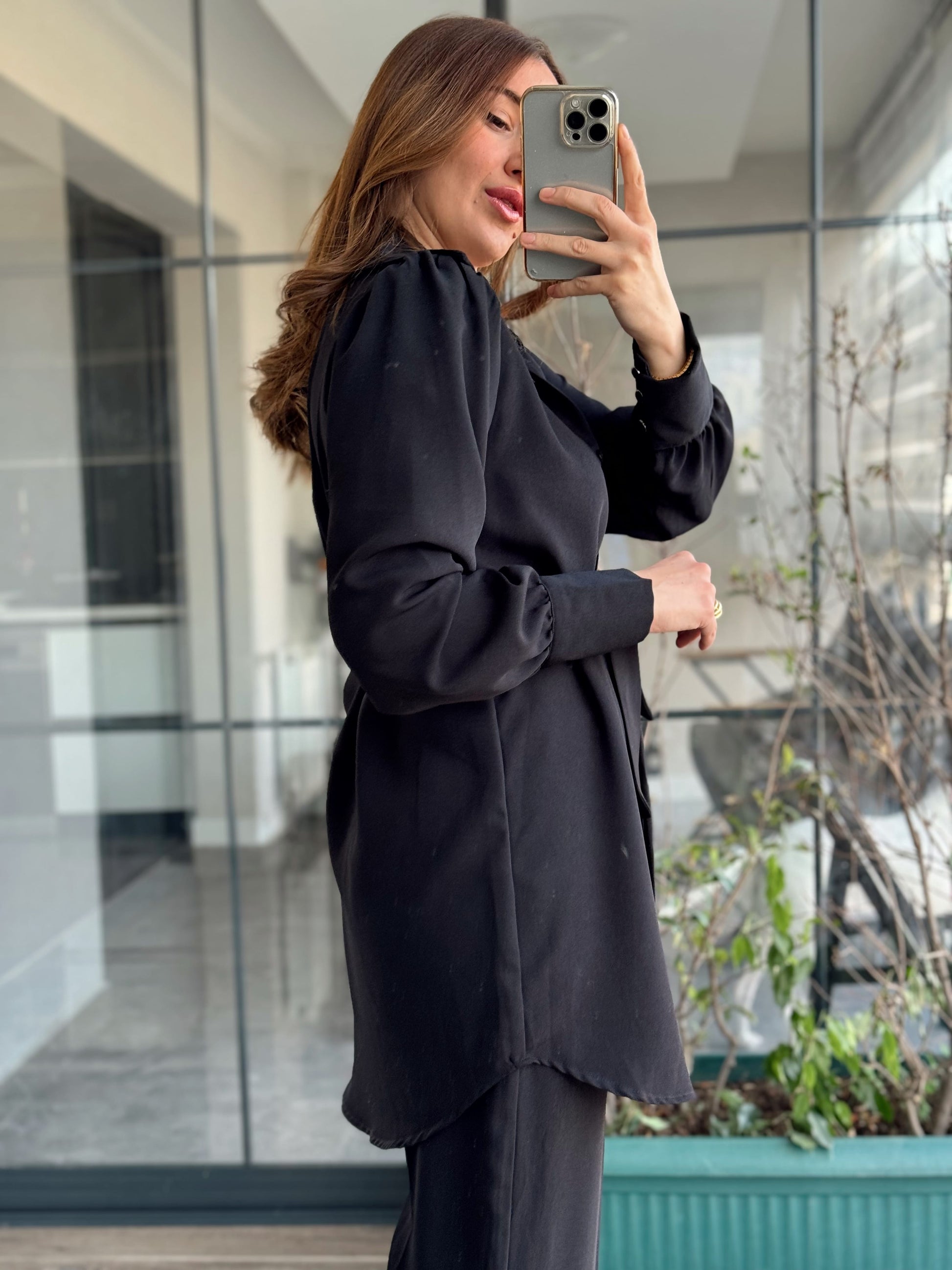 Kol Düğme Detay Kuşaklı 2 Parça Takım - SİYAH