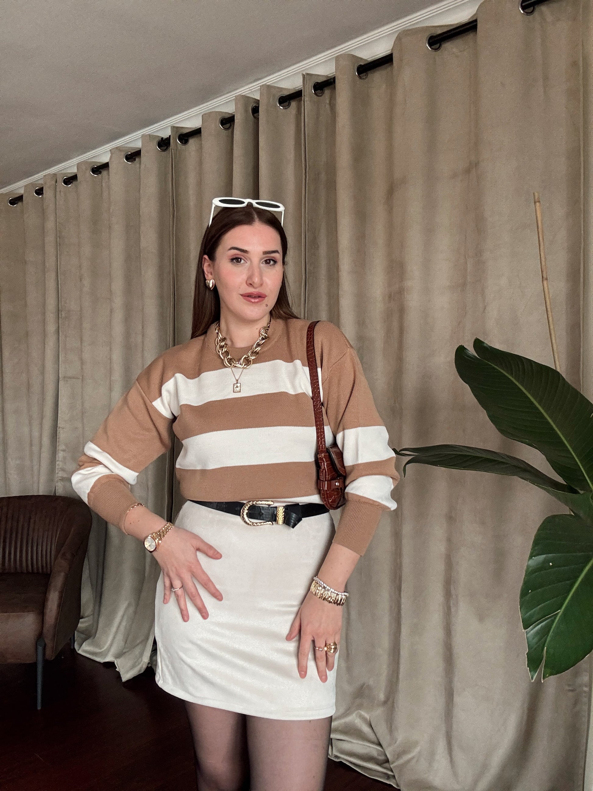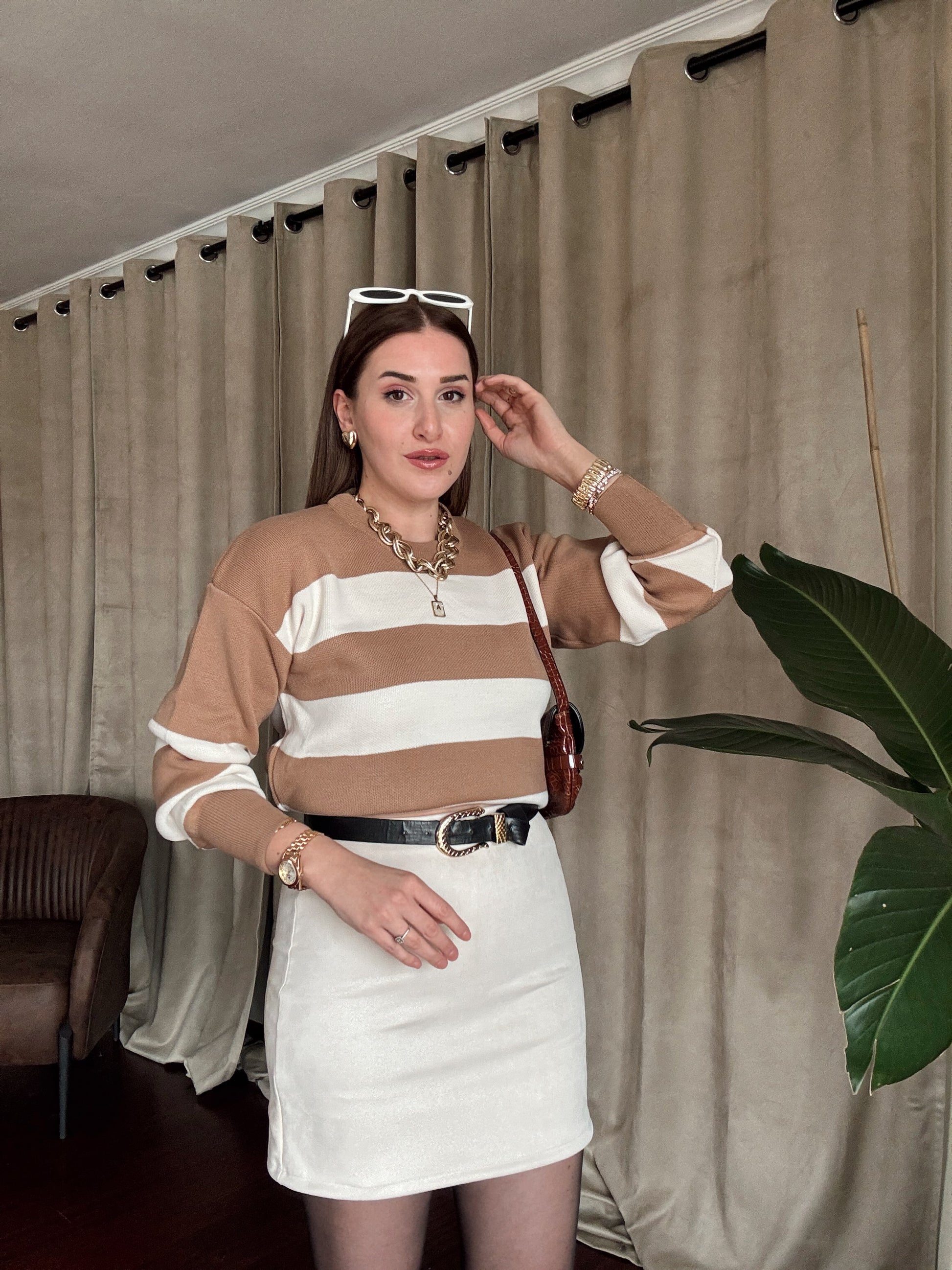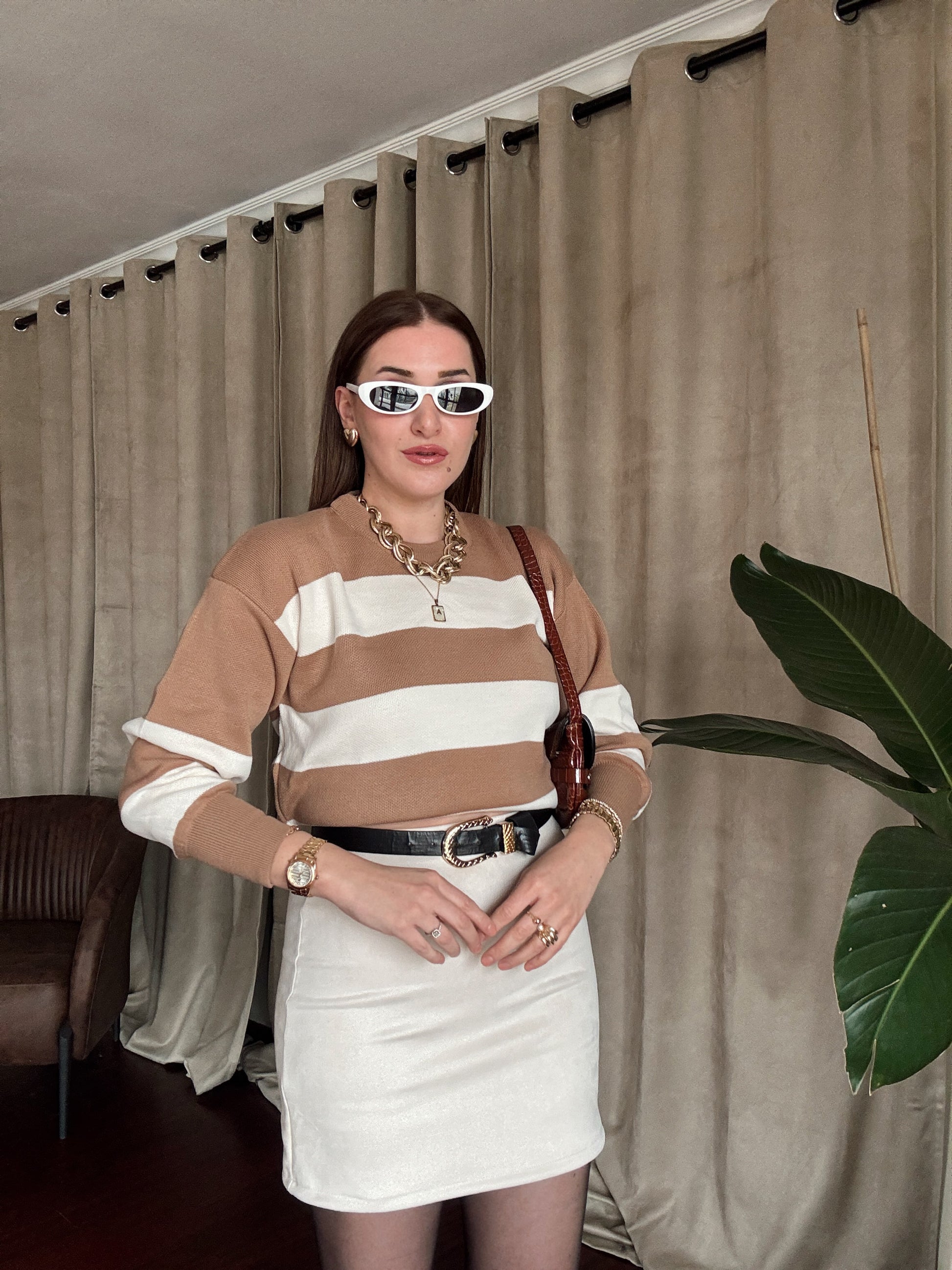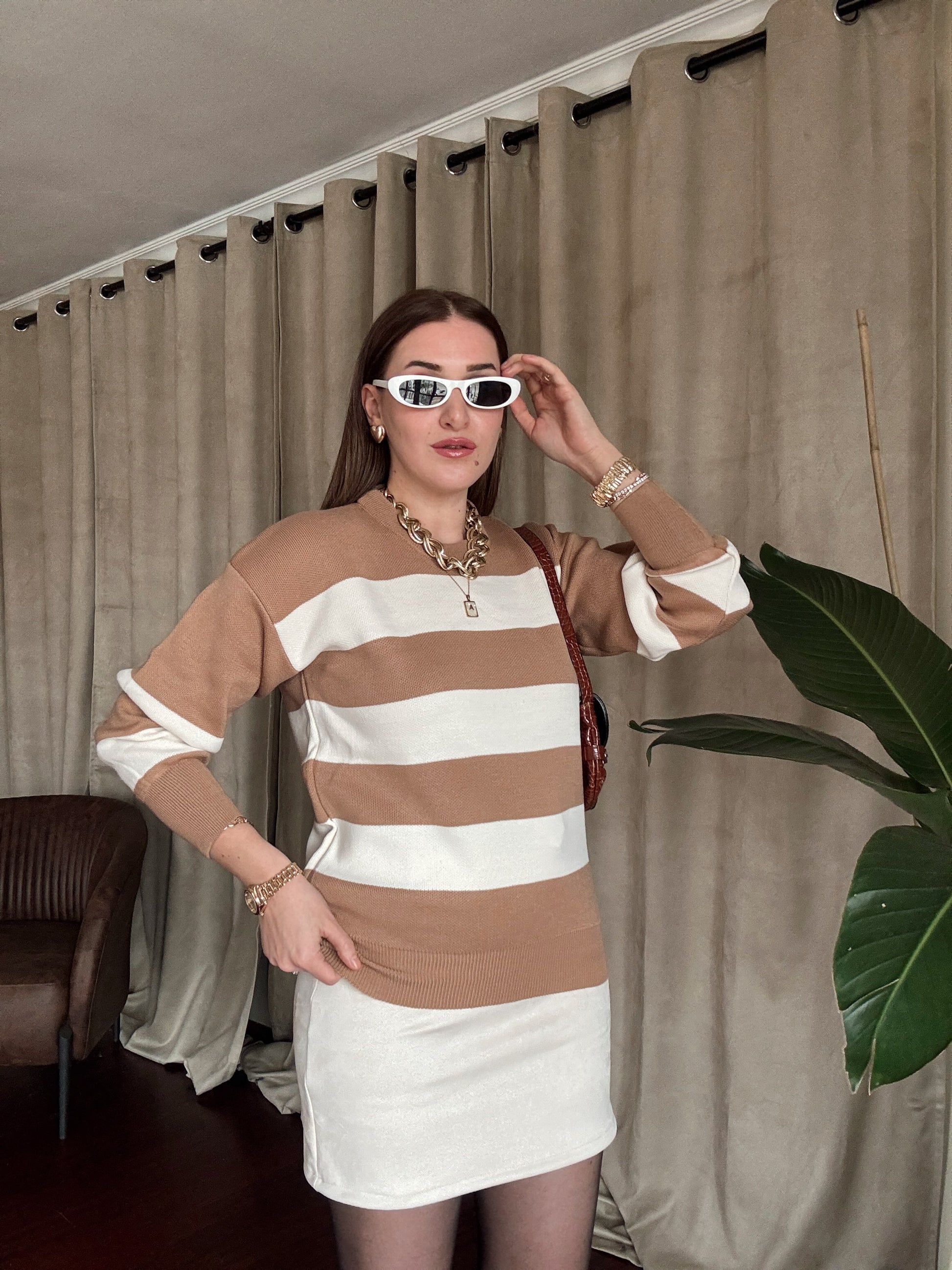 Kolları Ribanalı Bisiklet Yaka Kazak - CAMEL