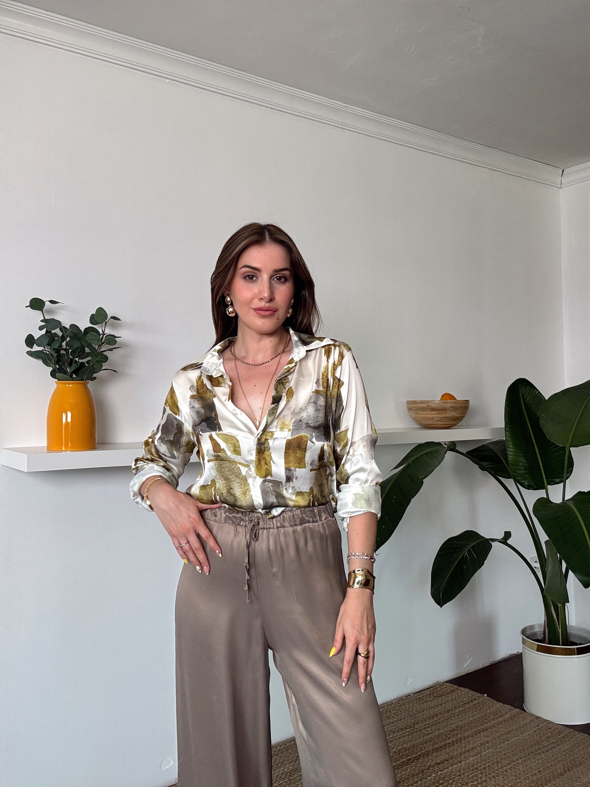 Kolu apoletli saten gömlek YAĞ YEŞİLİ