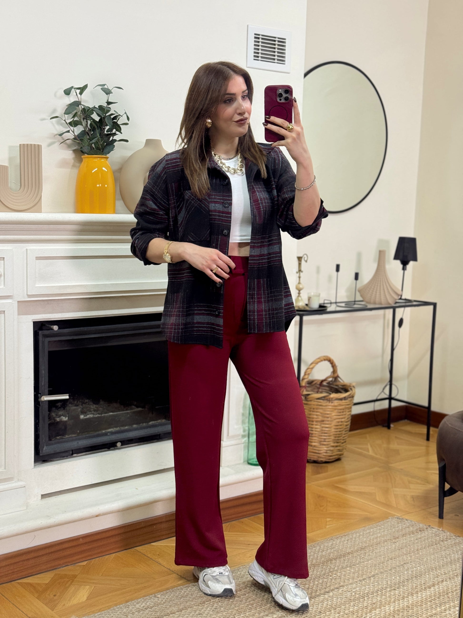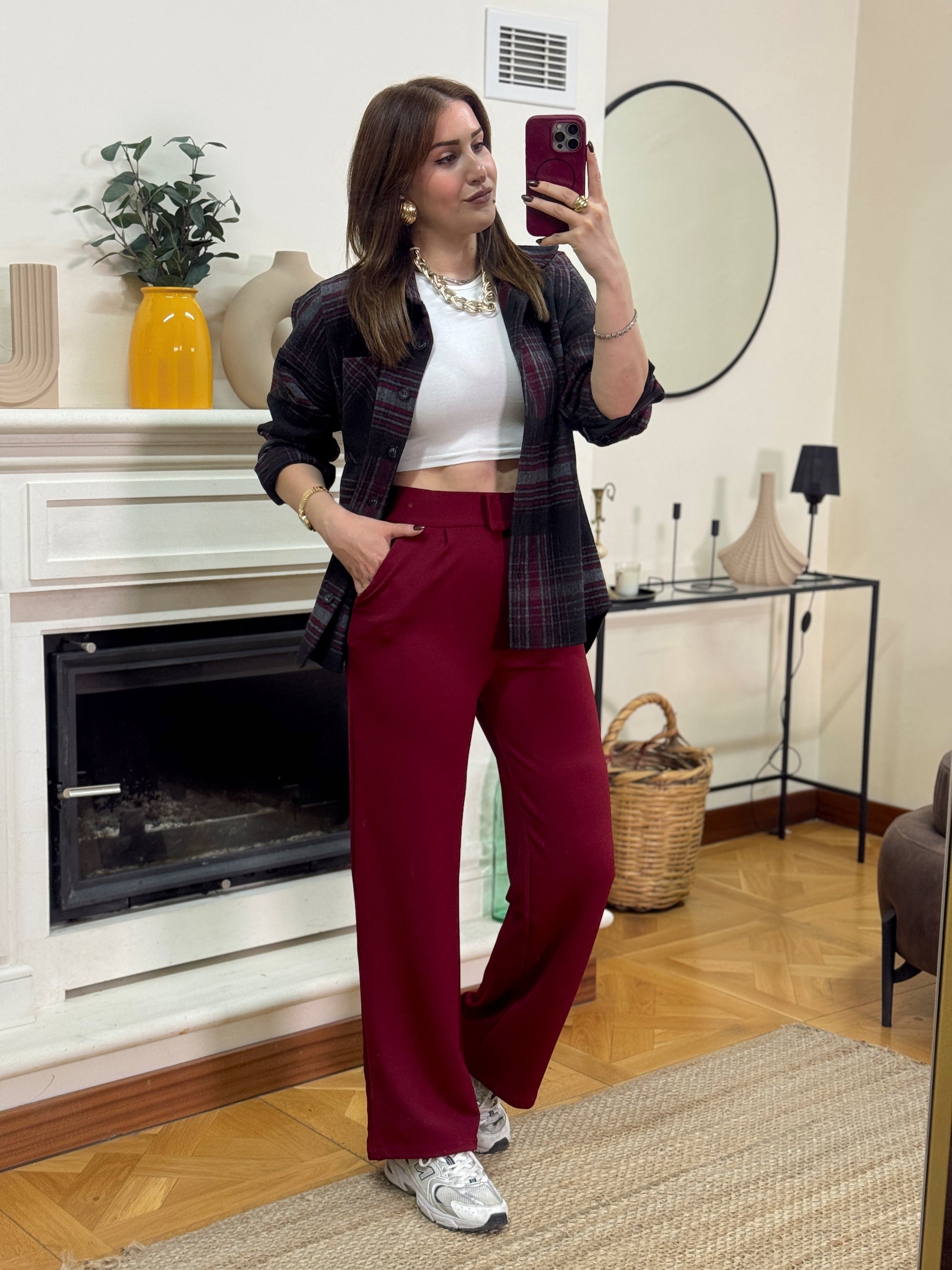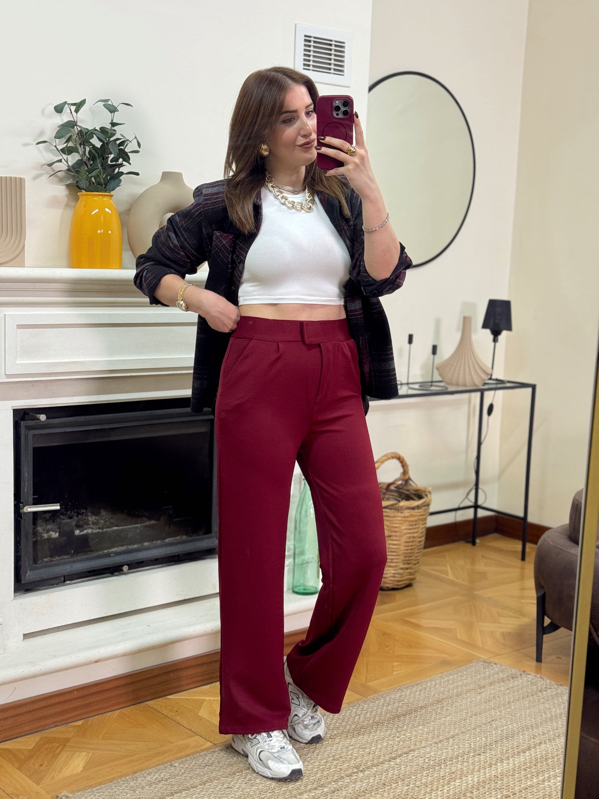 Krep kumaş cırtlı pantolon-BORDO