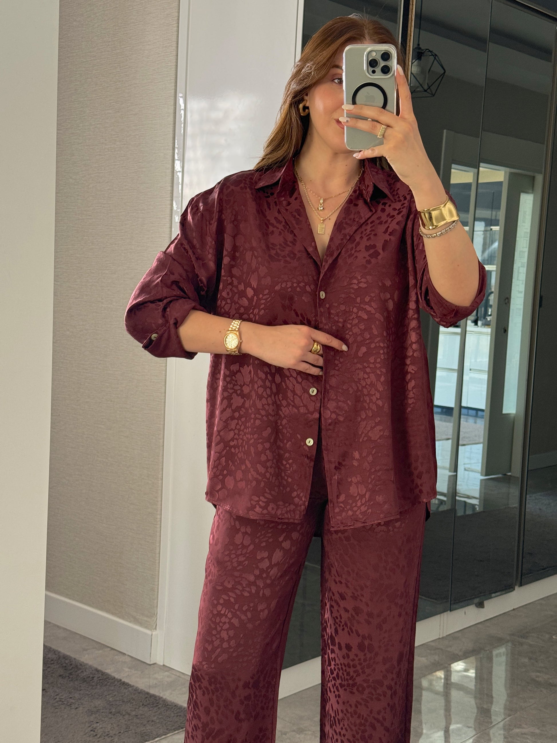 Leopar desenli İkili Takım Bordo