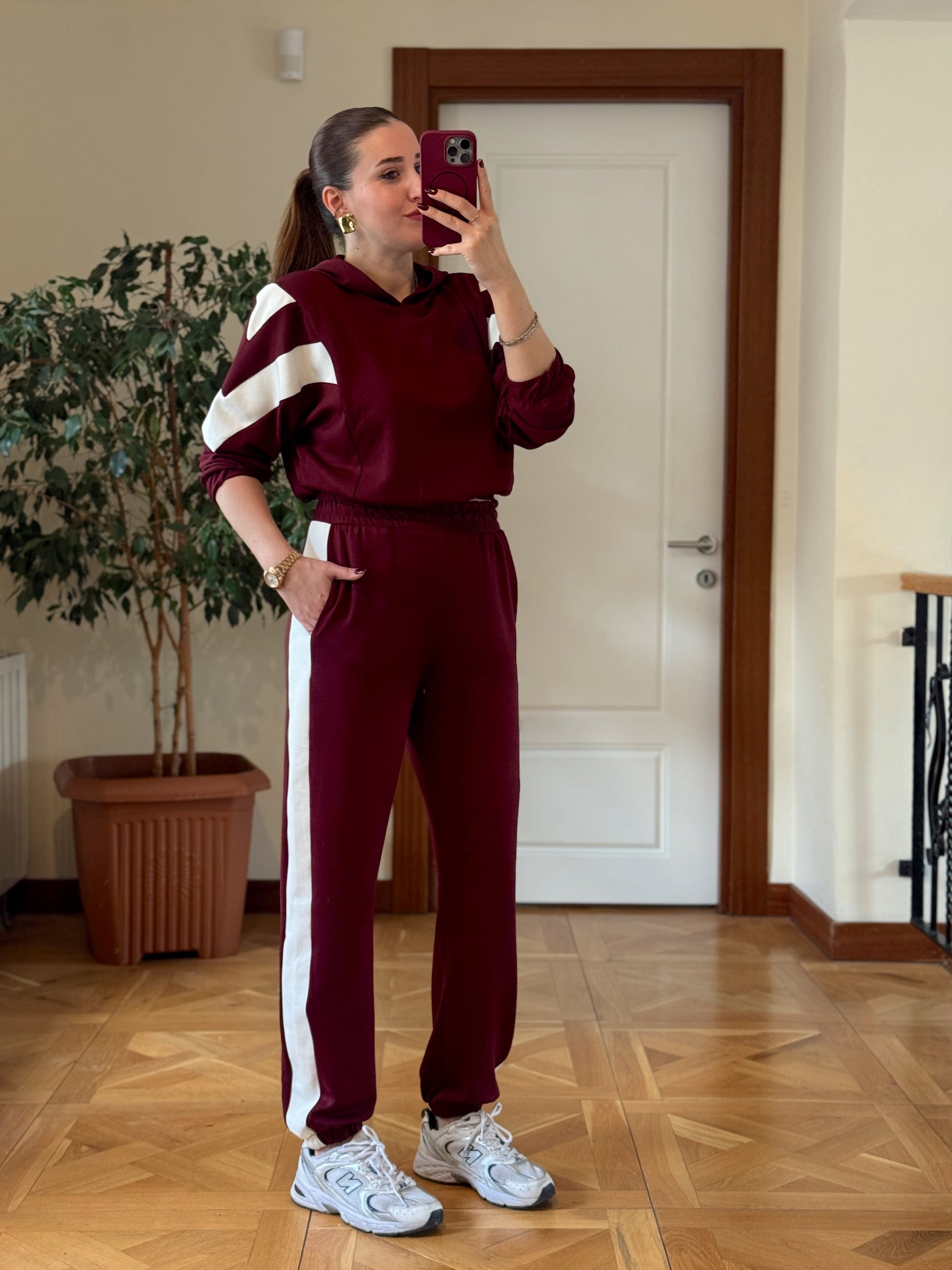 Modal Kapüşonlu Paça Lastikli Takım Bordo