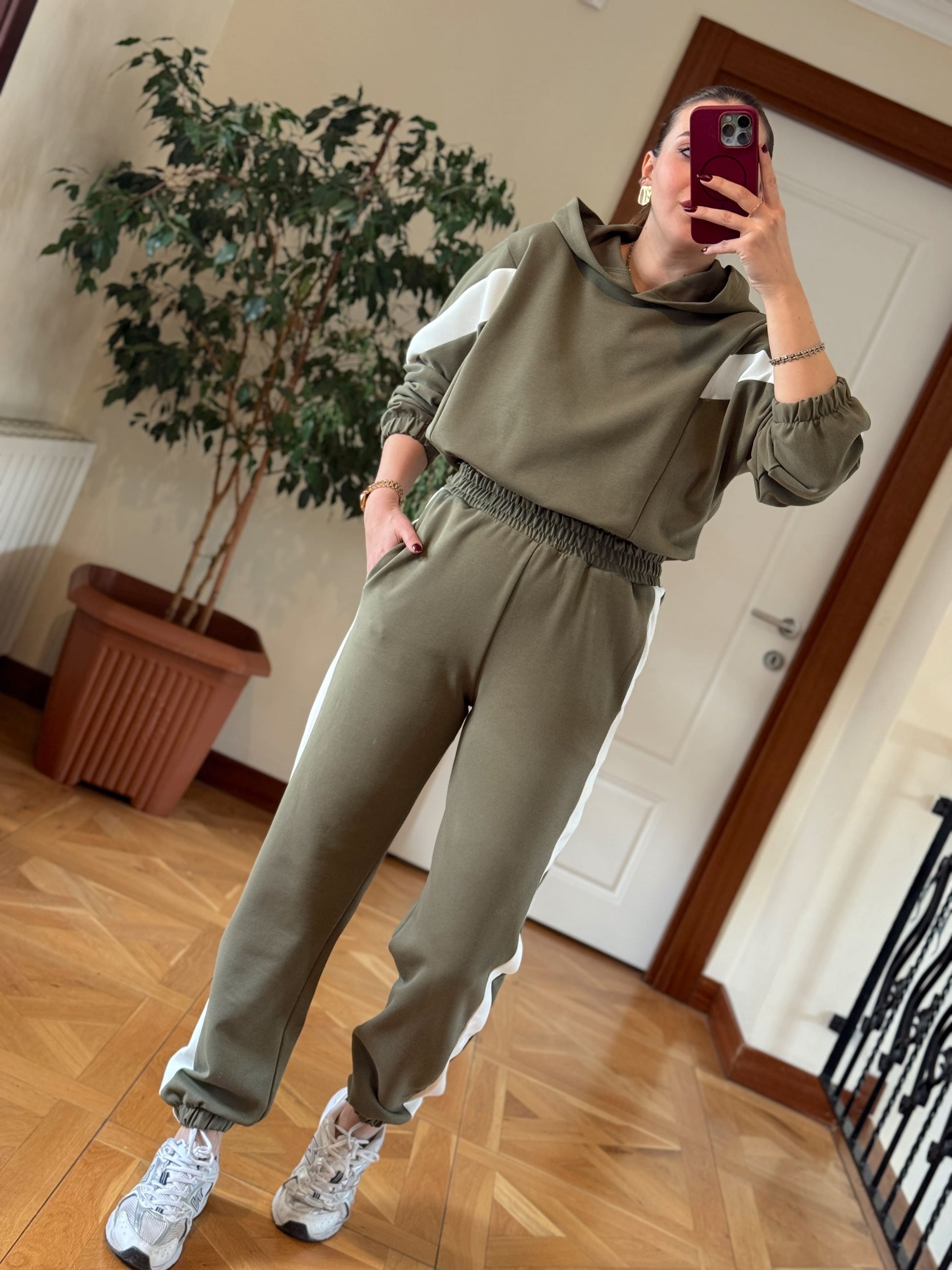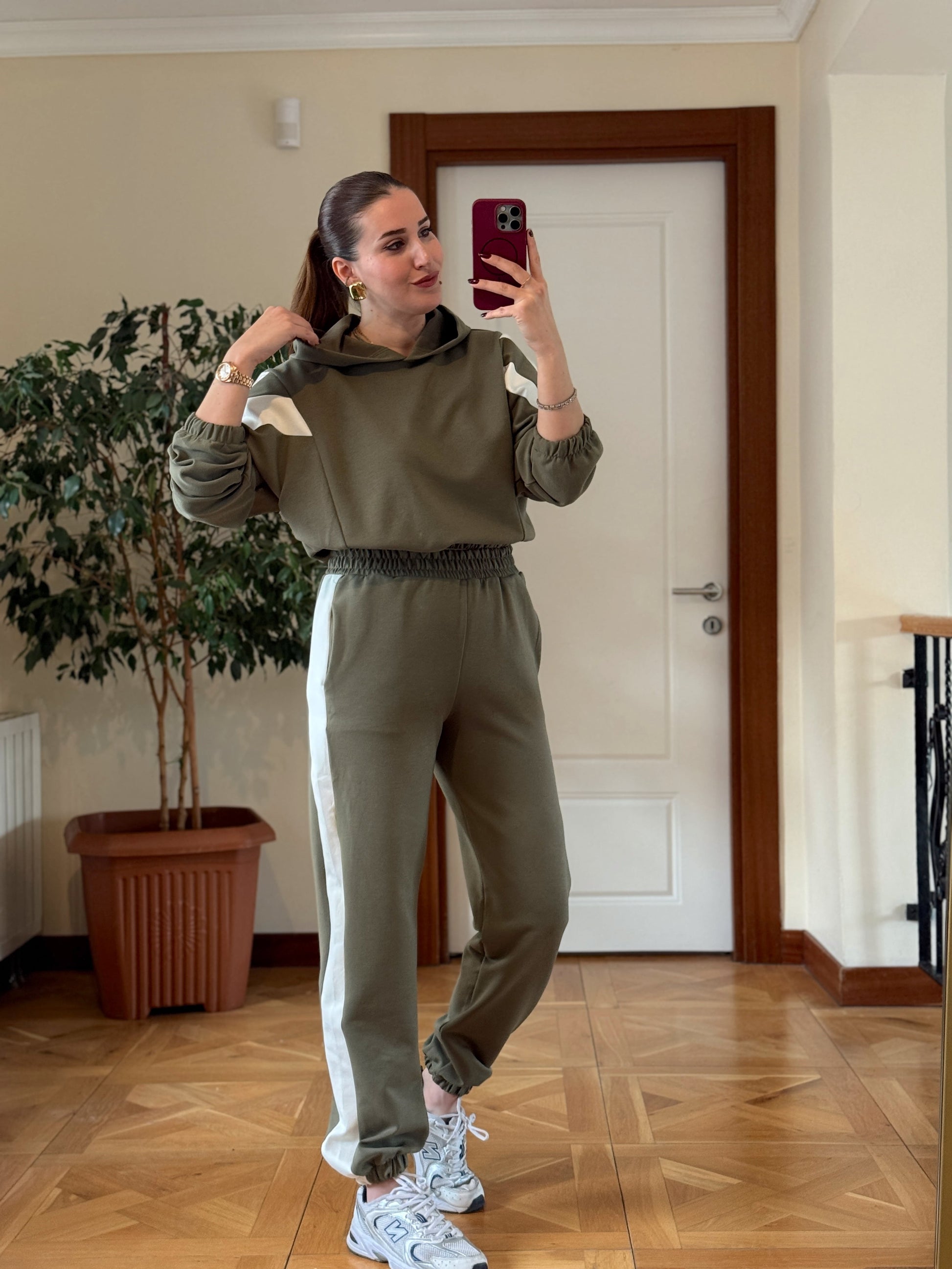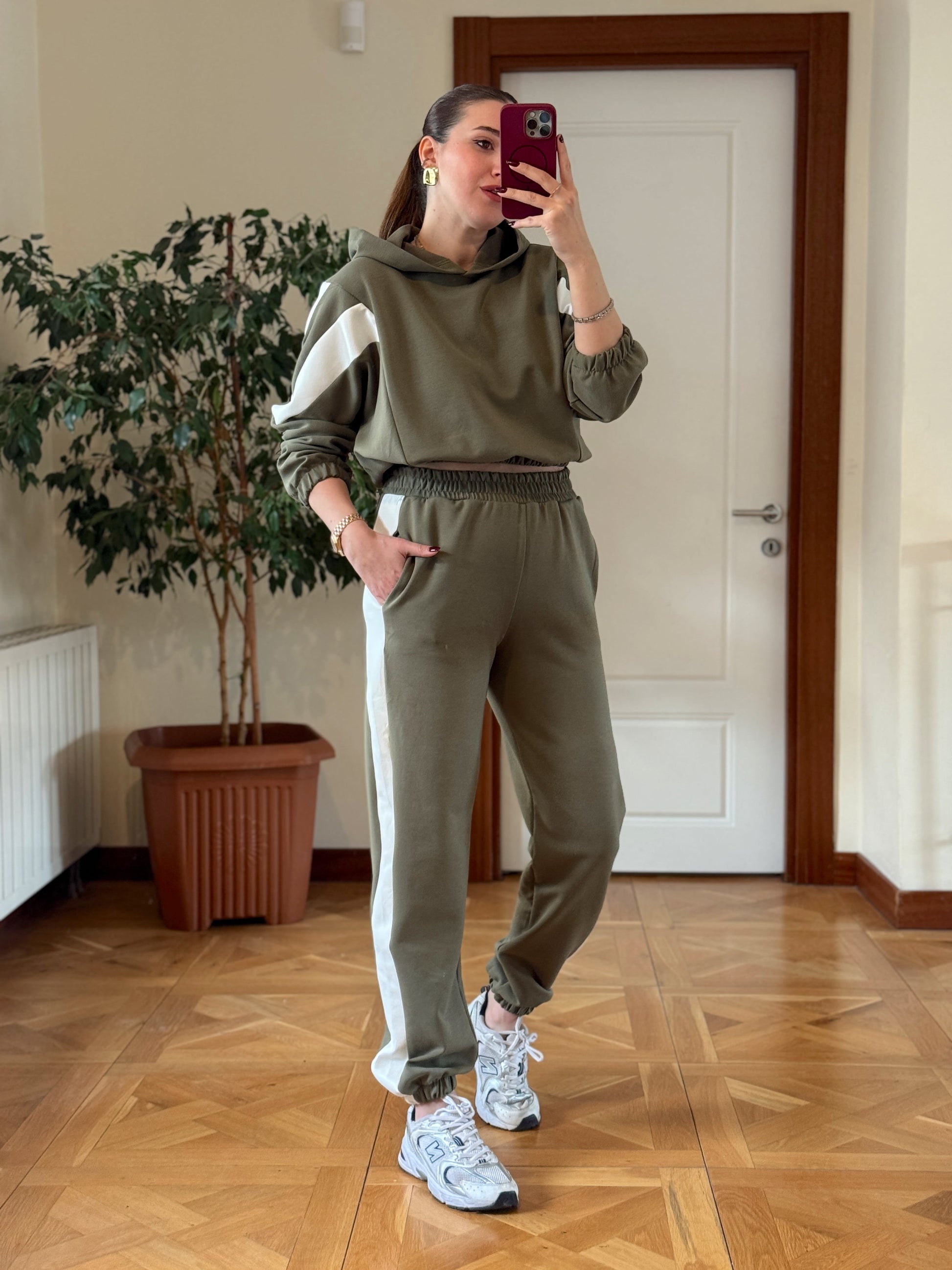 Modal Kapüşonlu Paça Lastikli Takım Yeşil