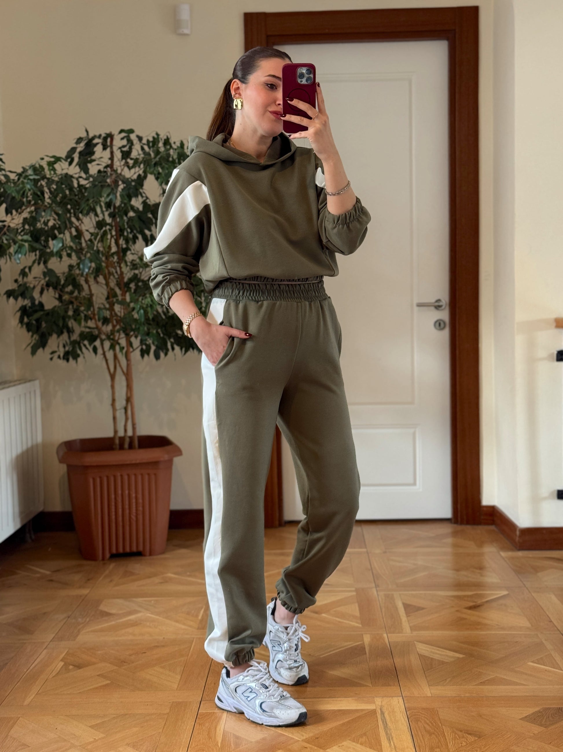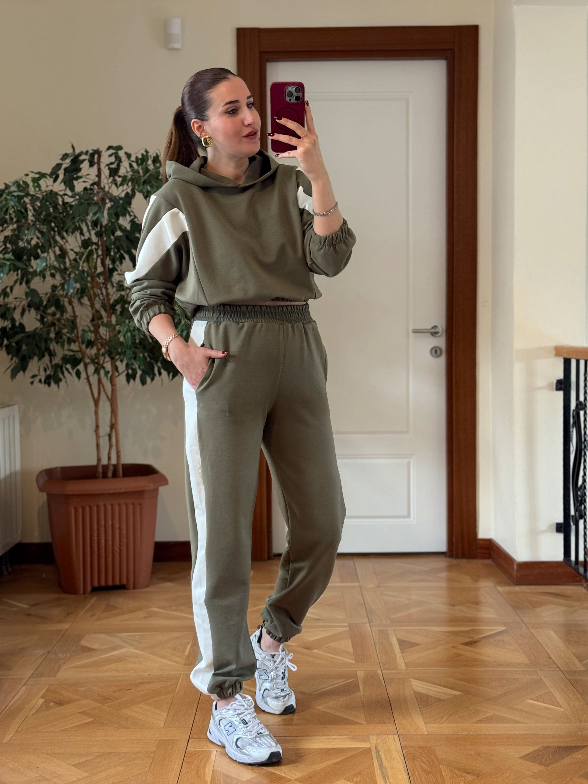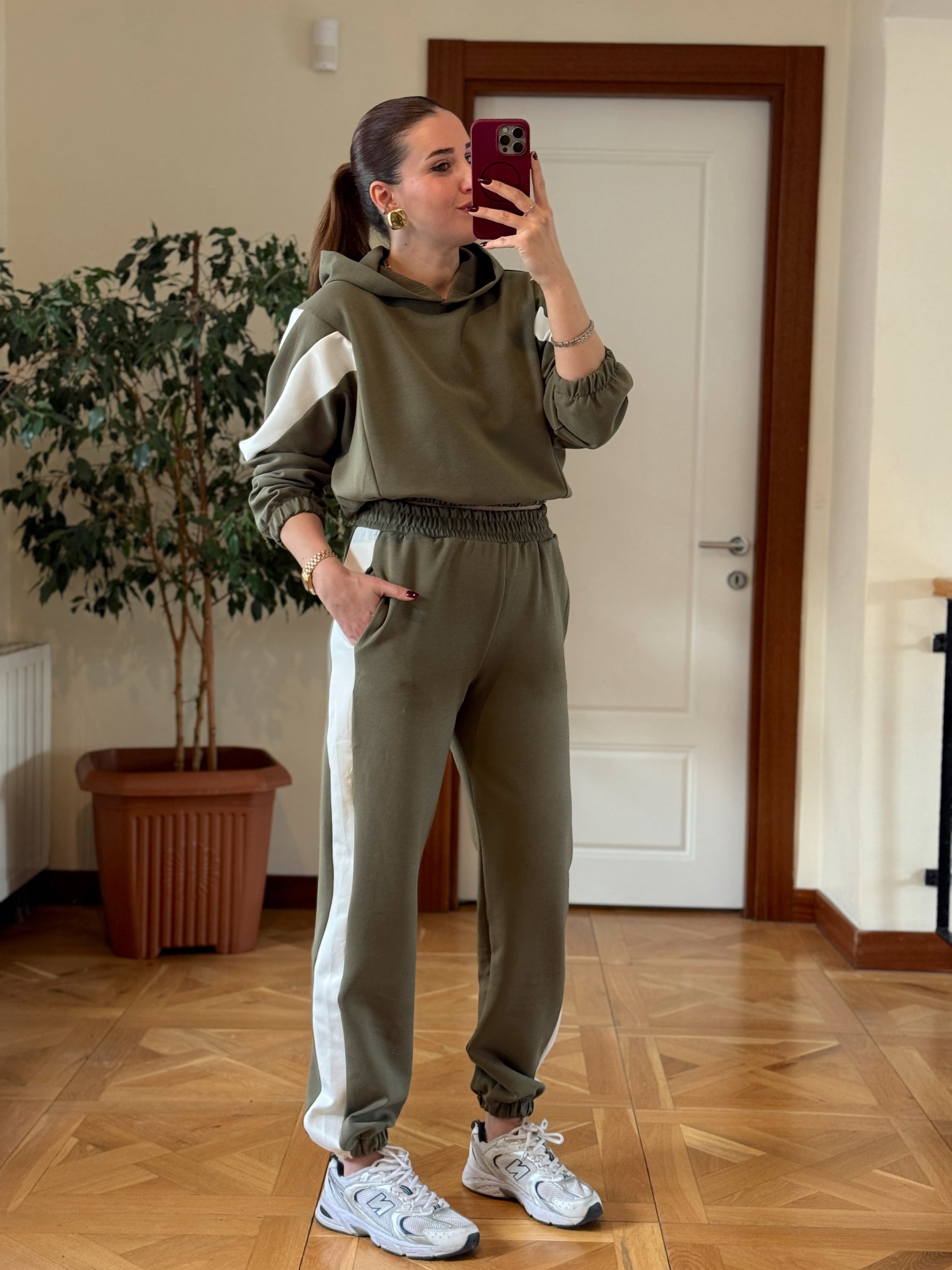 Modal Kapüşonlu Paça Lastikli Takım Yeşil