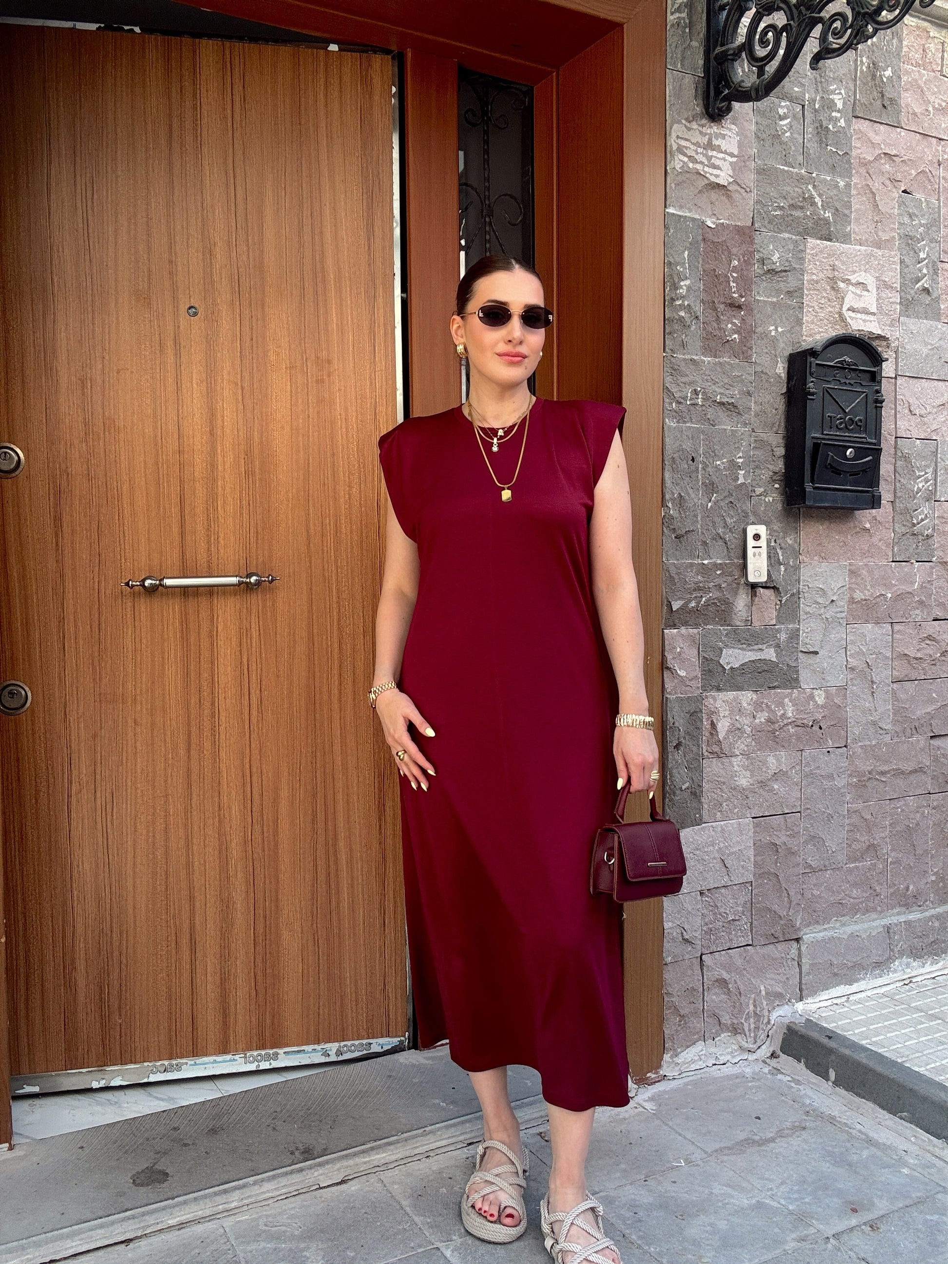 Modal kumaş vatkalı bisiklet yaka elbise BORDO