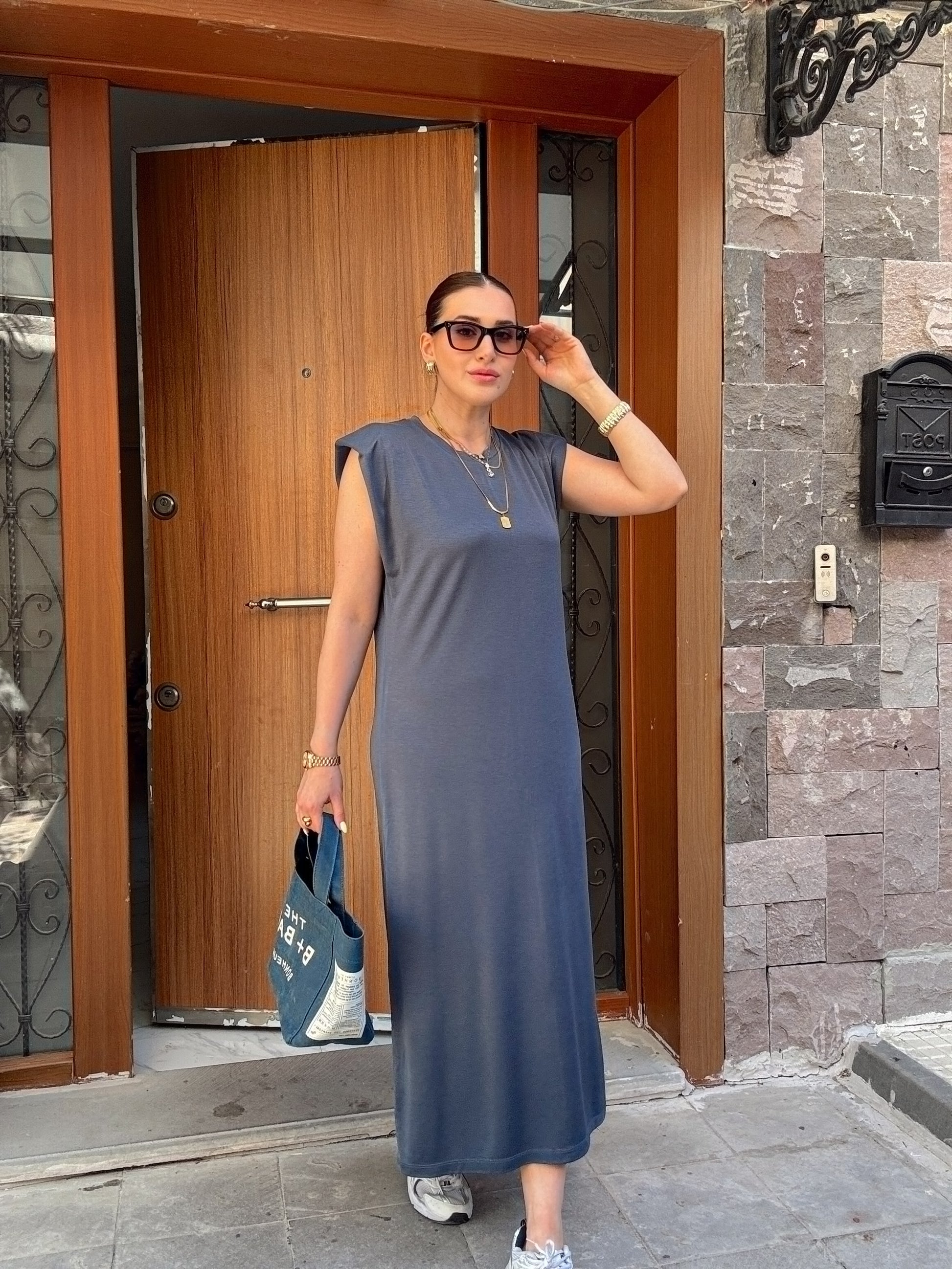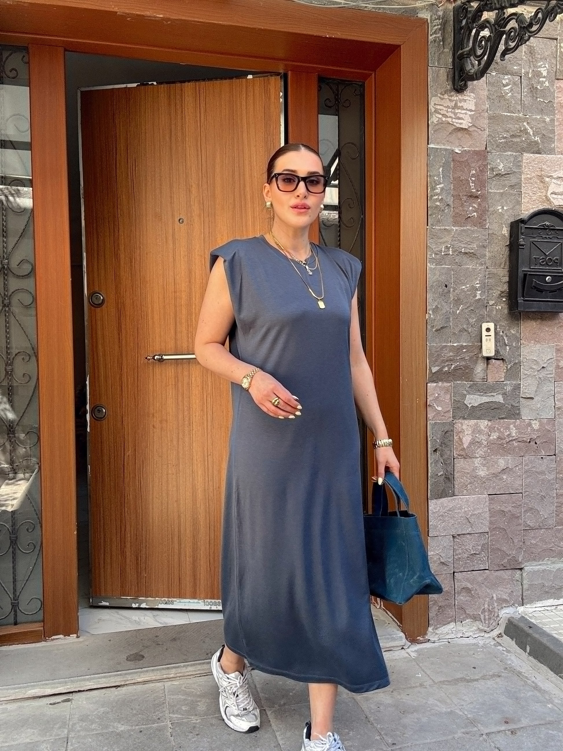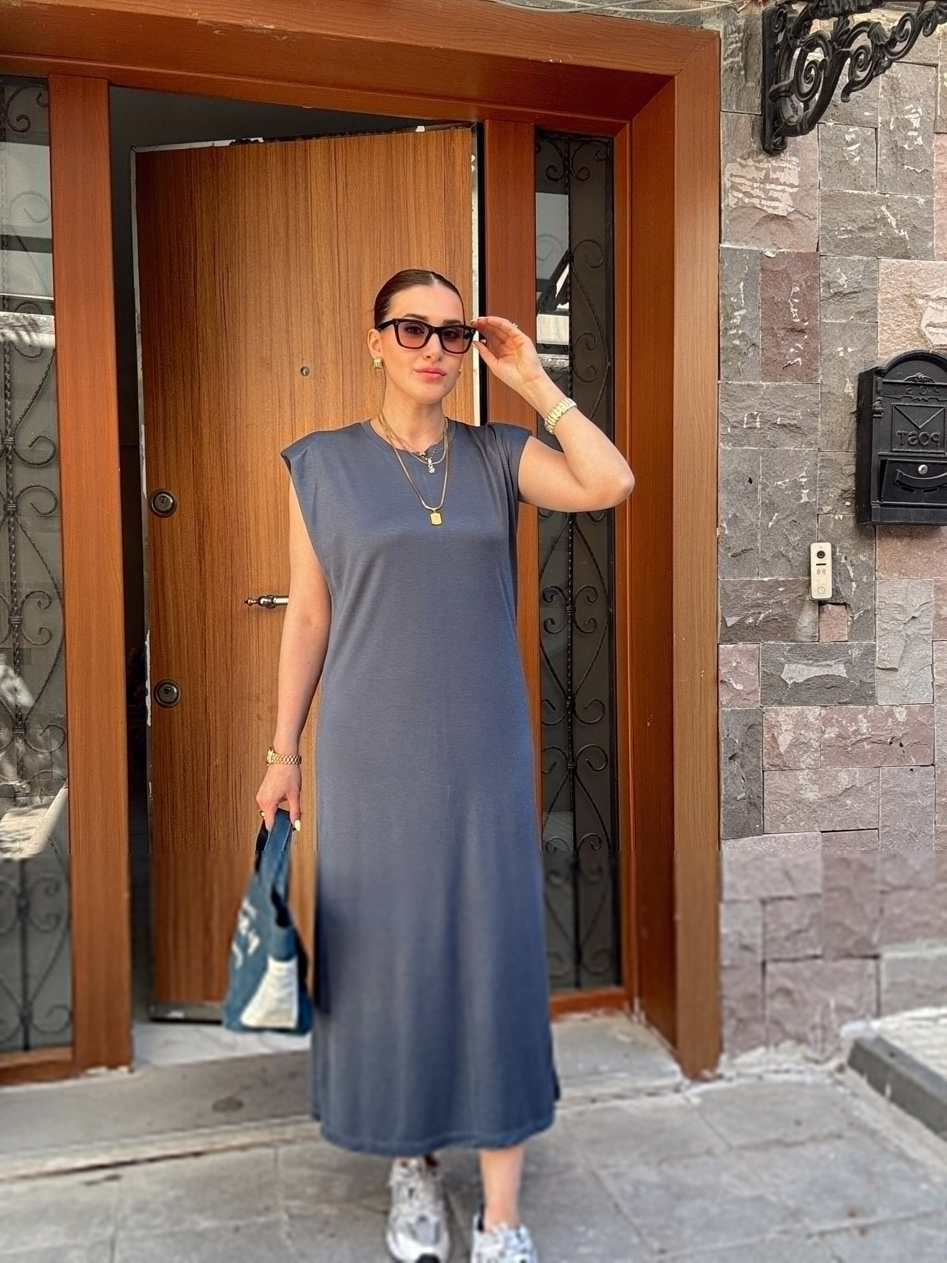 Modal kumaş vatkalı bisiklet yaka elbise FÜME